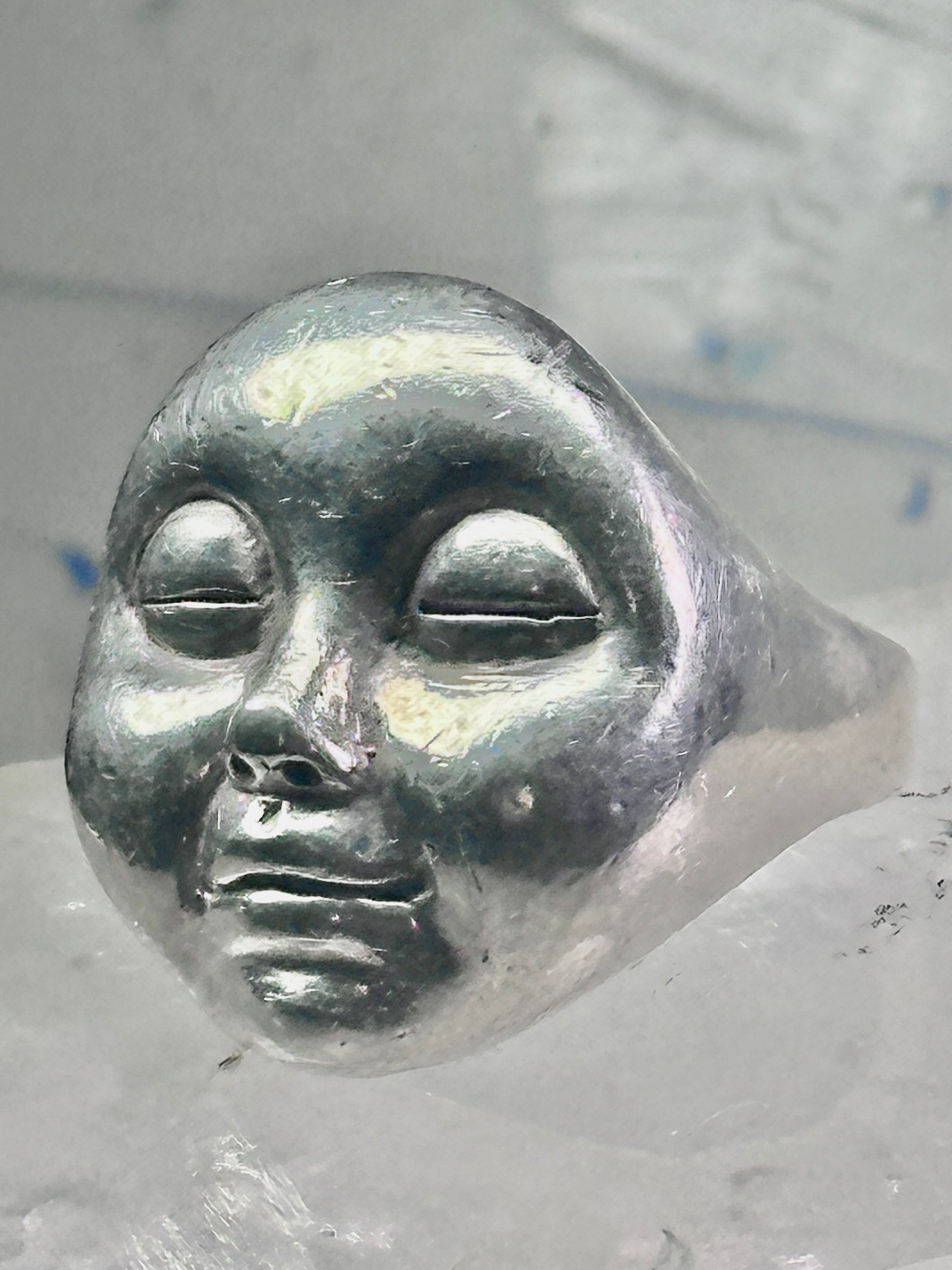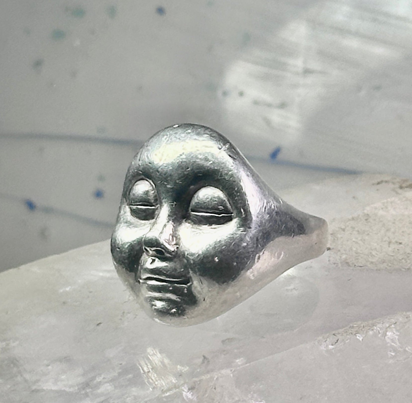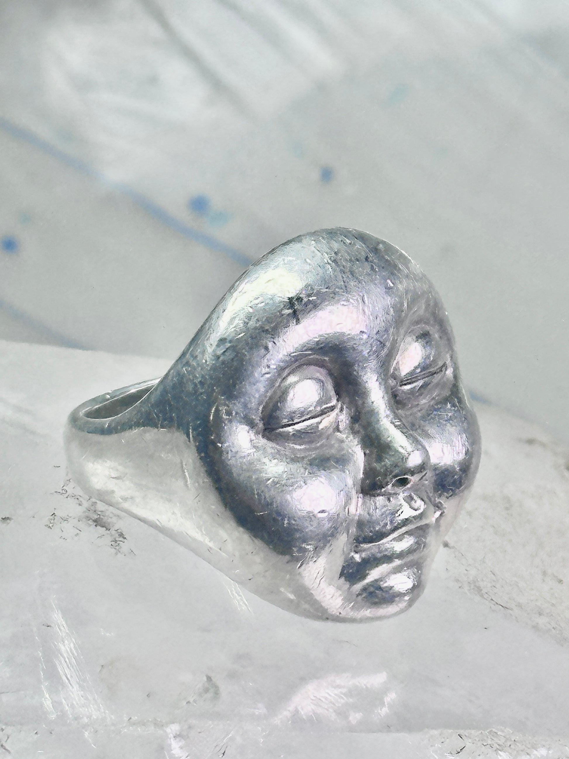 Face Ring moon face handmade artisan band size 8 figurative sterling silver women men