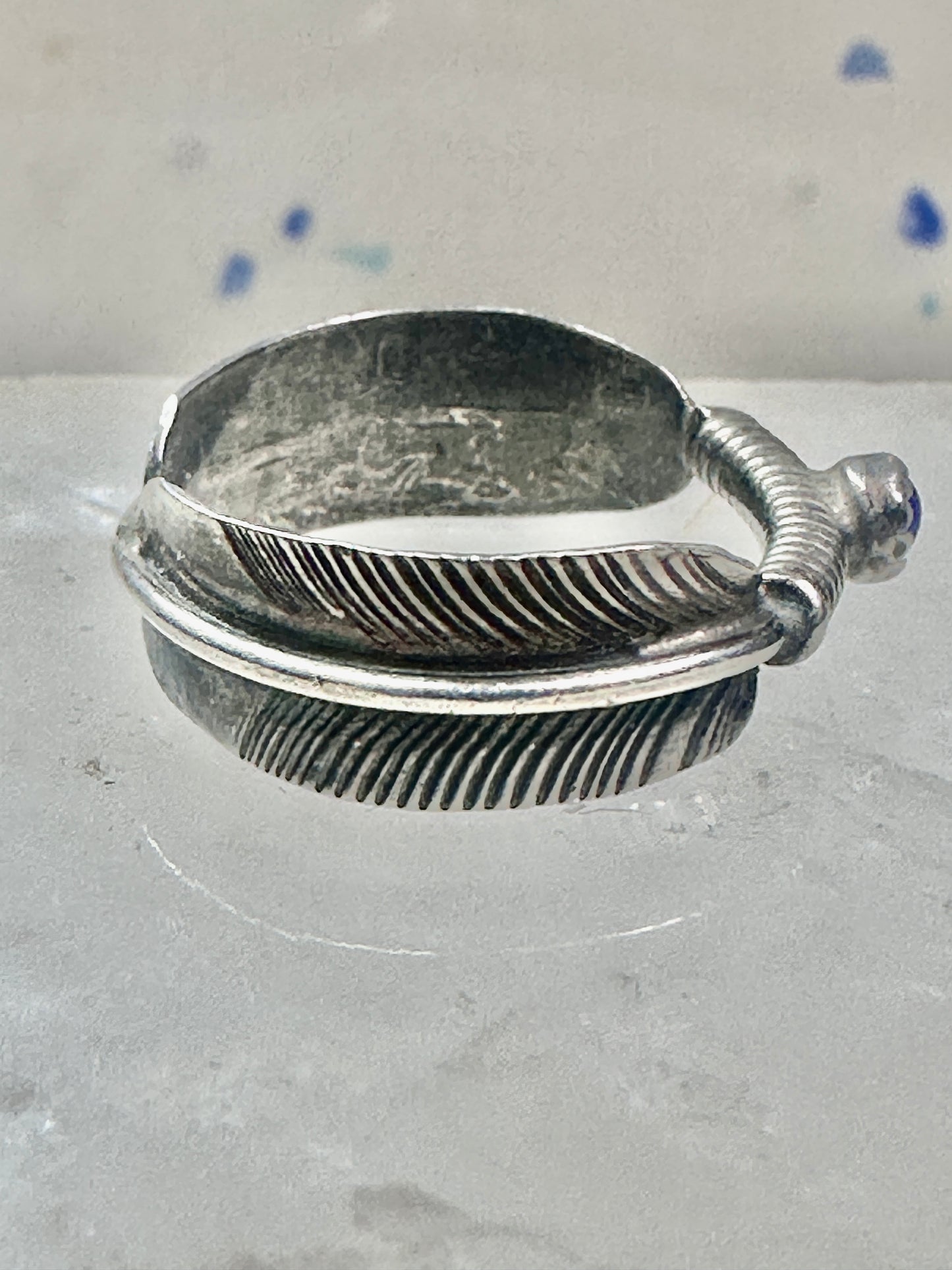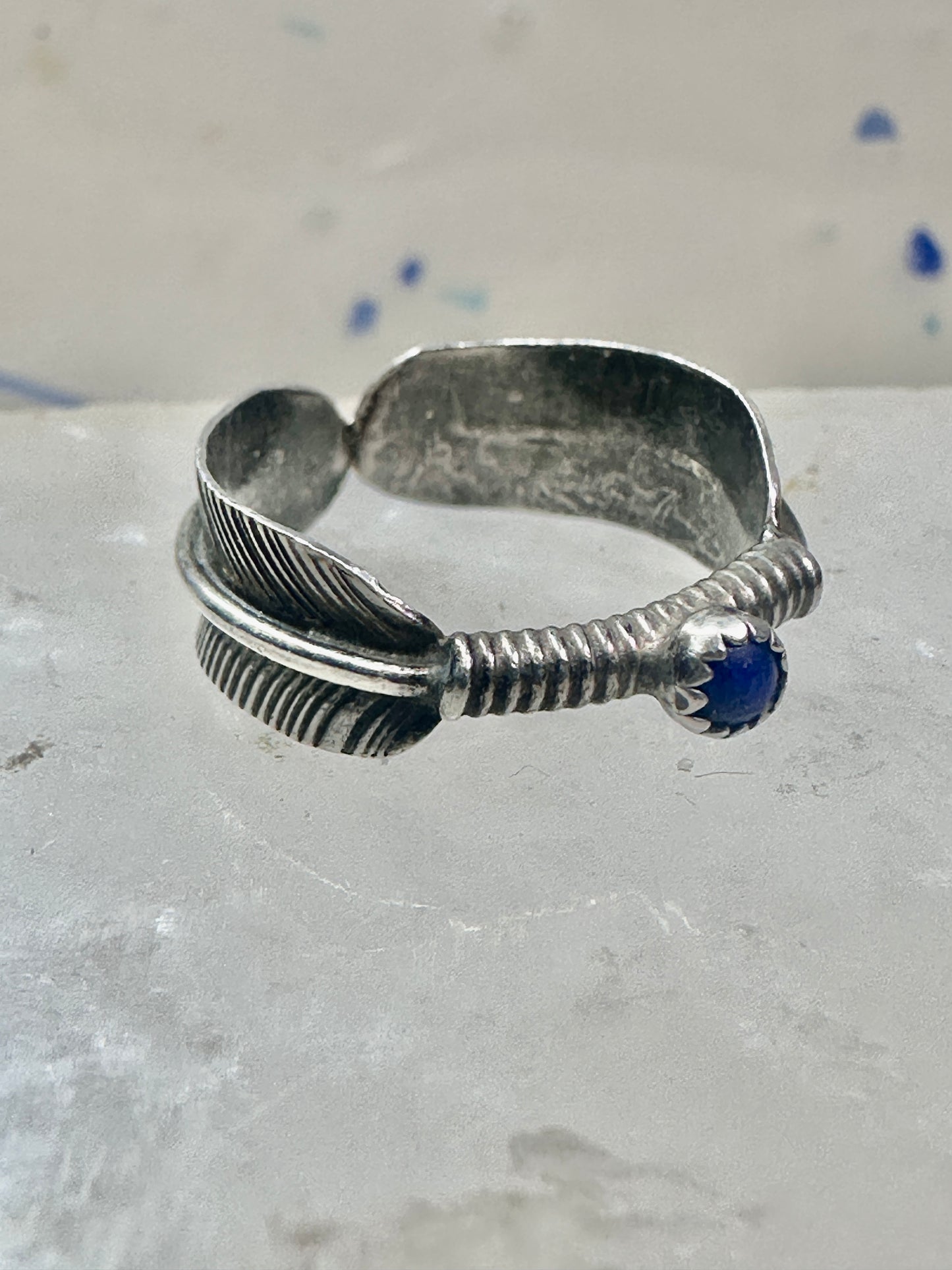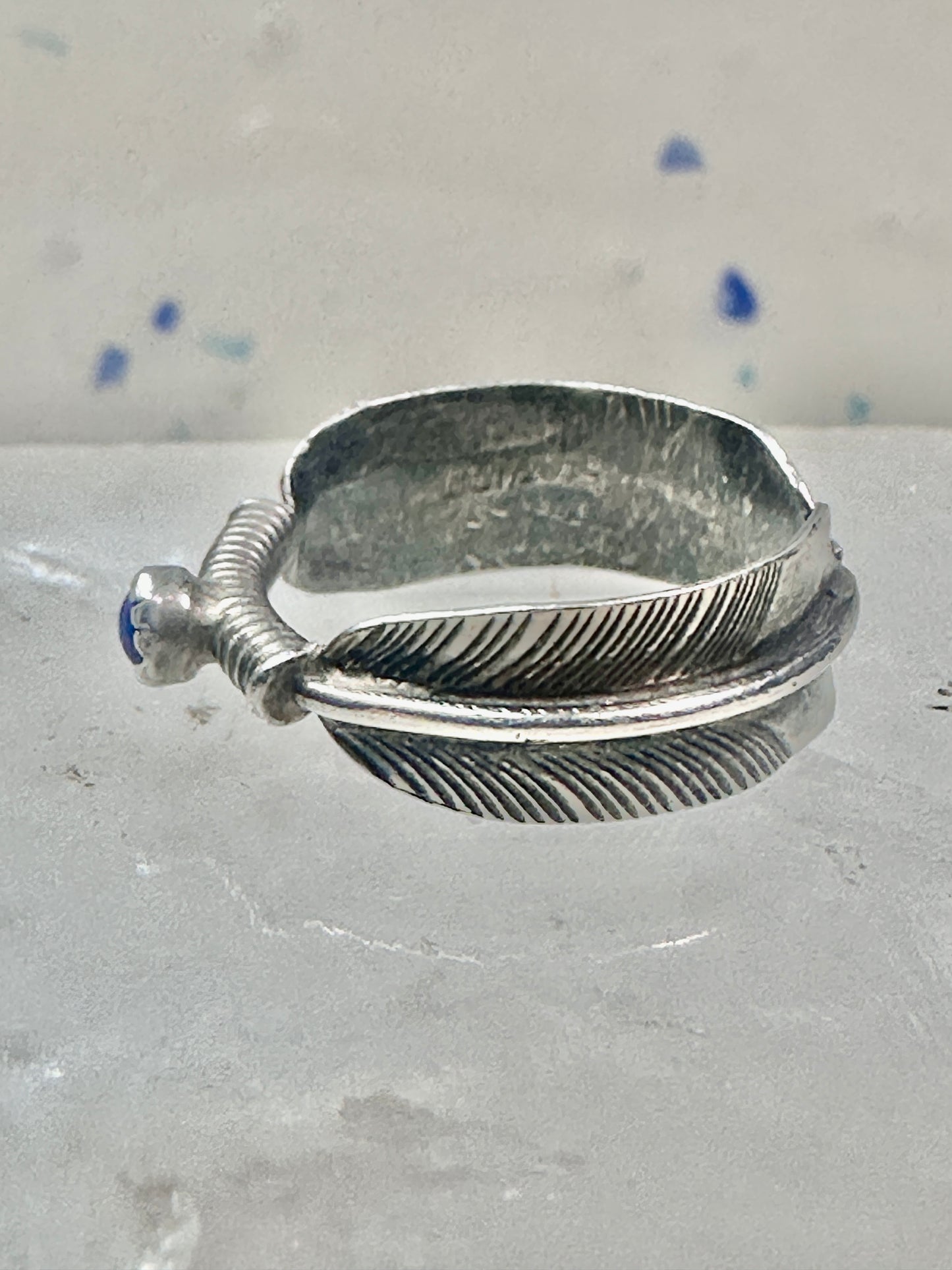 Feather ring blue lapis band southwest size 5 sterling silver women