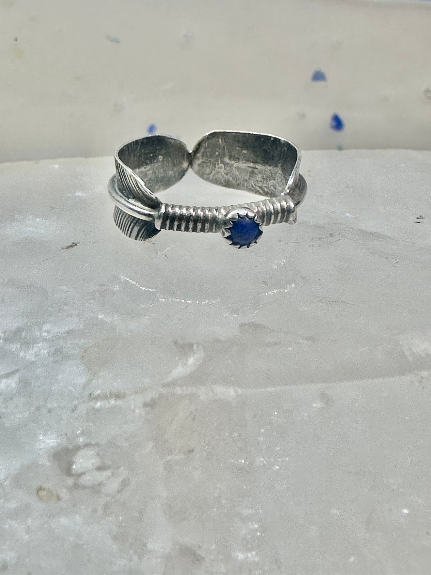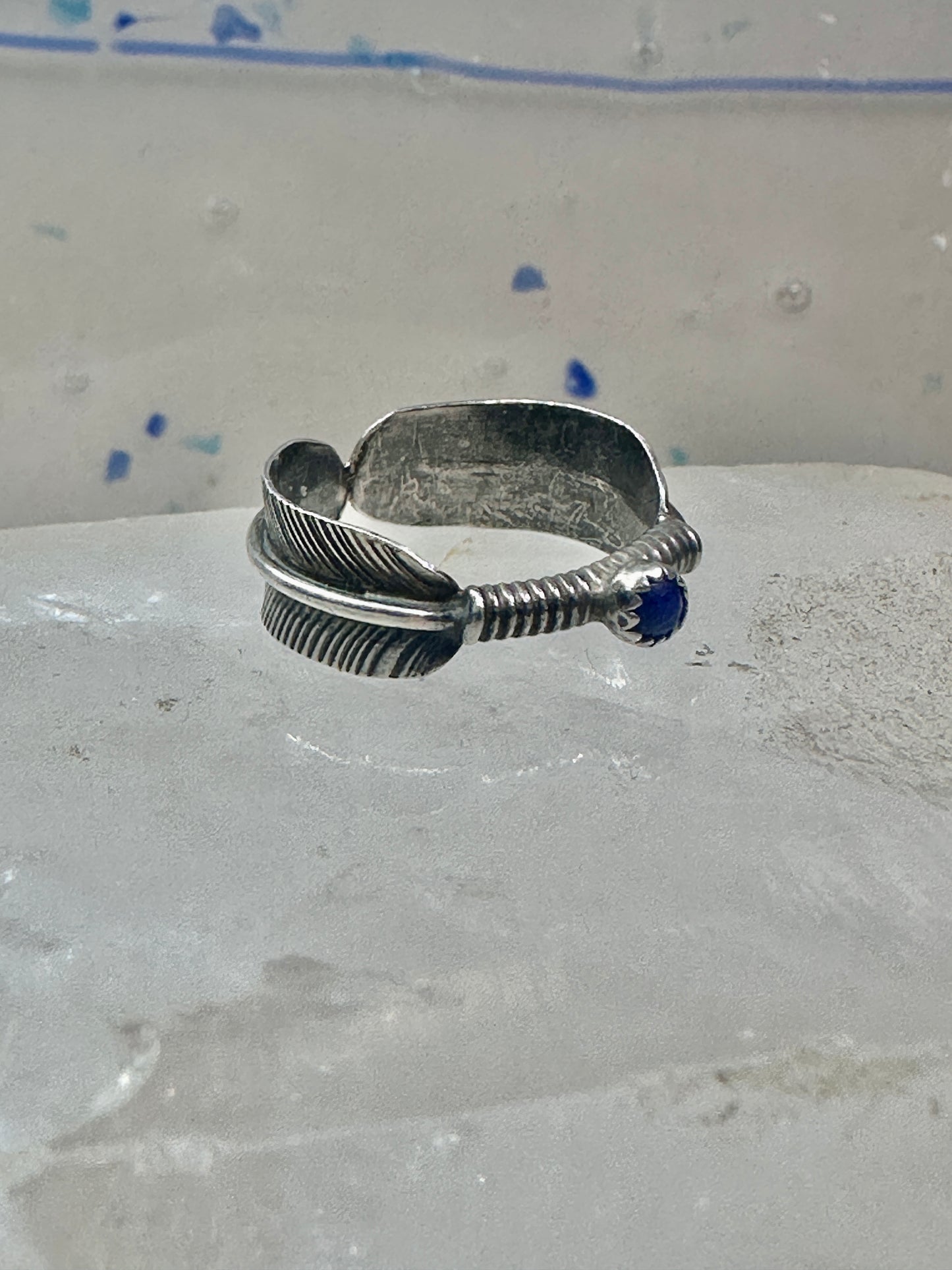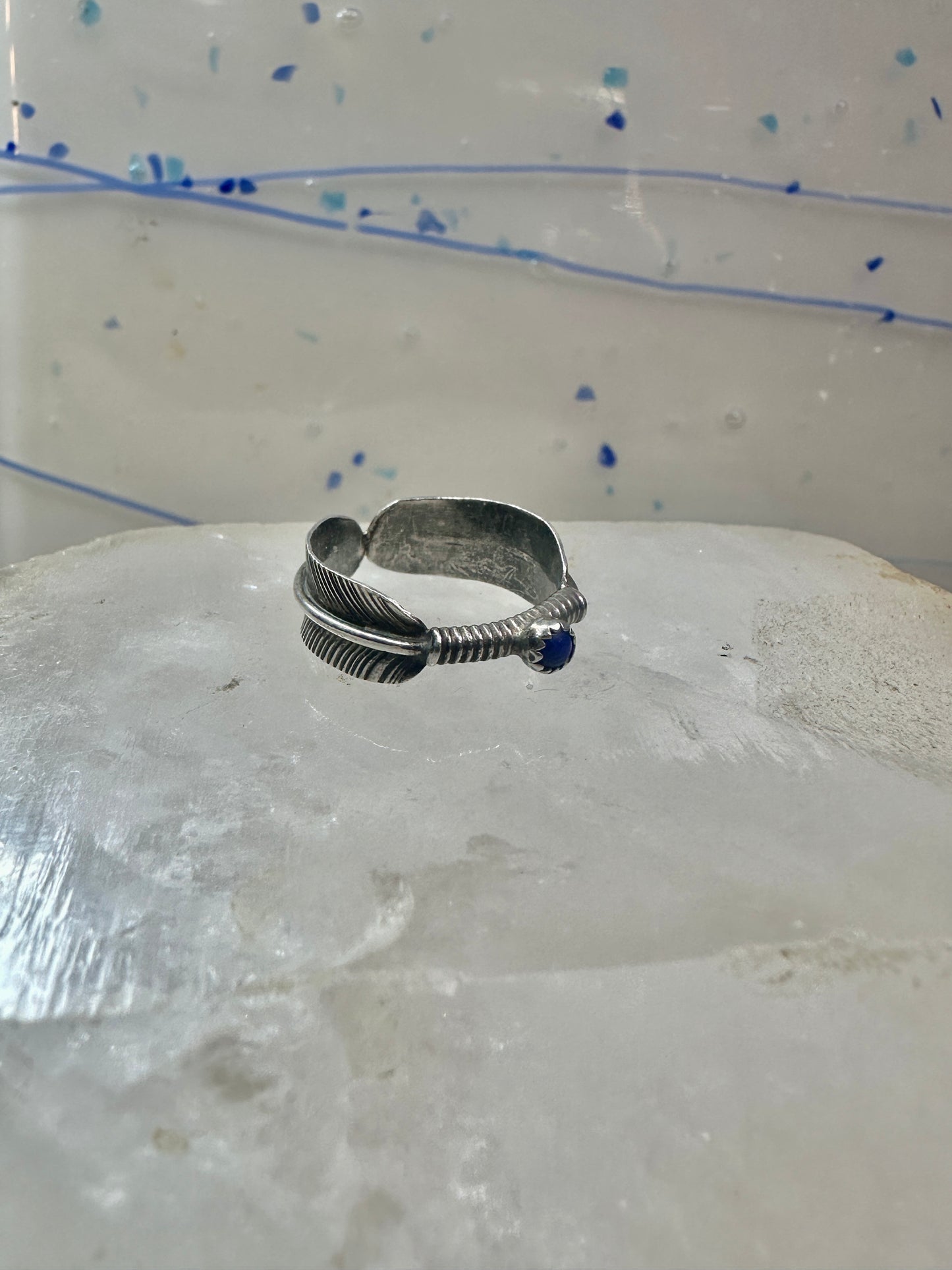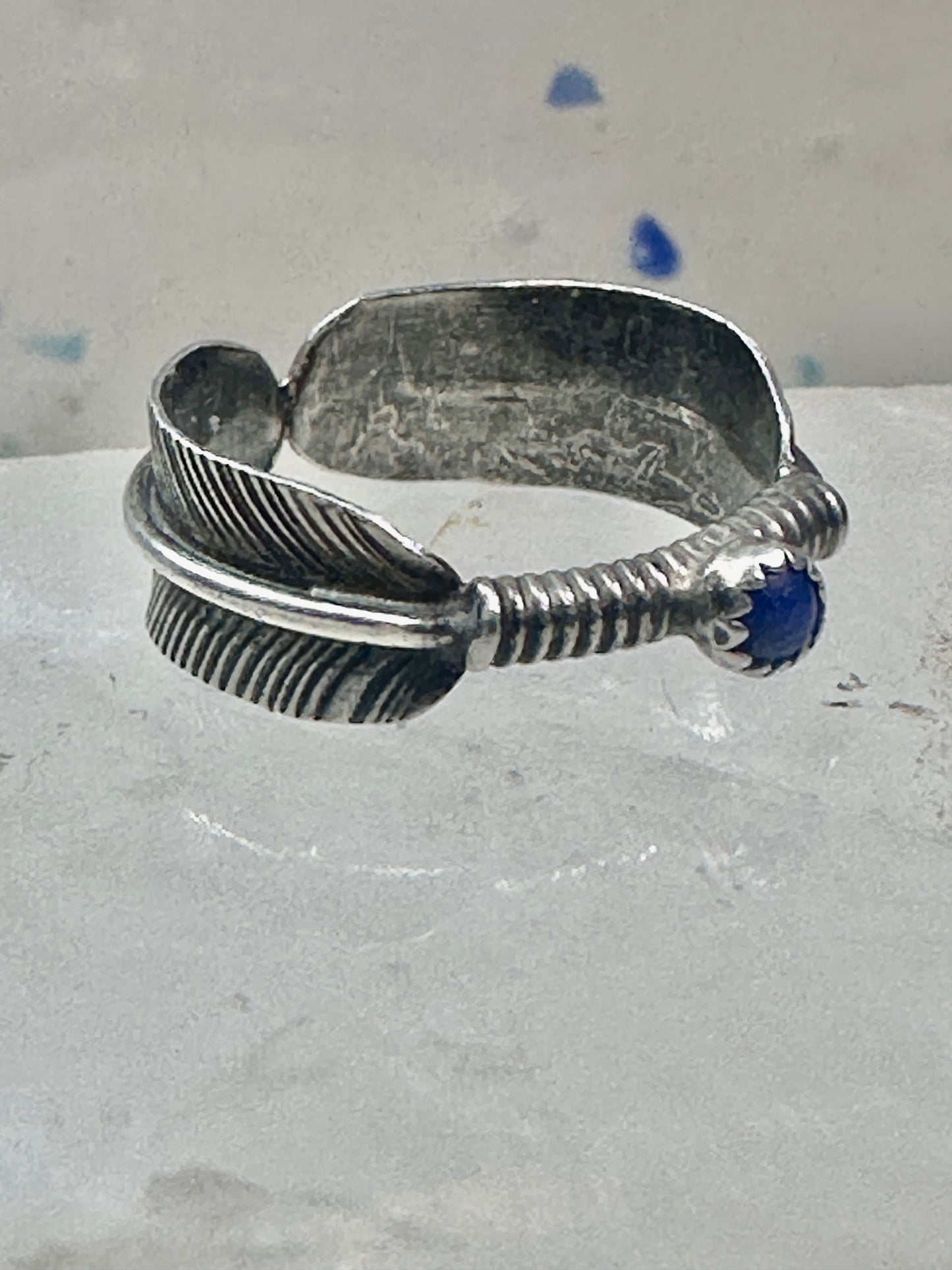 Feather ring blue lapis band southwest size 5 sterling silver women