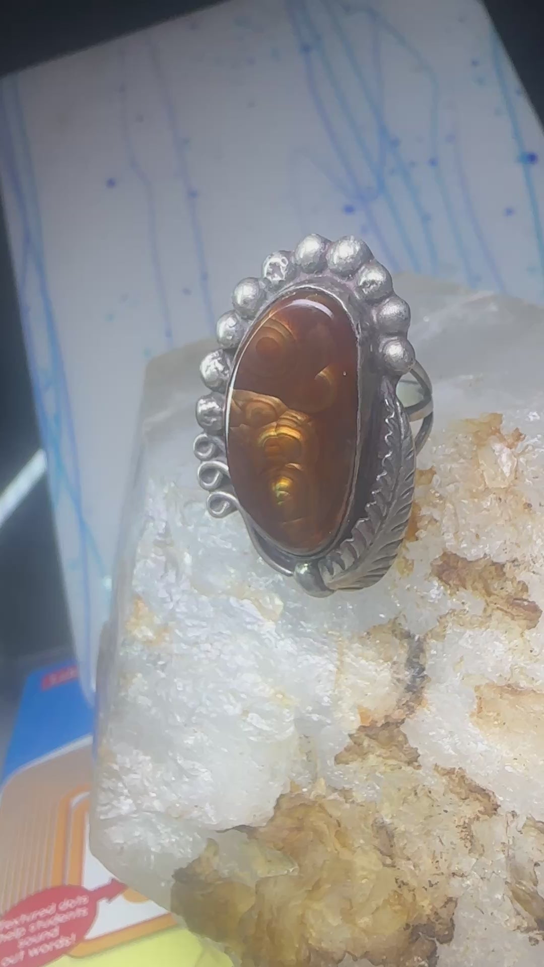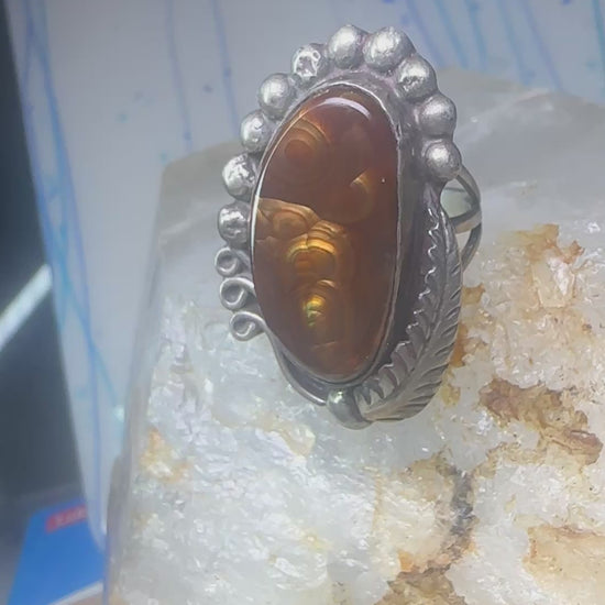 Fire Agate ring Navajo sterling silver beaded design size 5 women girls