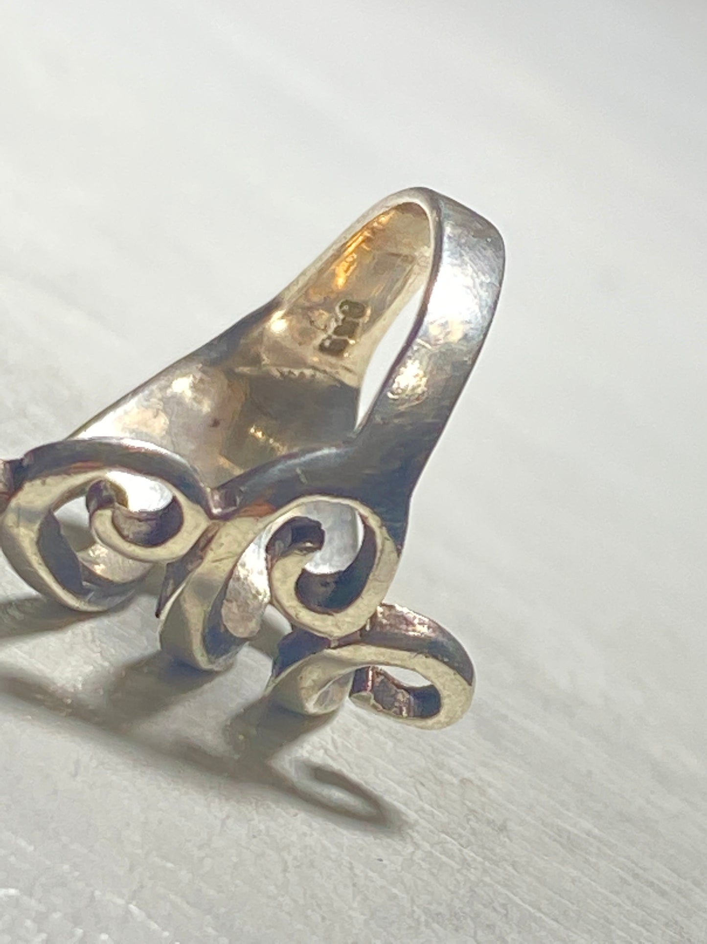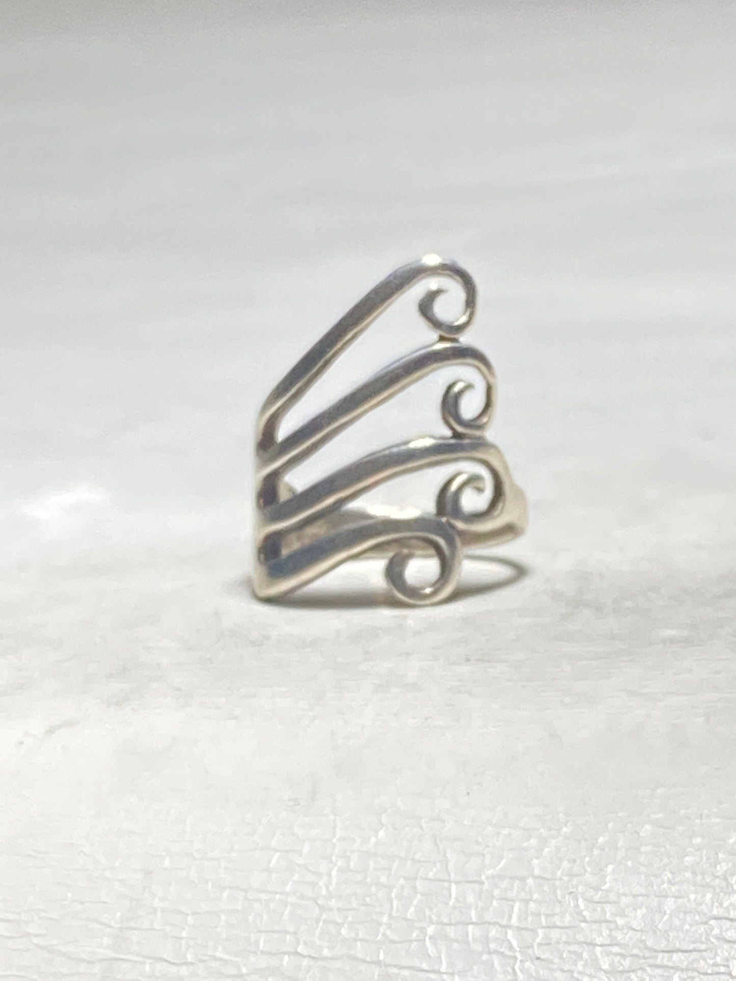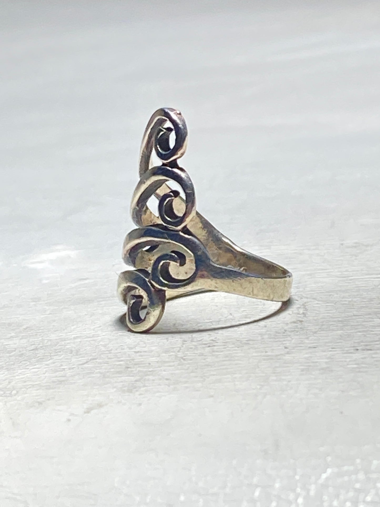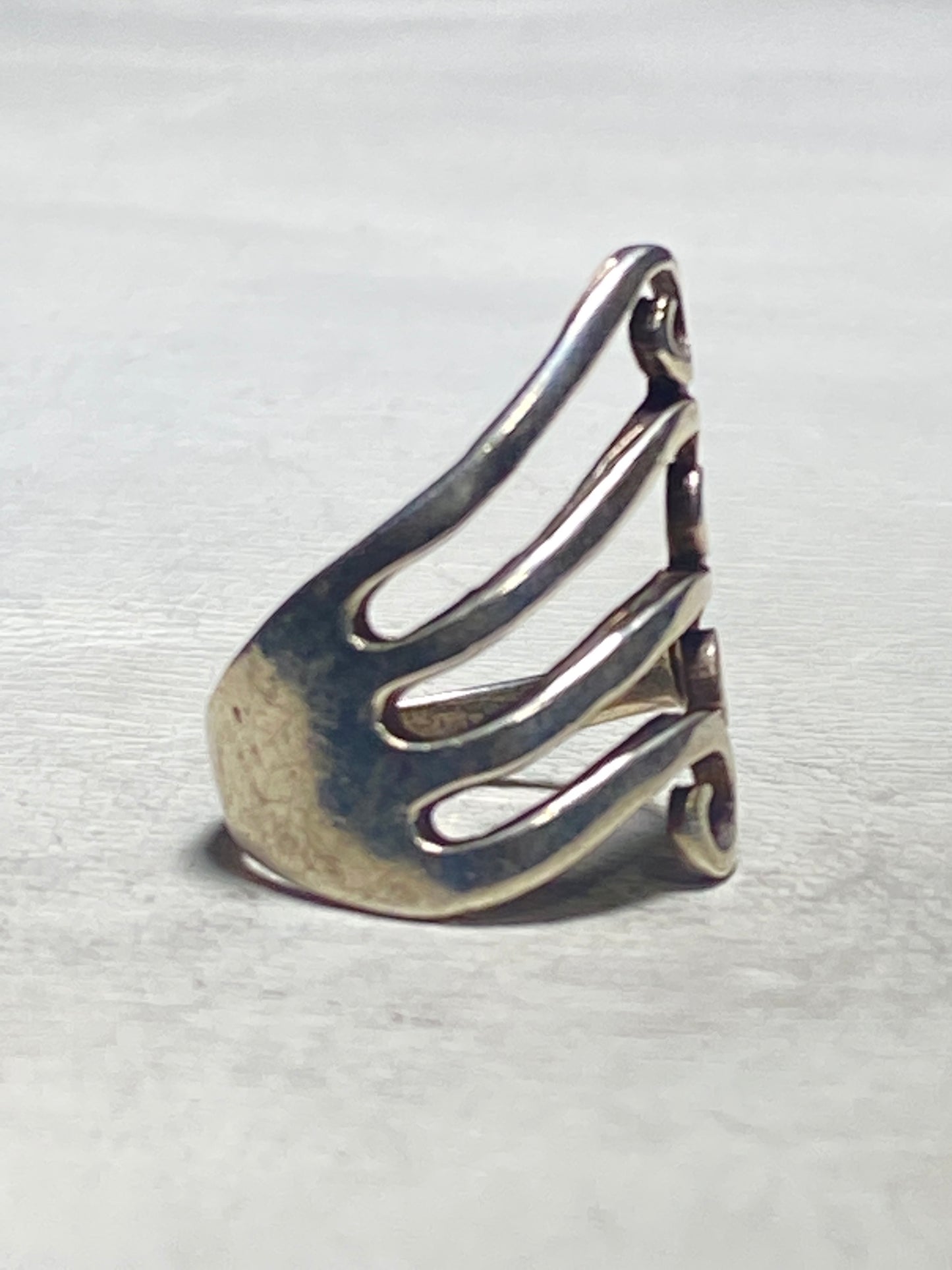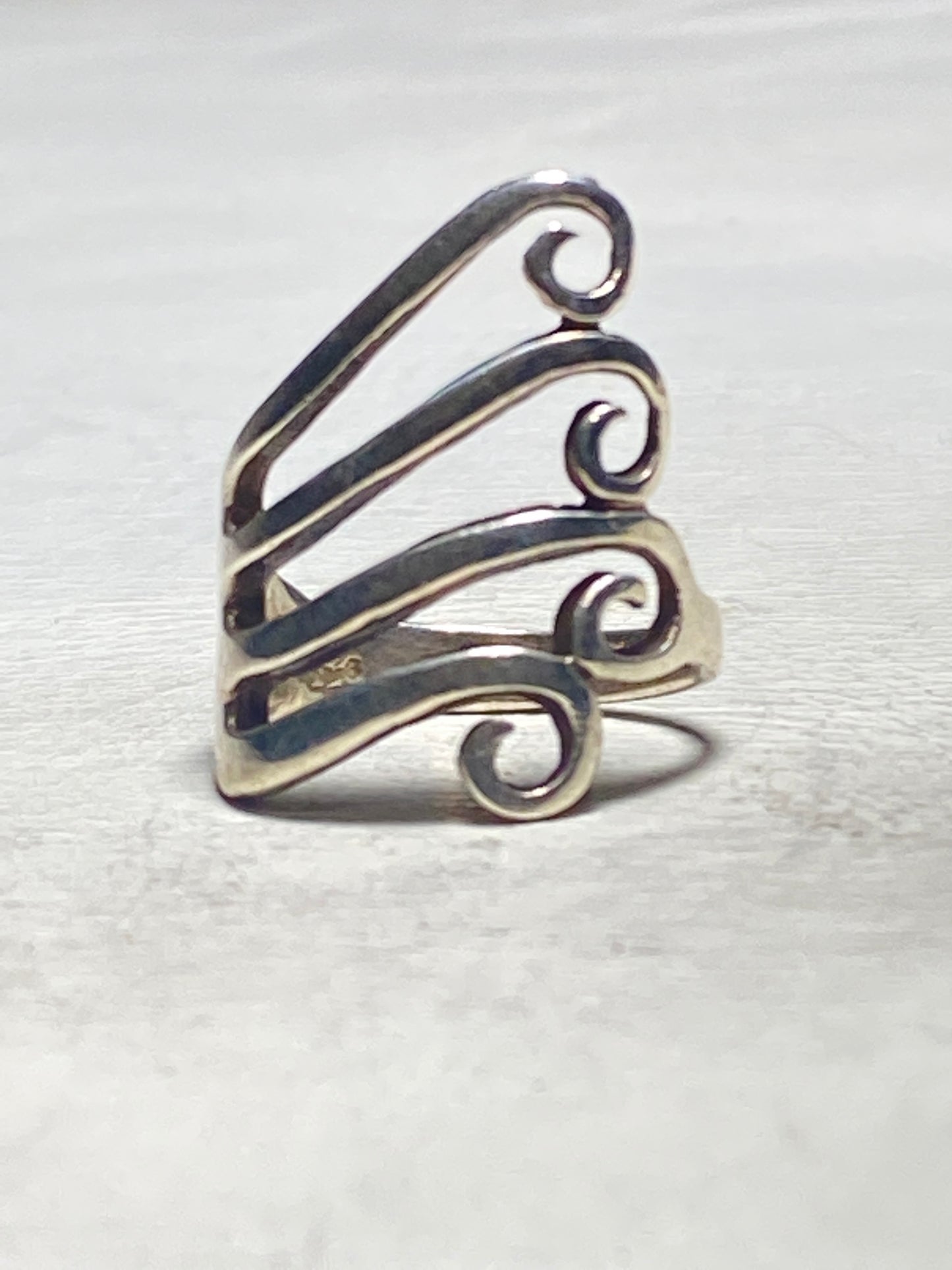 Fork ring long swirl band pinky knuckle sterling silver women girls
