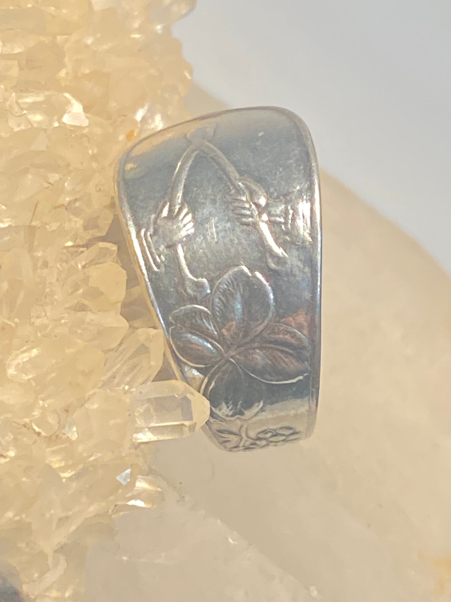 four leaf clover spoon ring size 7.50 heart good luck band wishbone sterling silver women