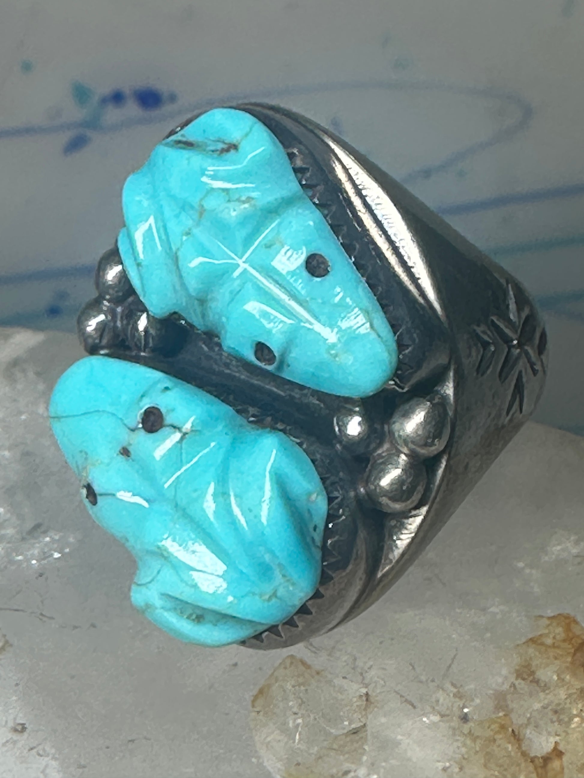 Frog Ring Turquoise carved frogs band coin silver size 12.25 men women