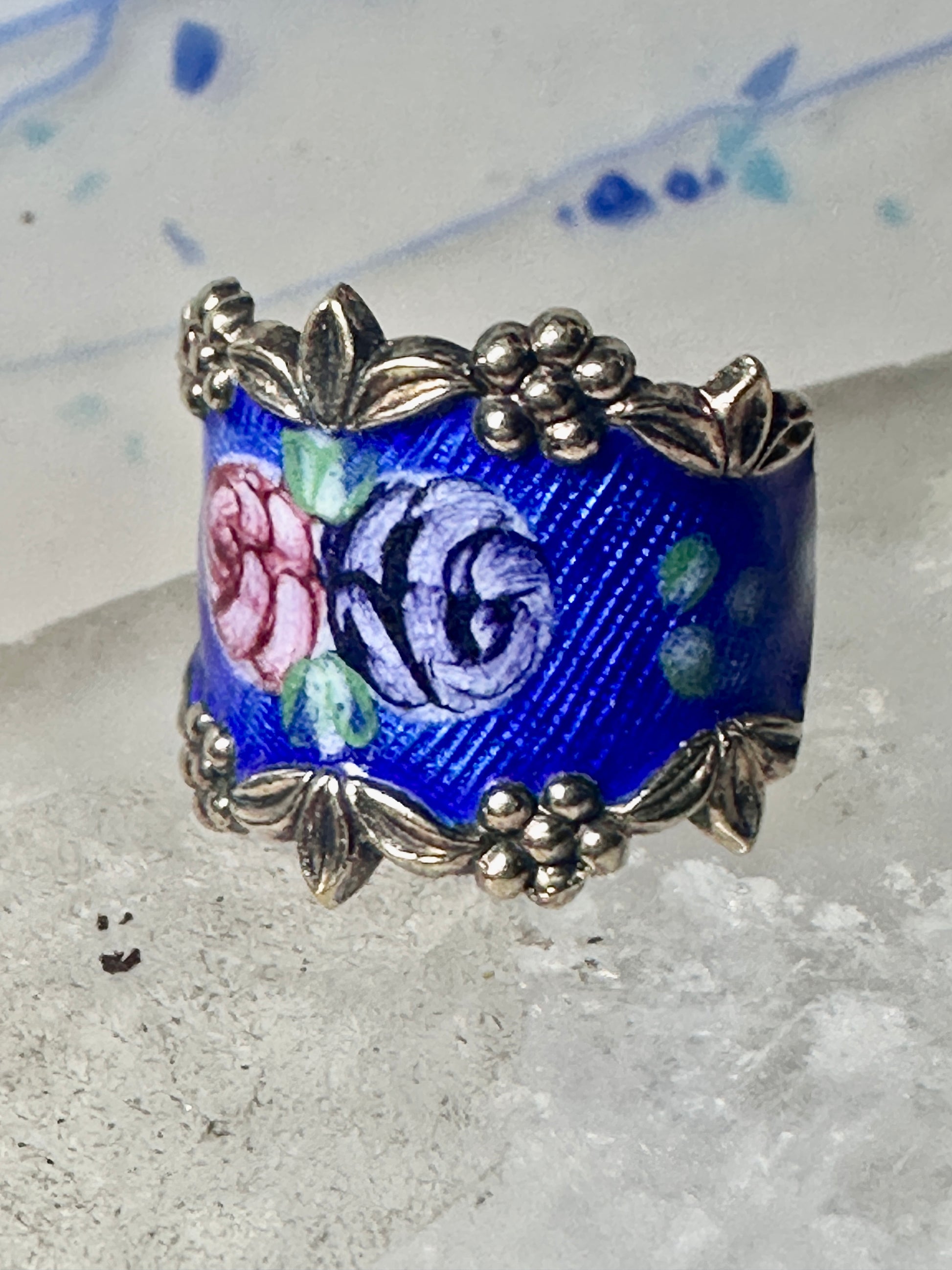 Guilloche ring floral rose band size 6.75 sterling silver women girls