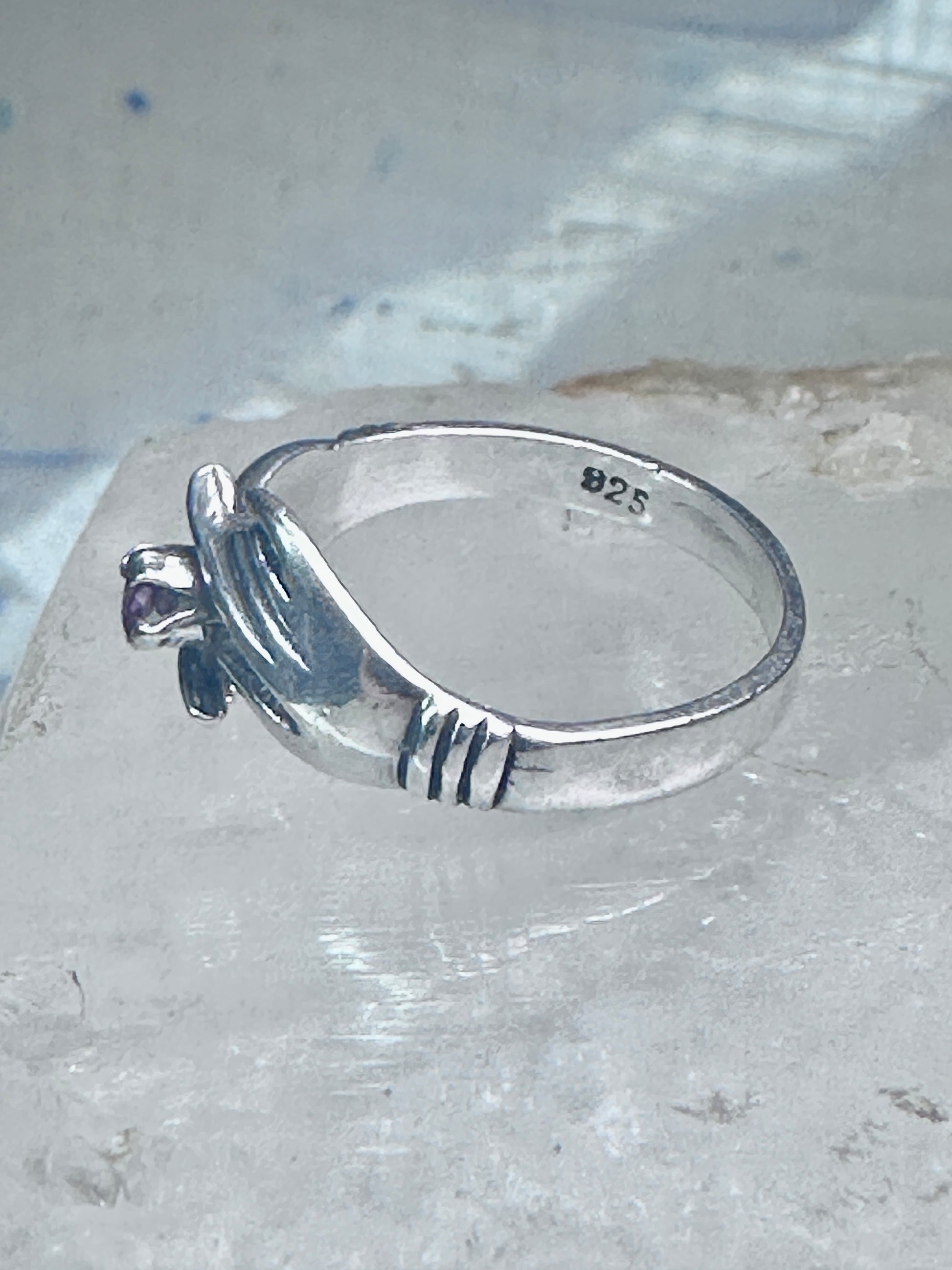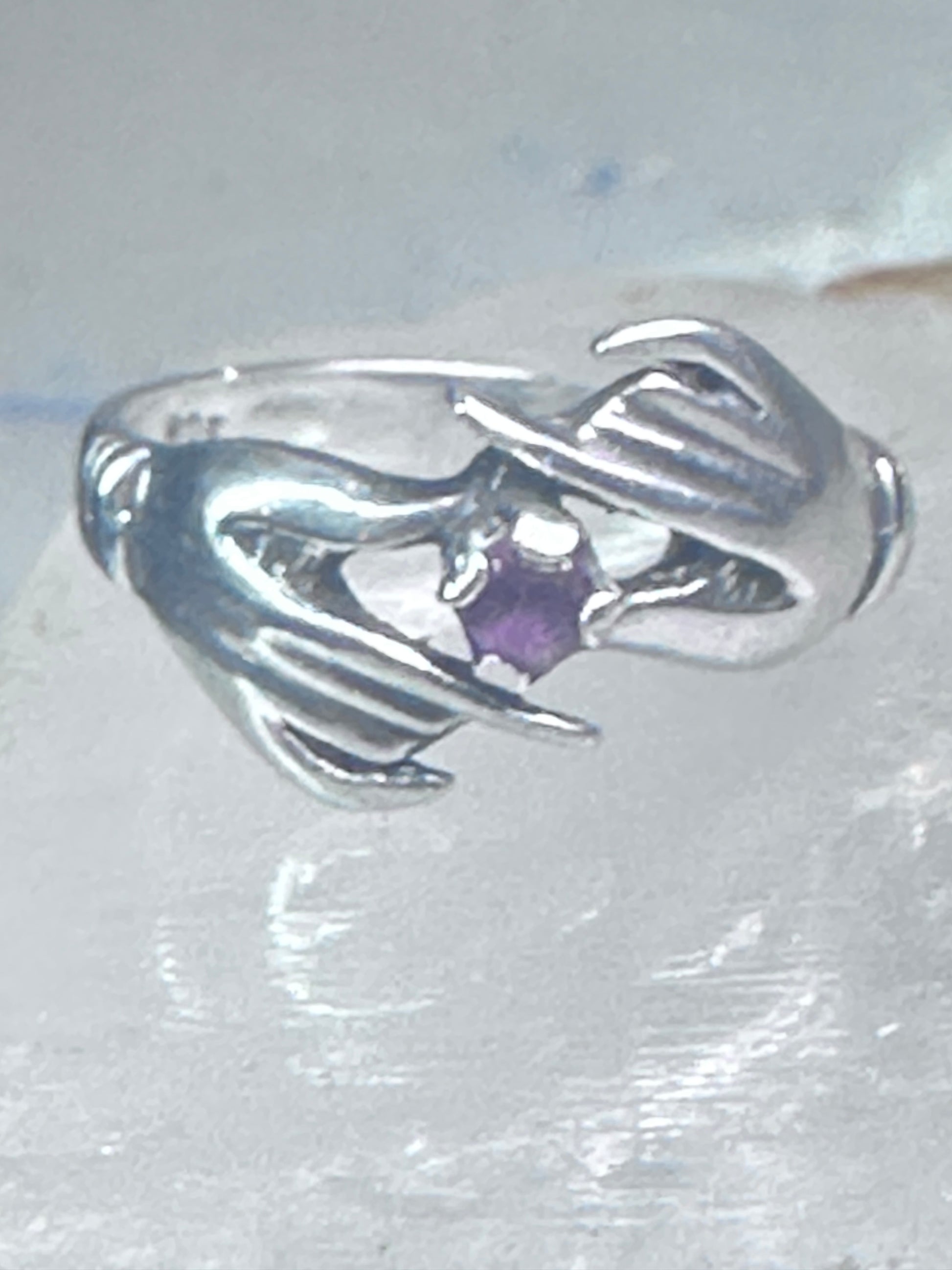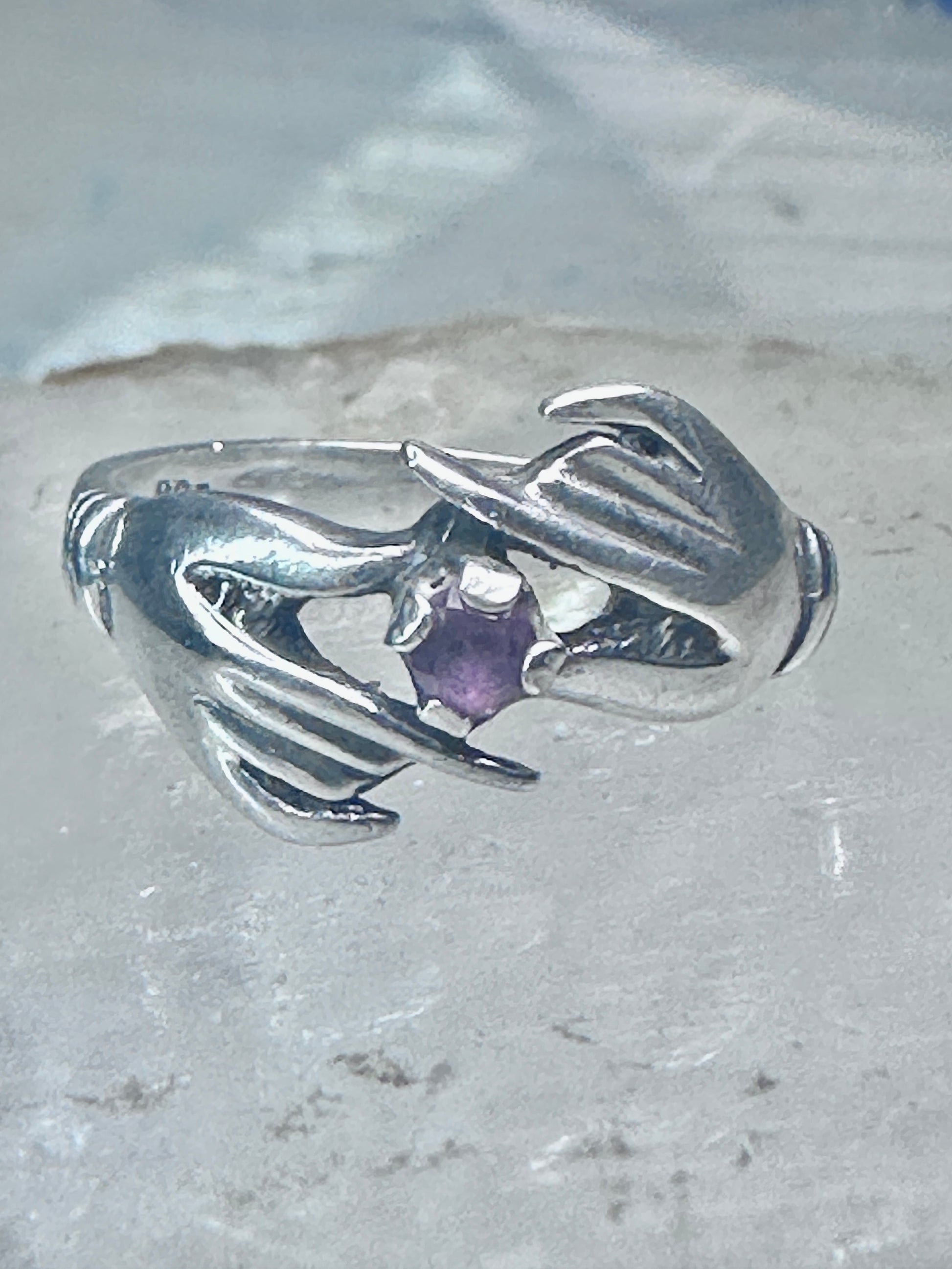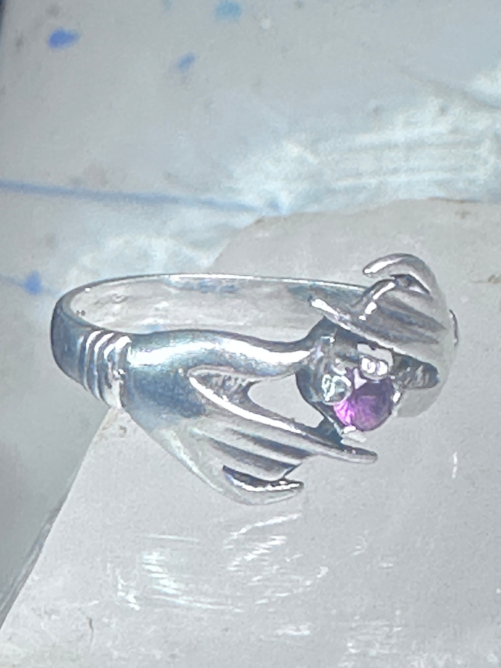 Hands ring holding stone red pinkish vintage size 7 sterling silver women girls