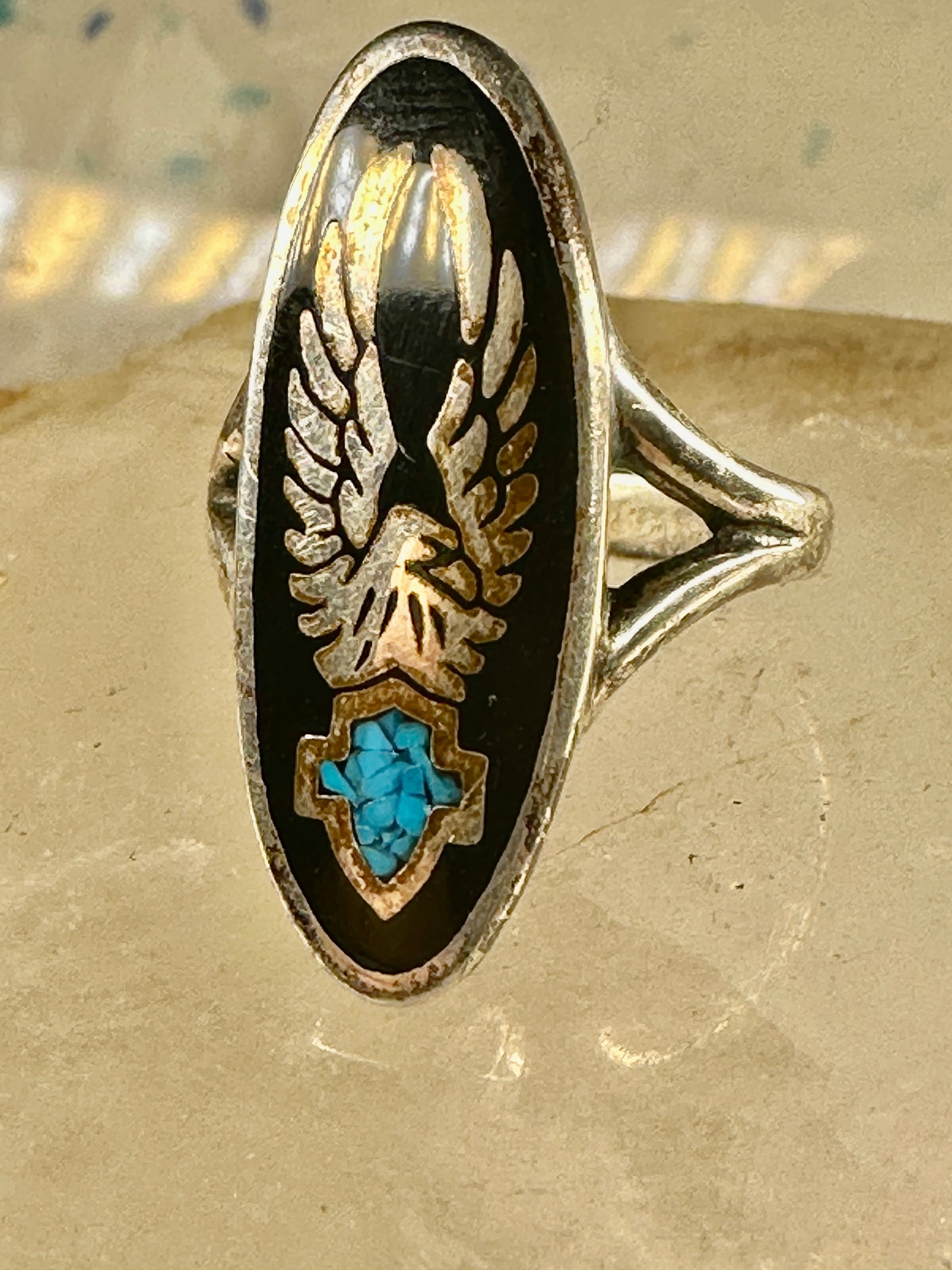 Harley Davidson ring Eagle holding Harley emblem sterling silver size 5.75 biker women