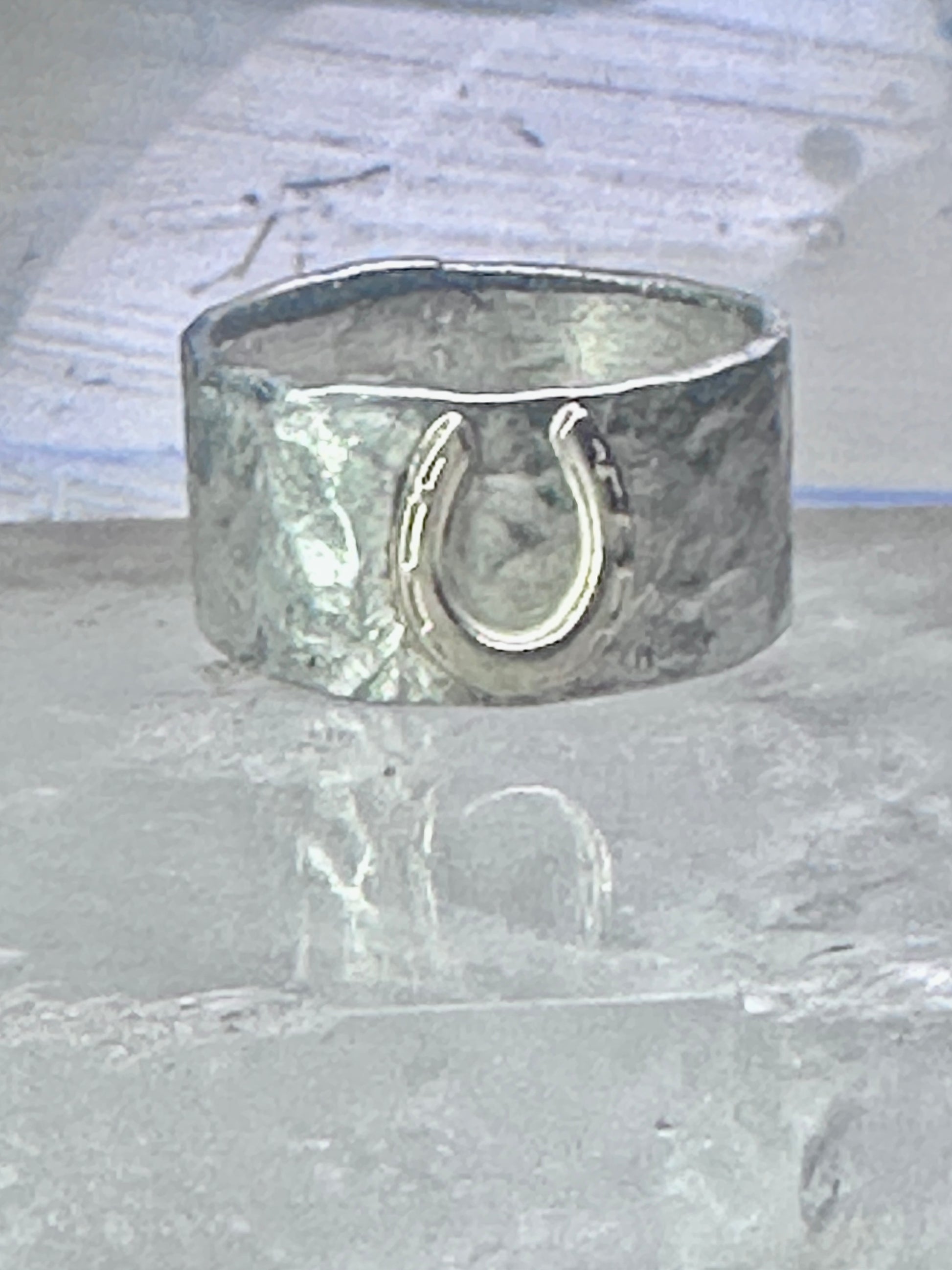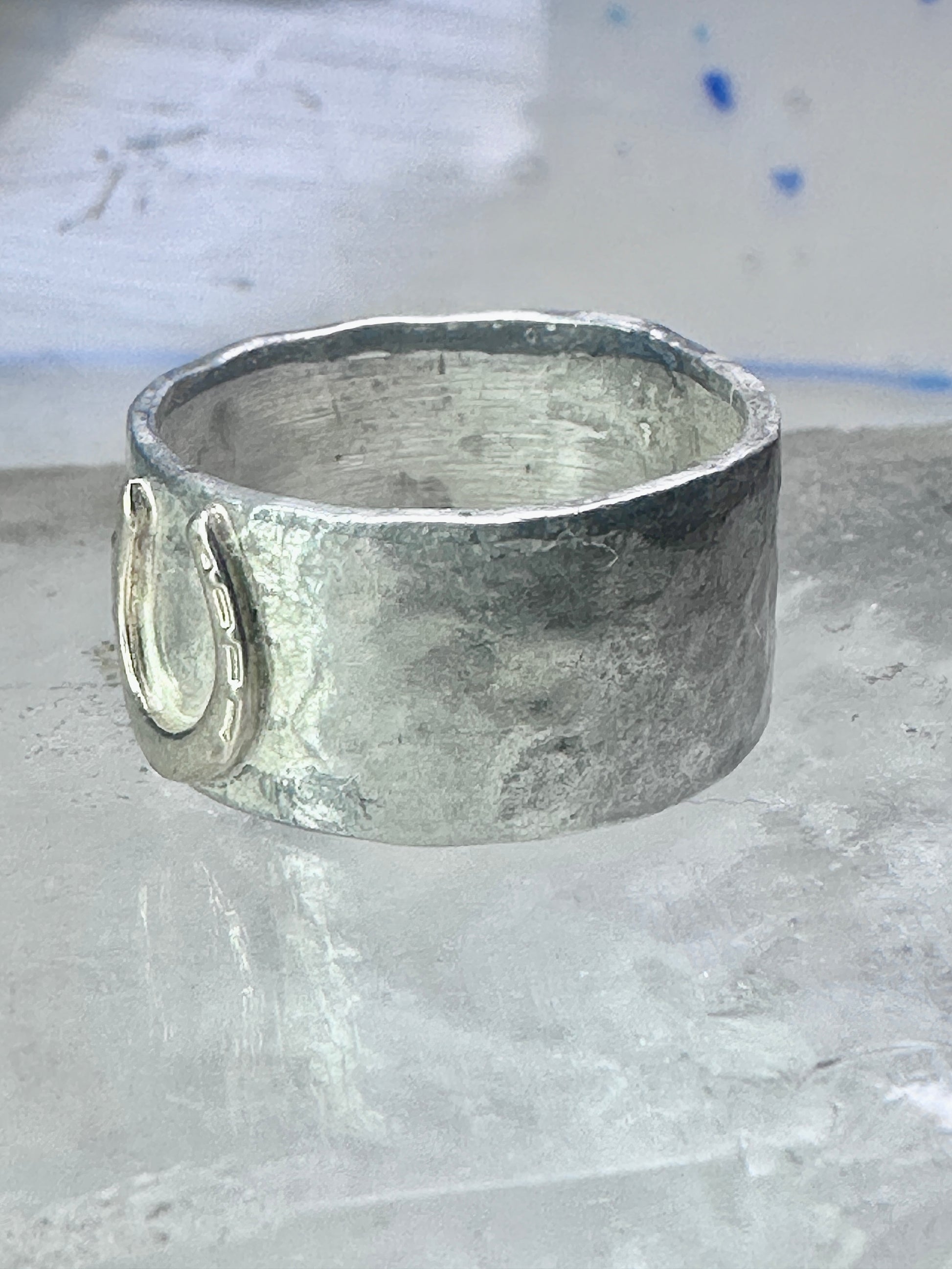 Horseshoe Ring Good Luck band size 9.25 cowboy sterling silver women men
