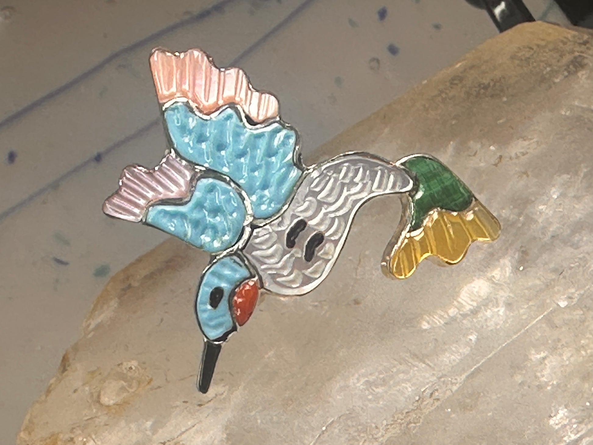 Hummingbird ring Zuni turquoise MOP size 6.25 sterling silver women