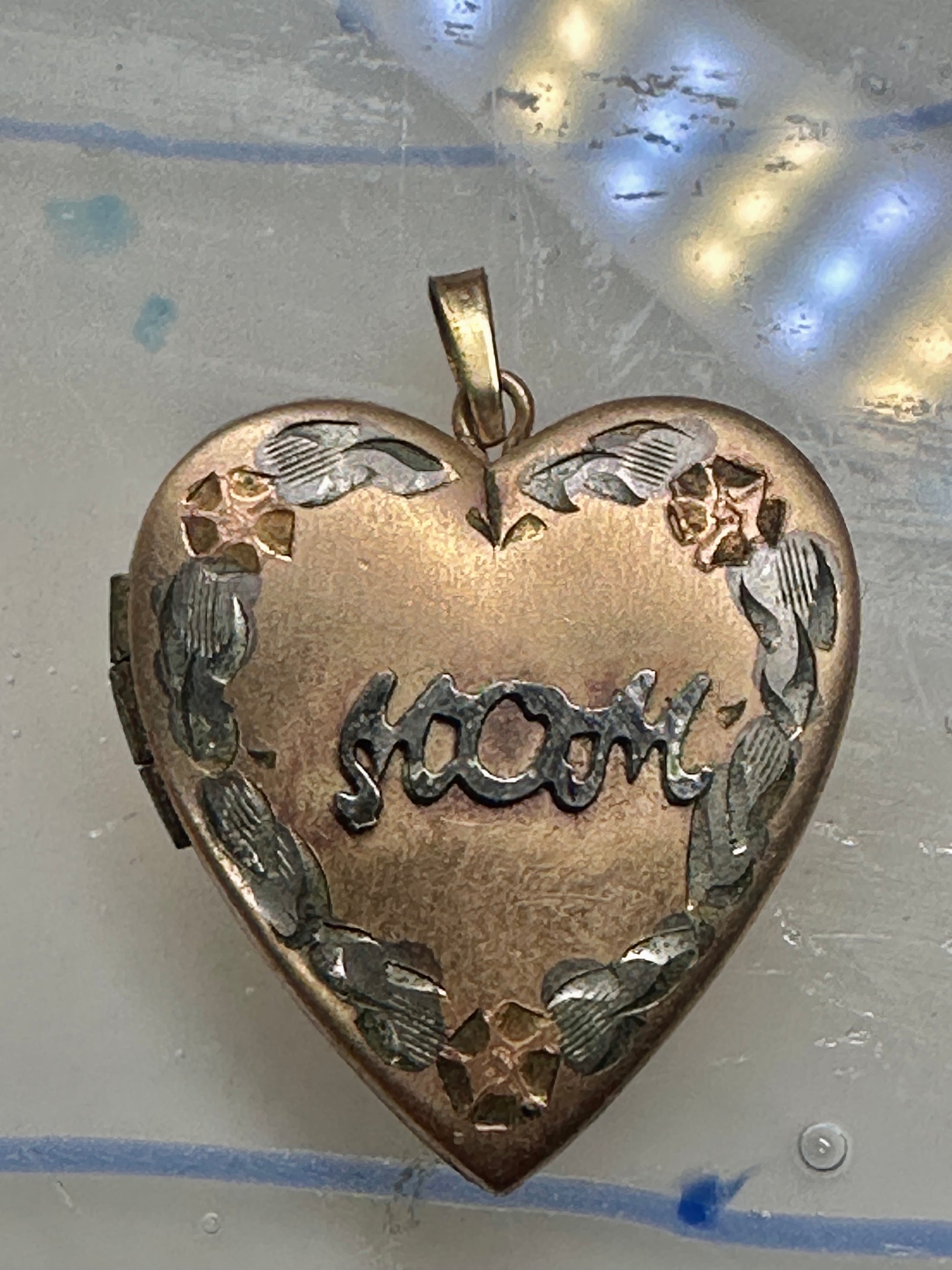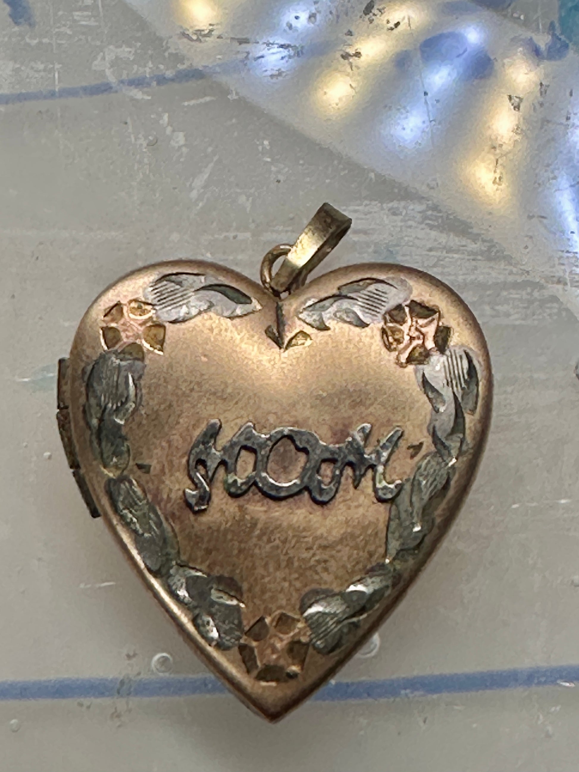 intage Floral MOM Photo Heart Love Valentine Locket flower Pendant 1/20 14KGF