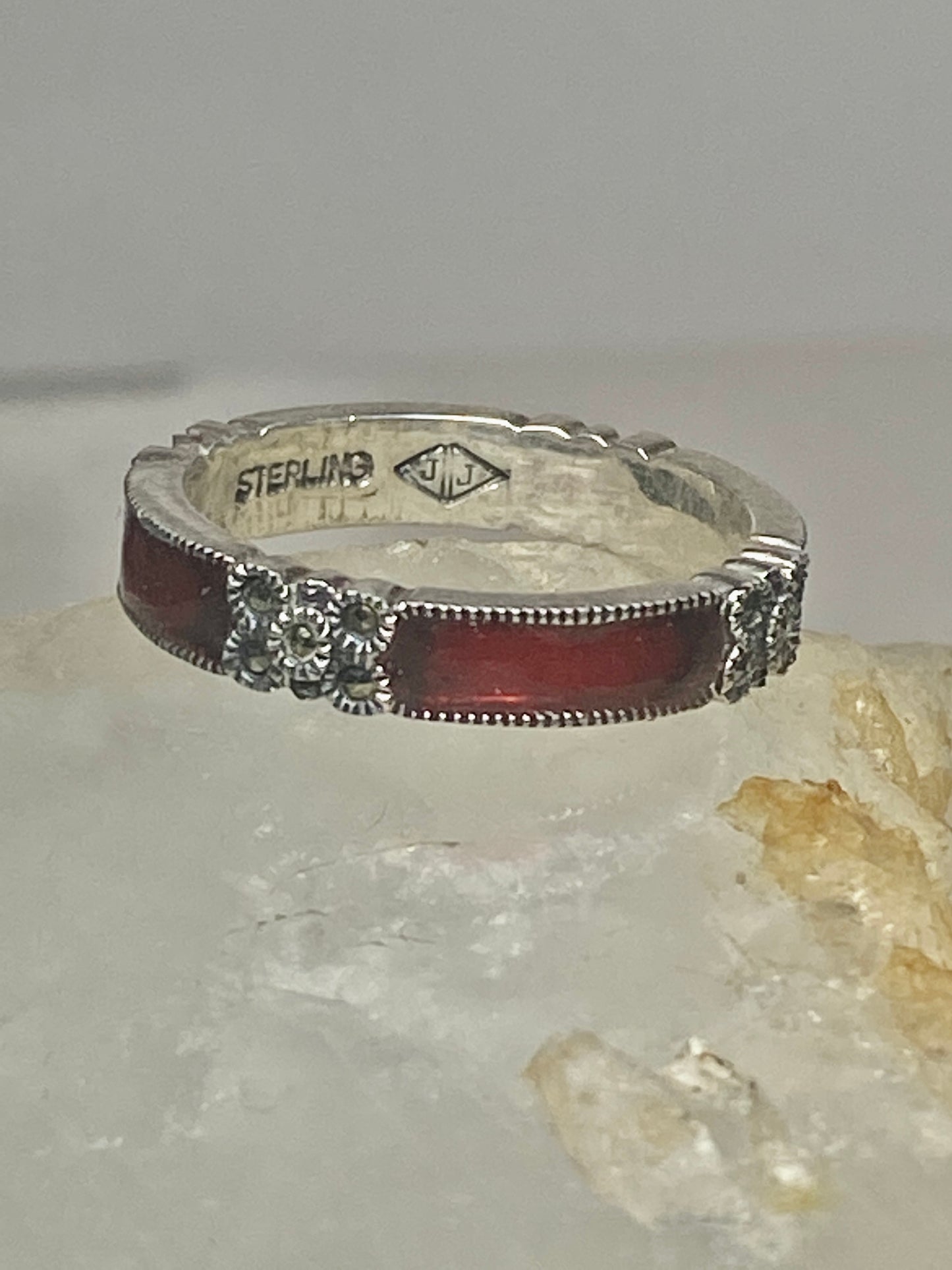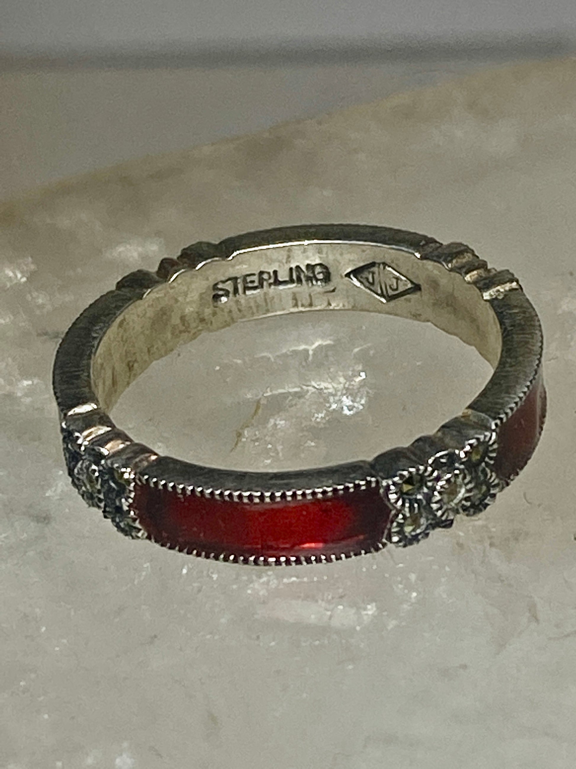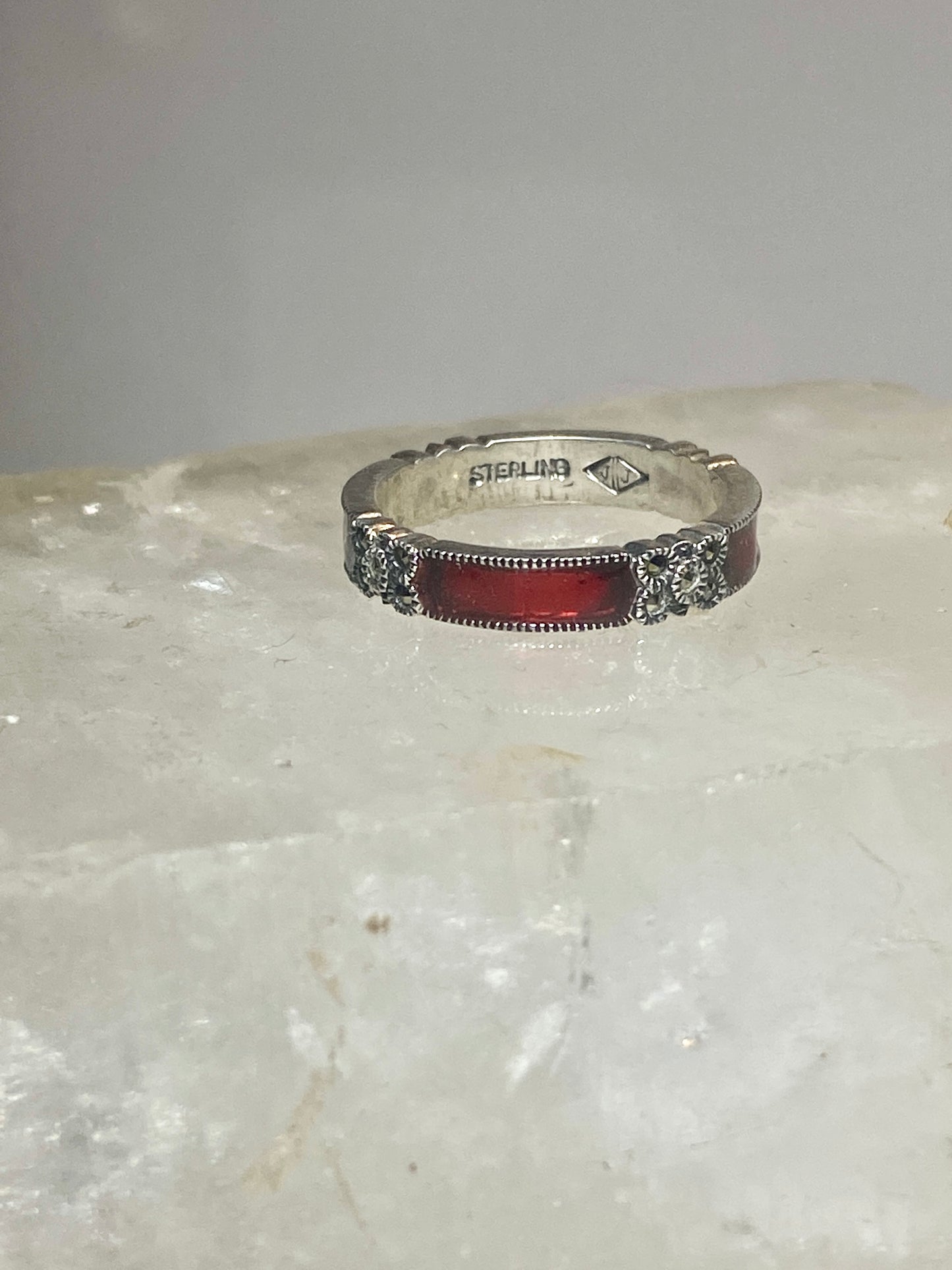 Judith Jack ring size 7.75 marcasites red stacker band sterling silver women