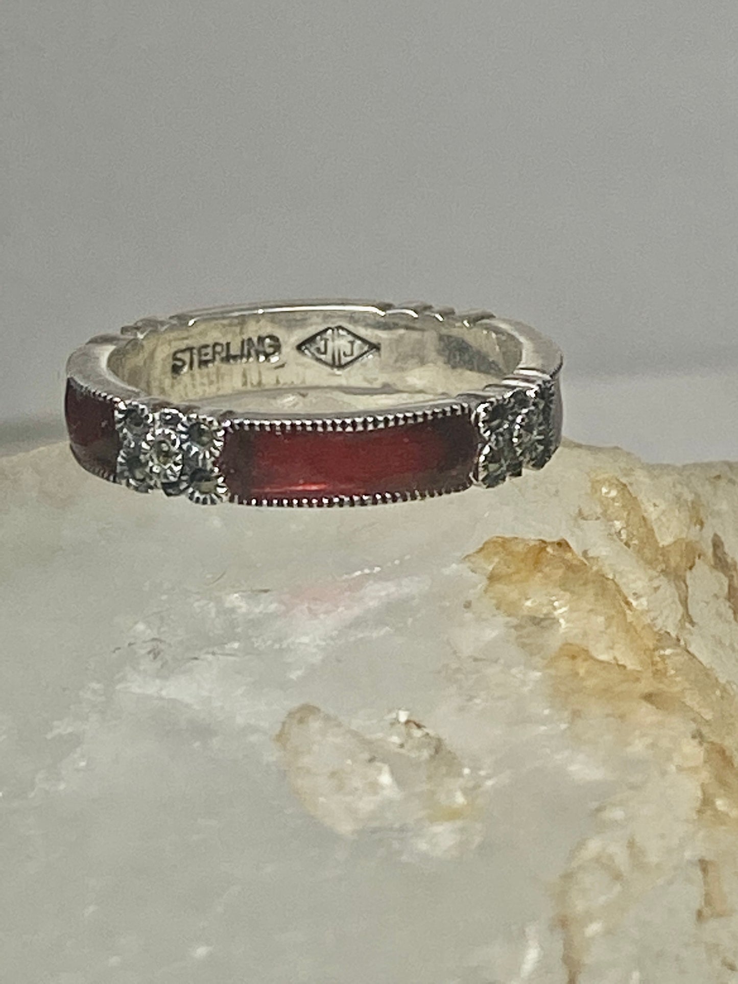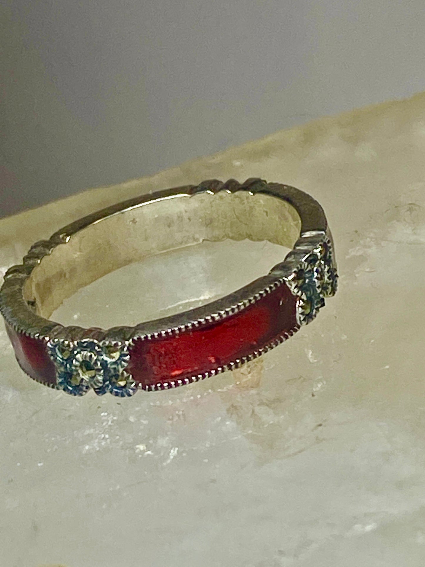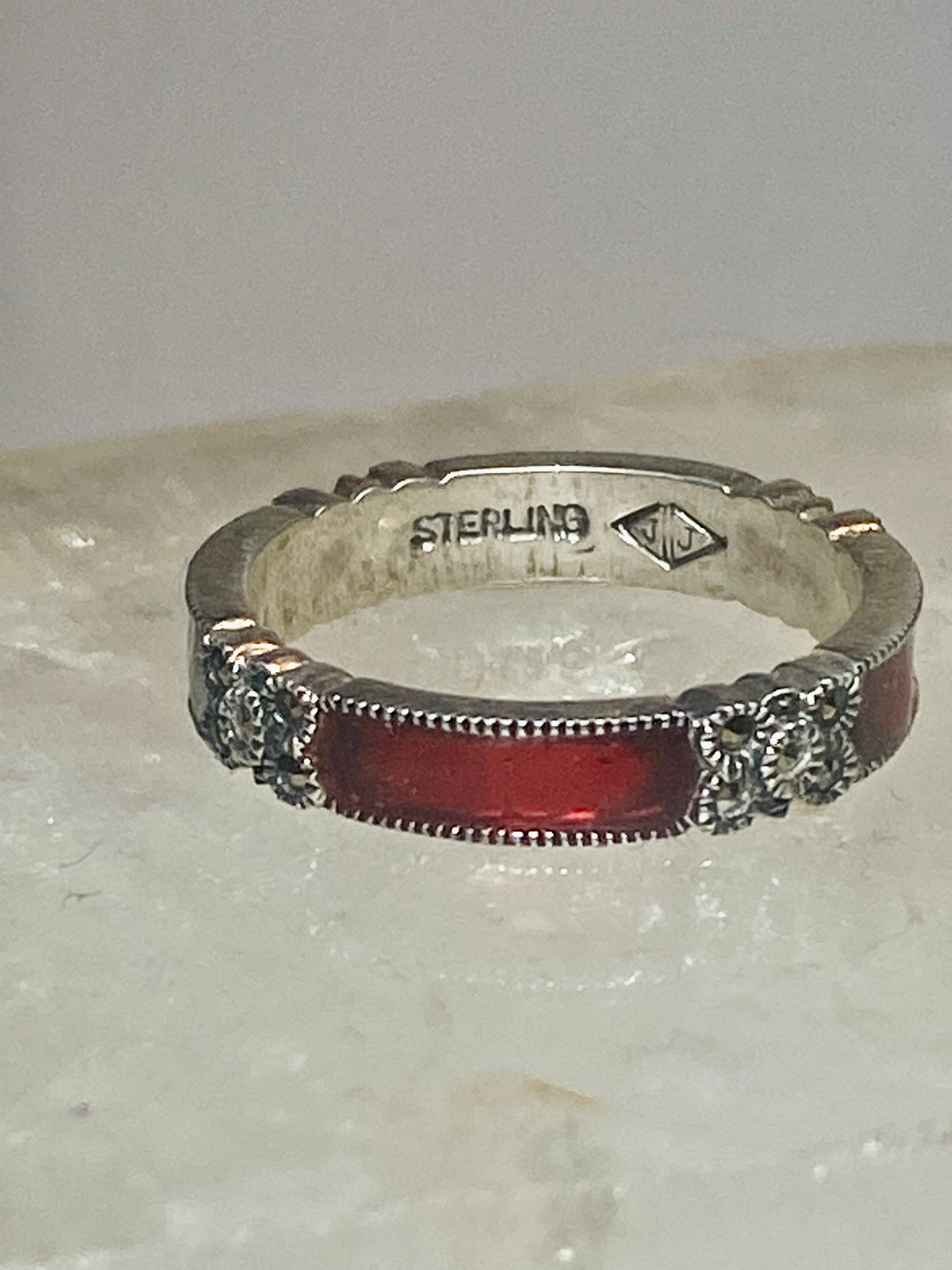 Judith Jack ring size 7.75 marcasites red stacker band sterling silver women