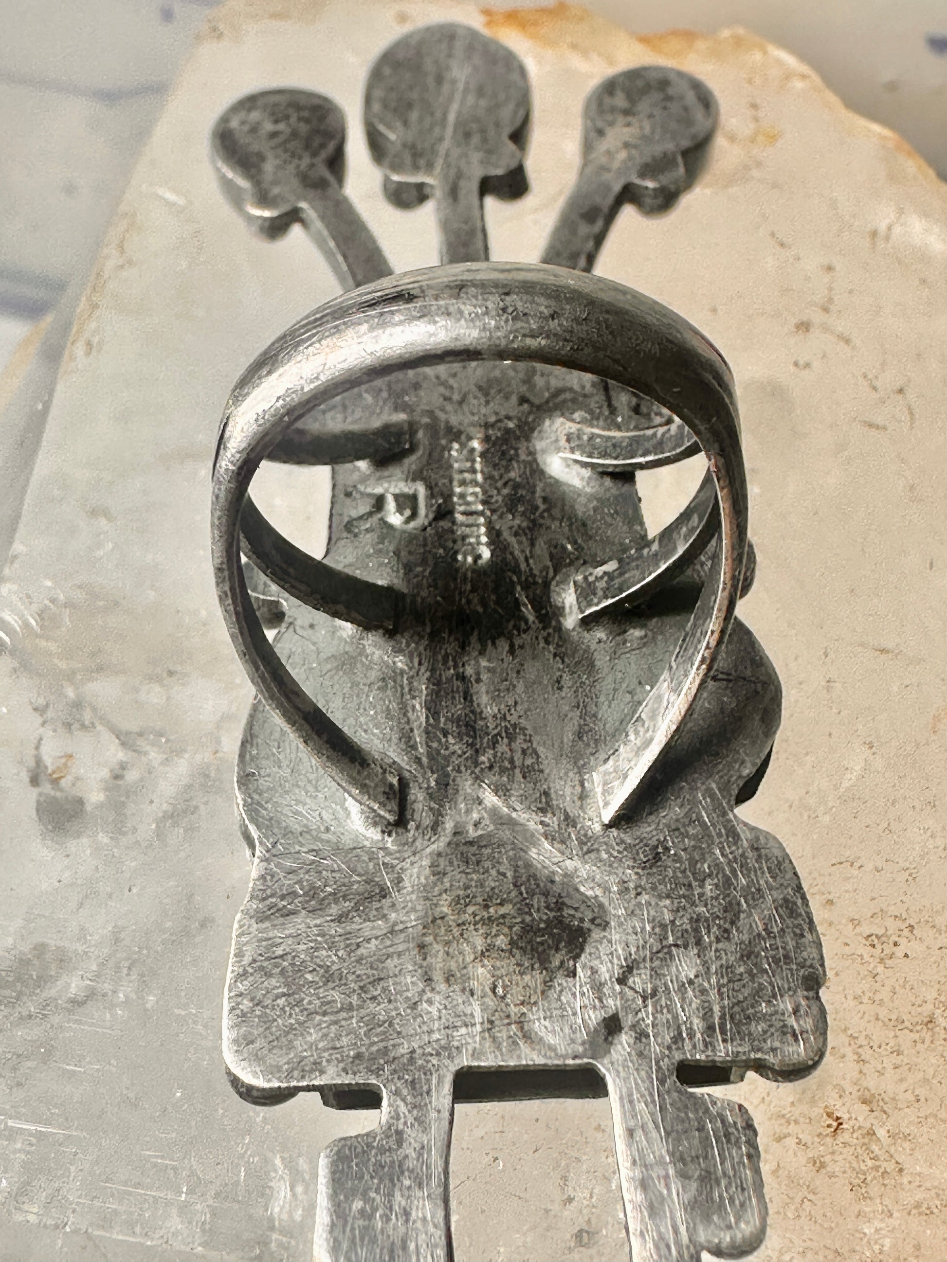Kachina ring size 8.50 Navajo turquoise coral heavy large band sterling silver women