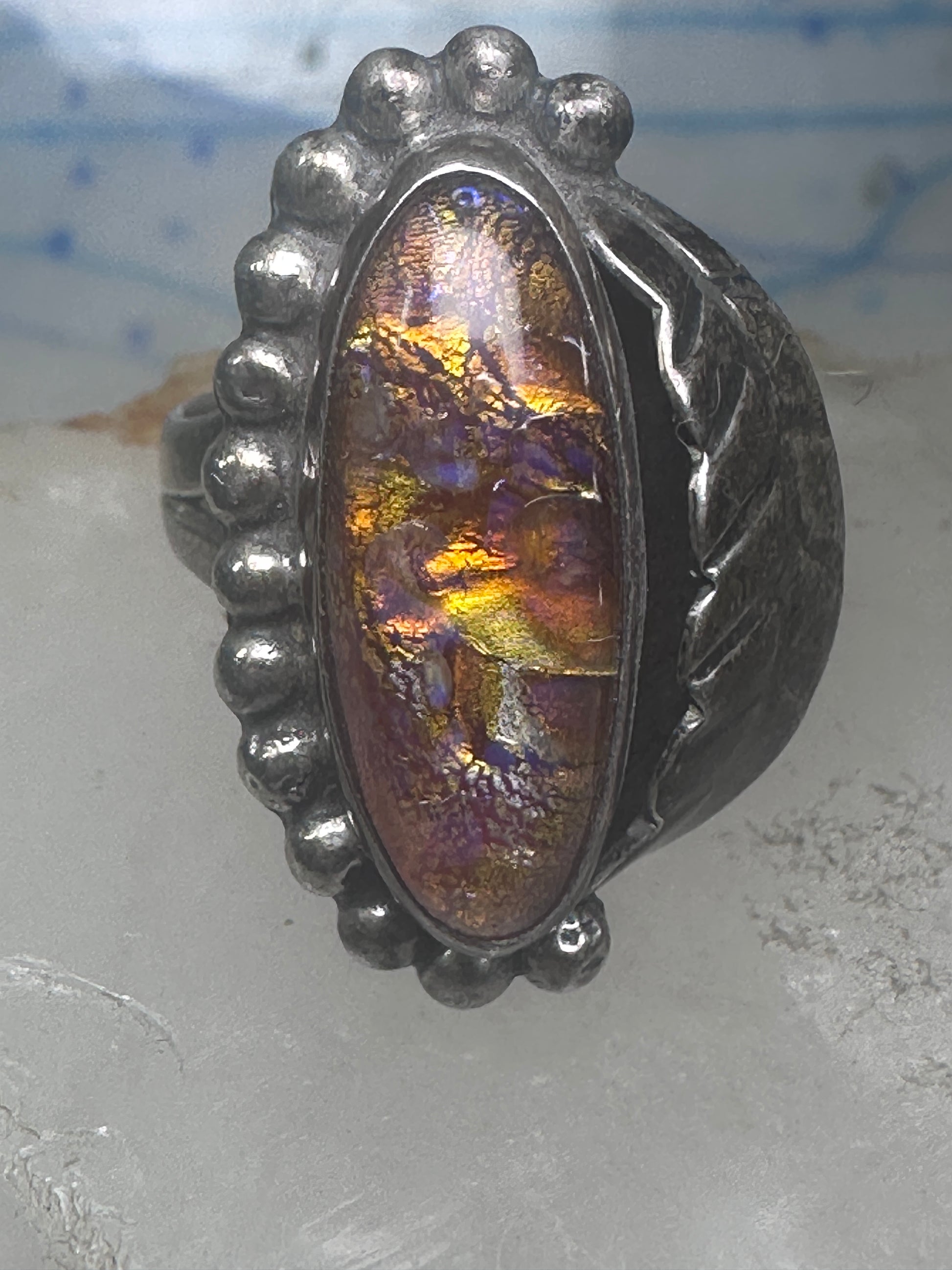 Lab opal ? Navajo leaf feather size 8 sterling silver women