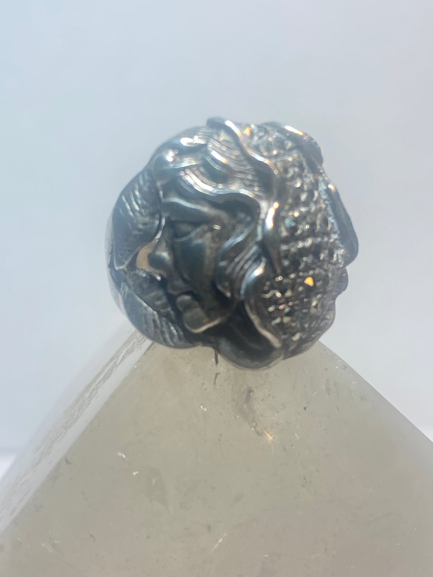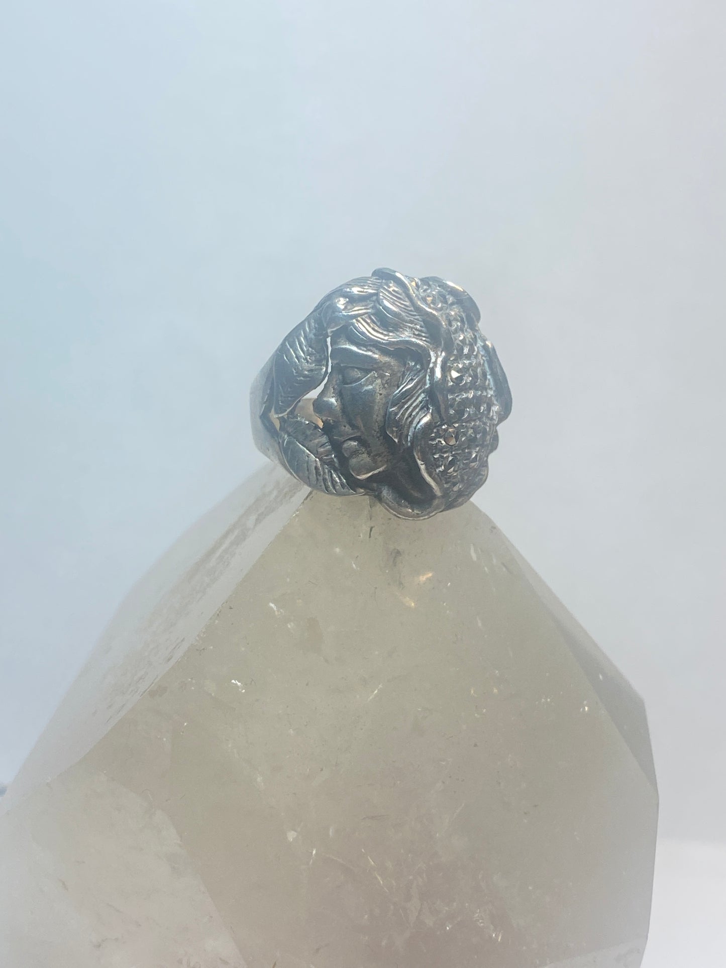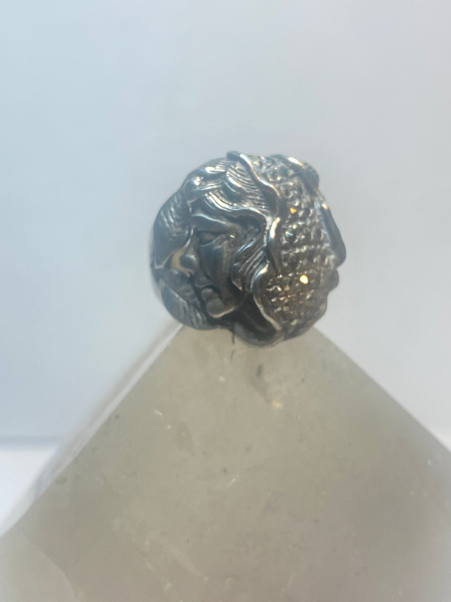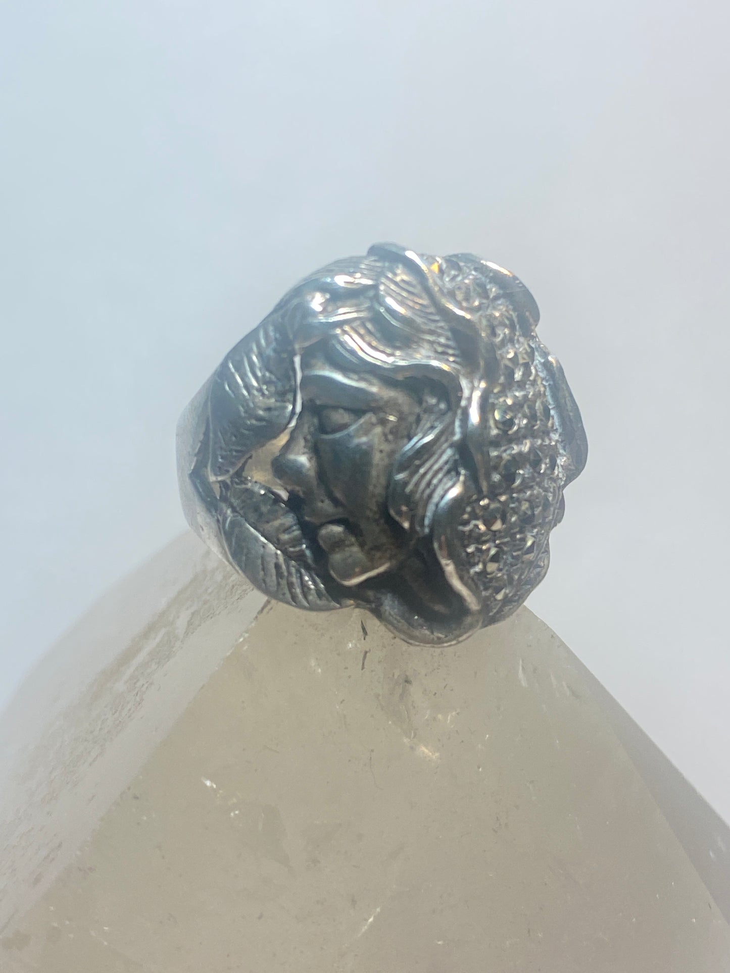 Lady face ring Art Deco marcasites floral band sterling silver women