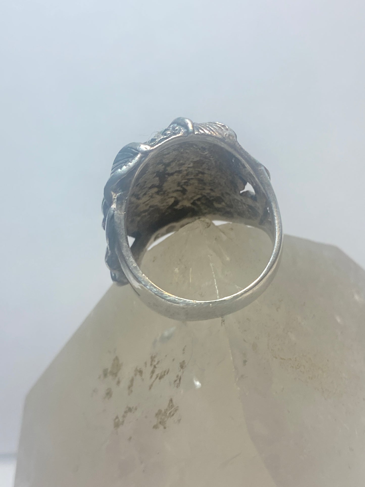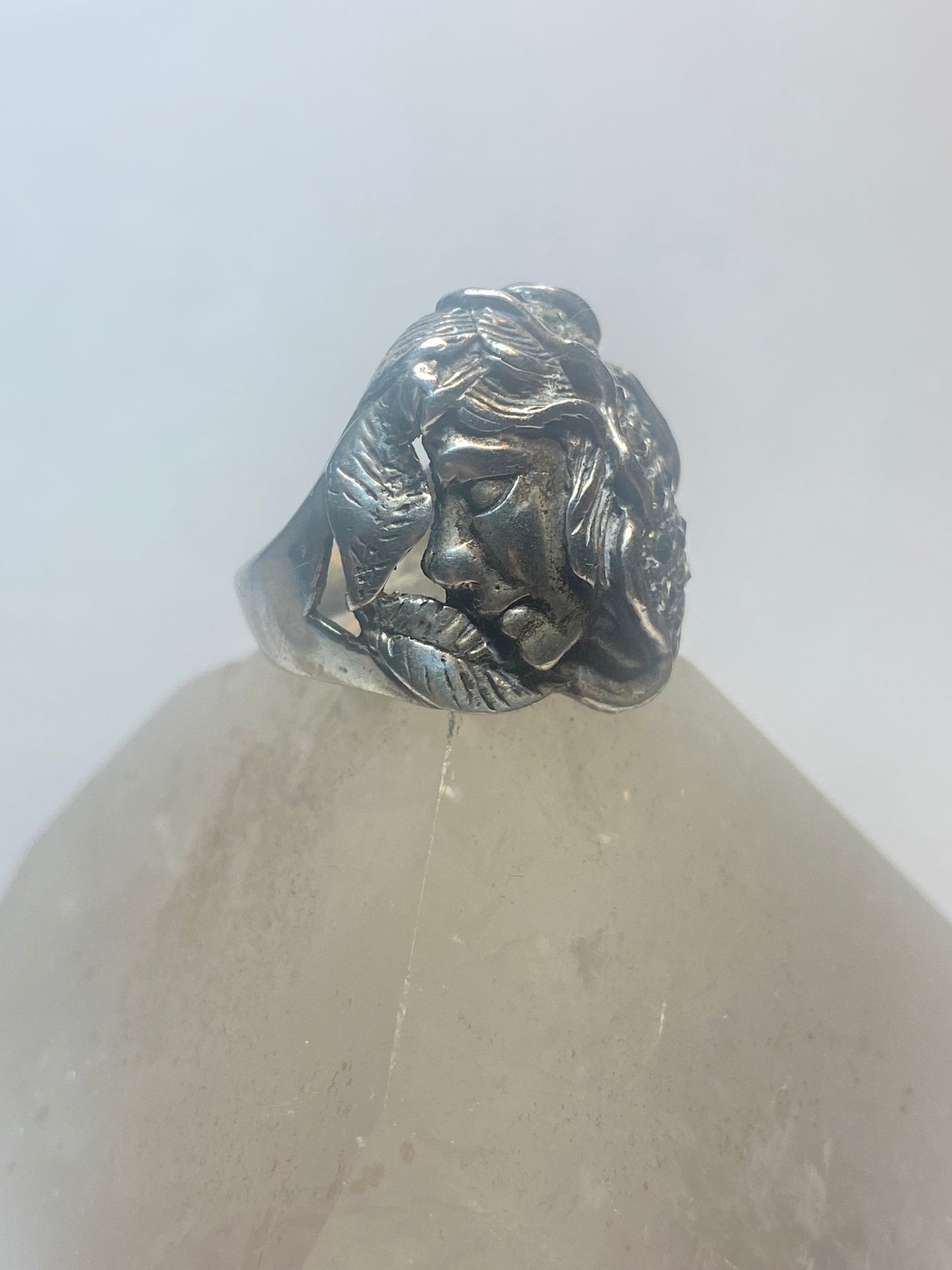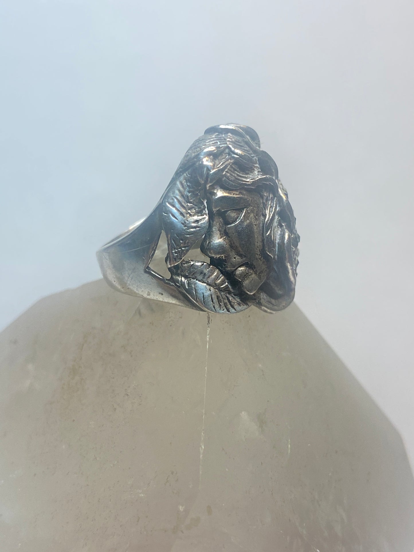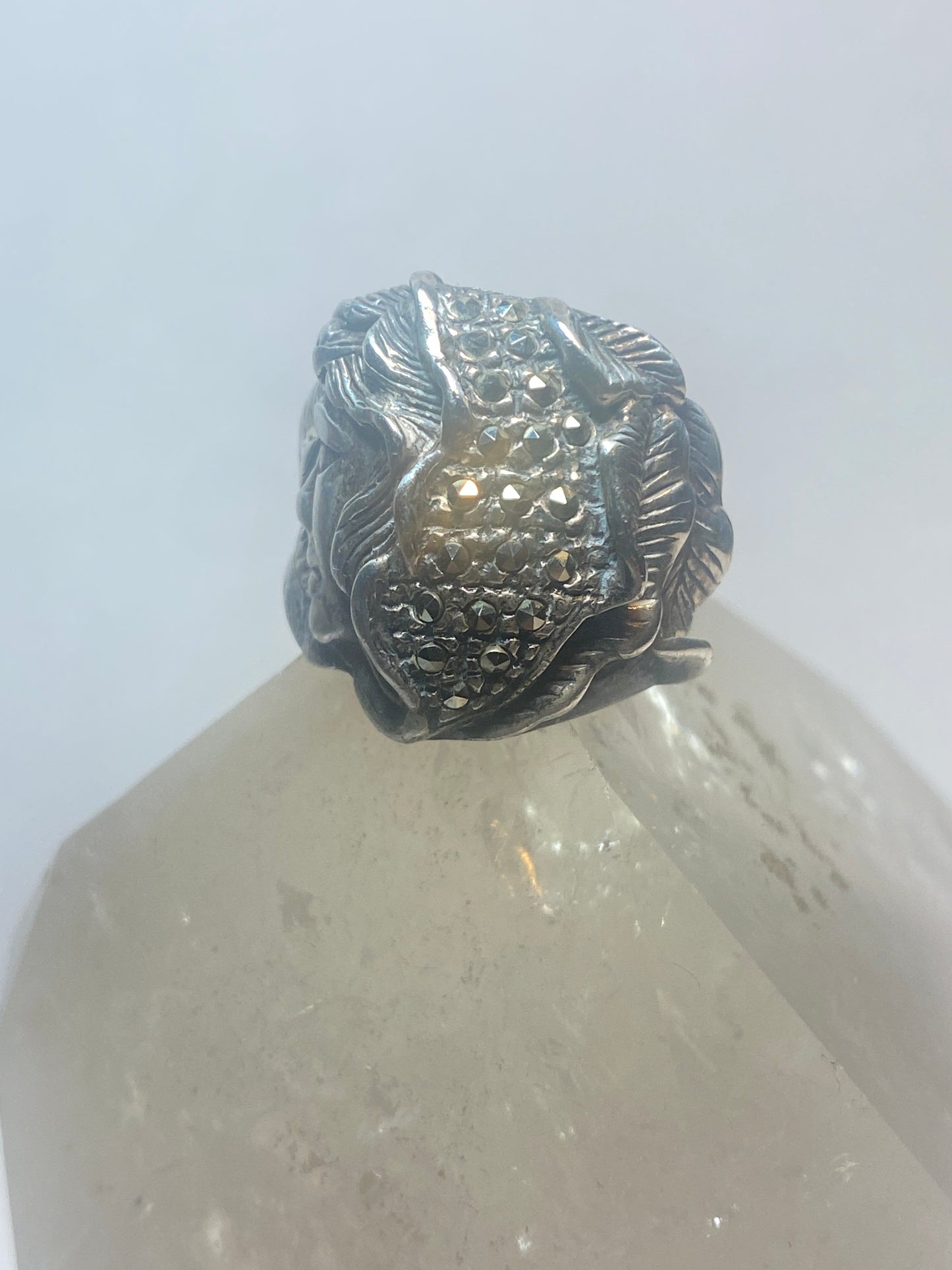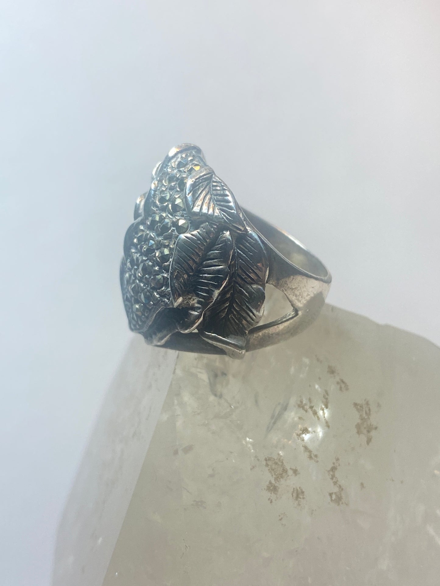 Lady face ring Art Deco marcasites floral band sterling silver women