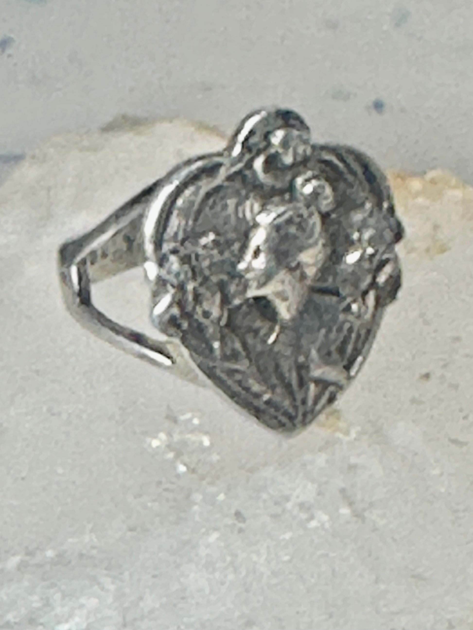 Lady face ring Floral Art Deco figurative size 7 sterling silver women