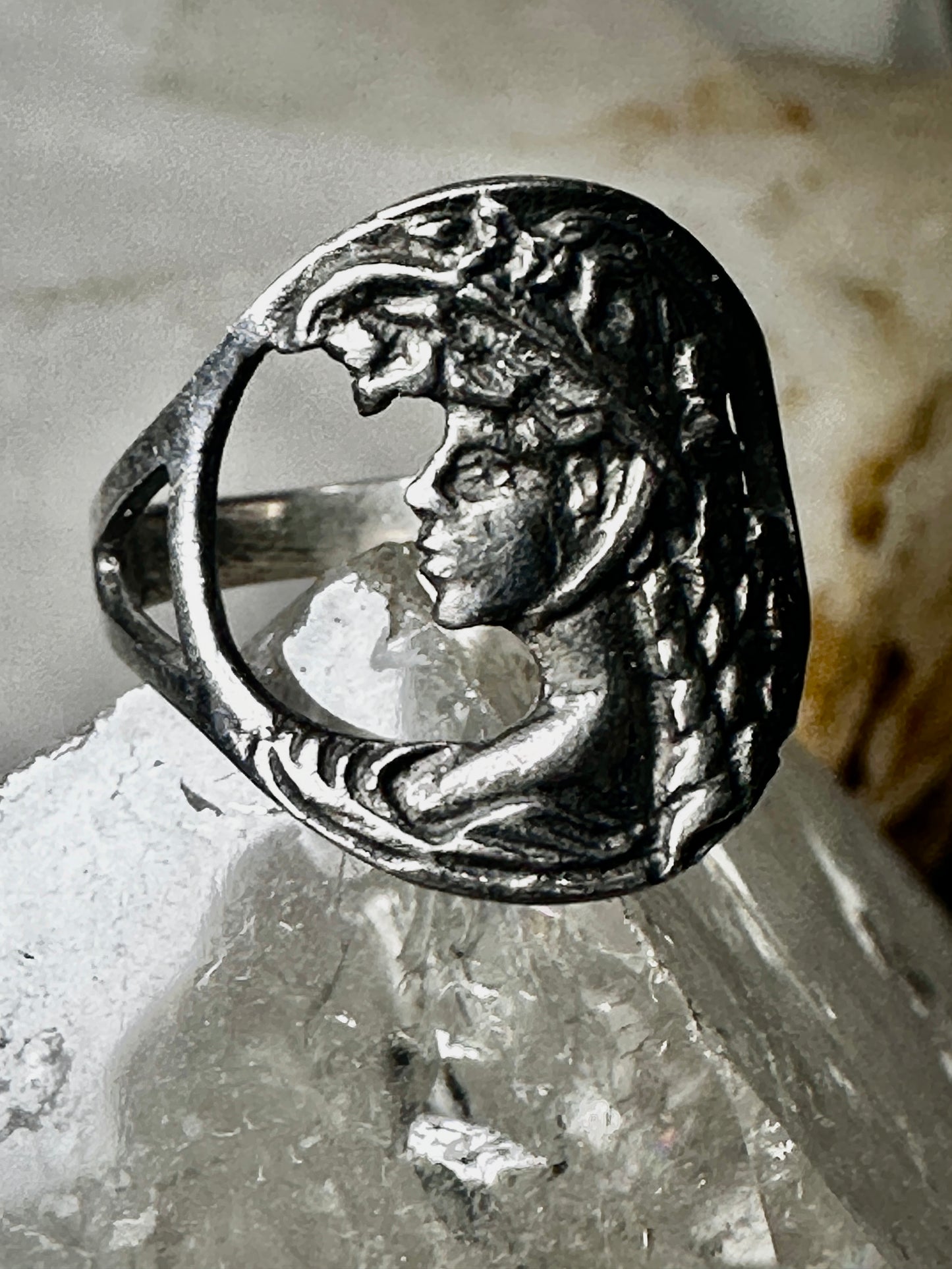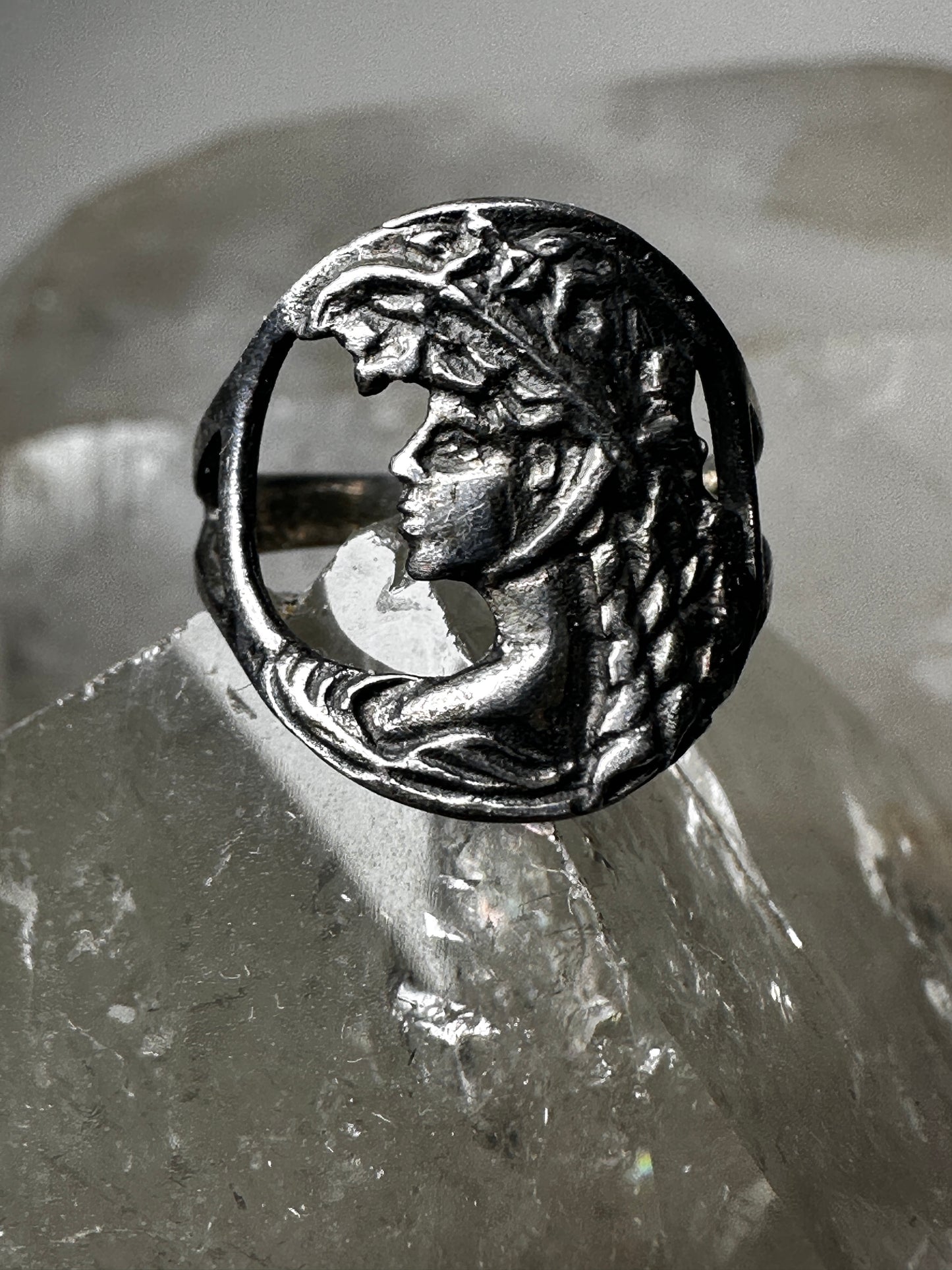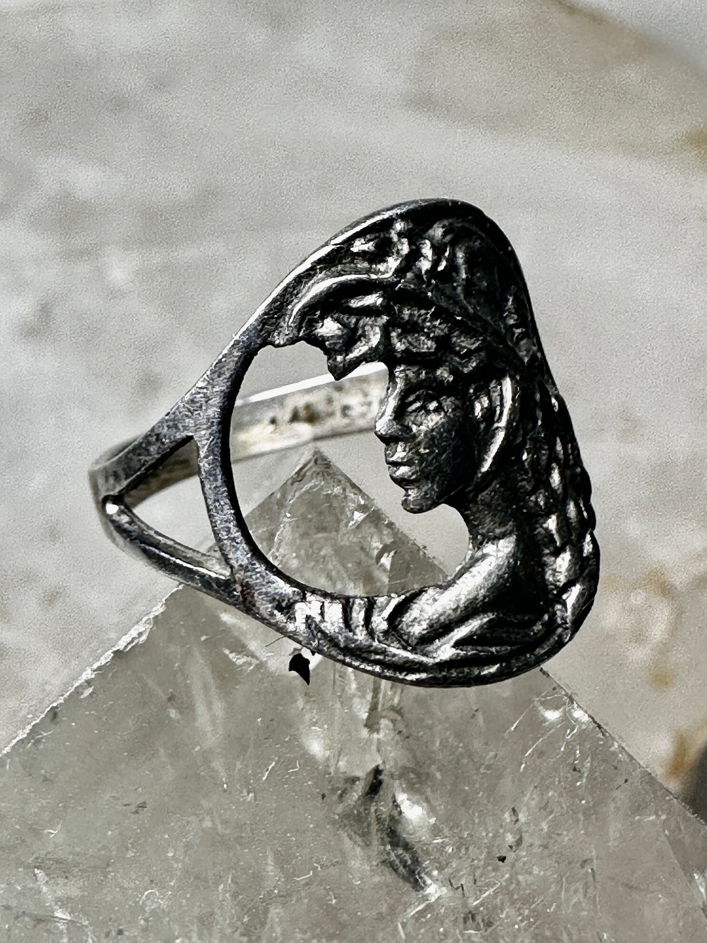 Lady face ring size 4.50 Art Deco sterling silver band women