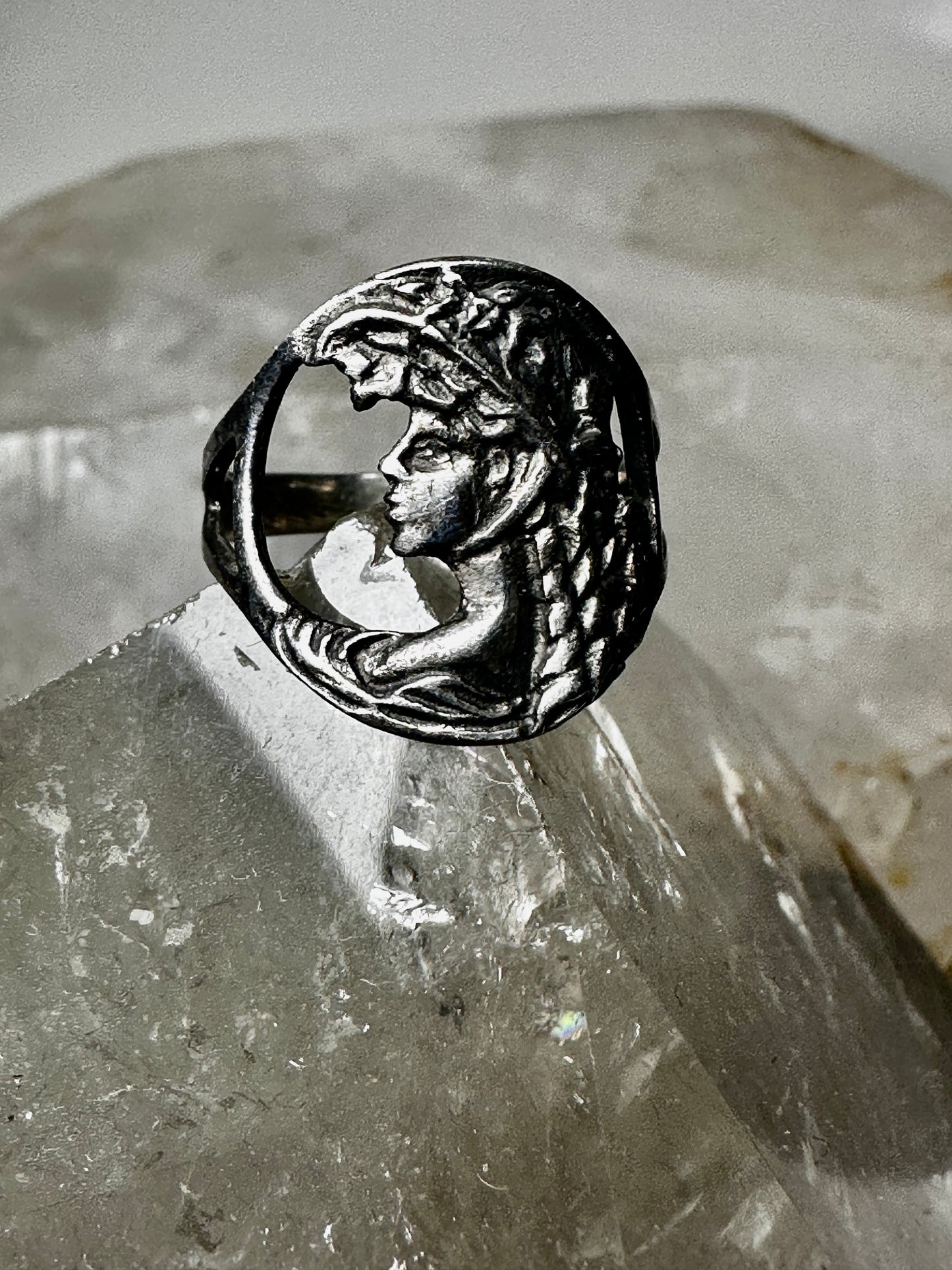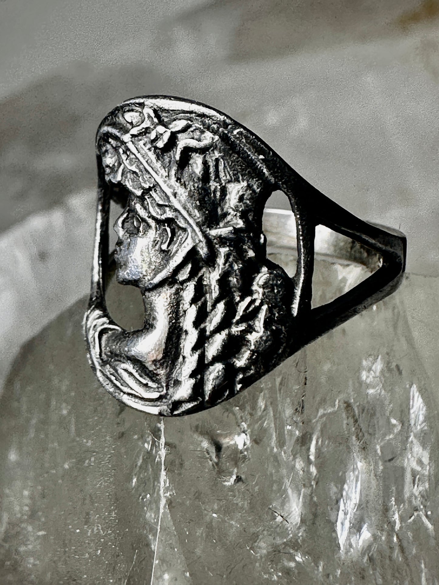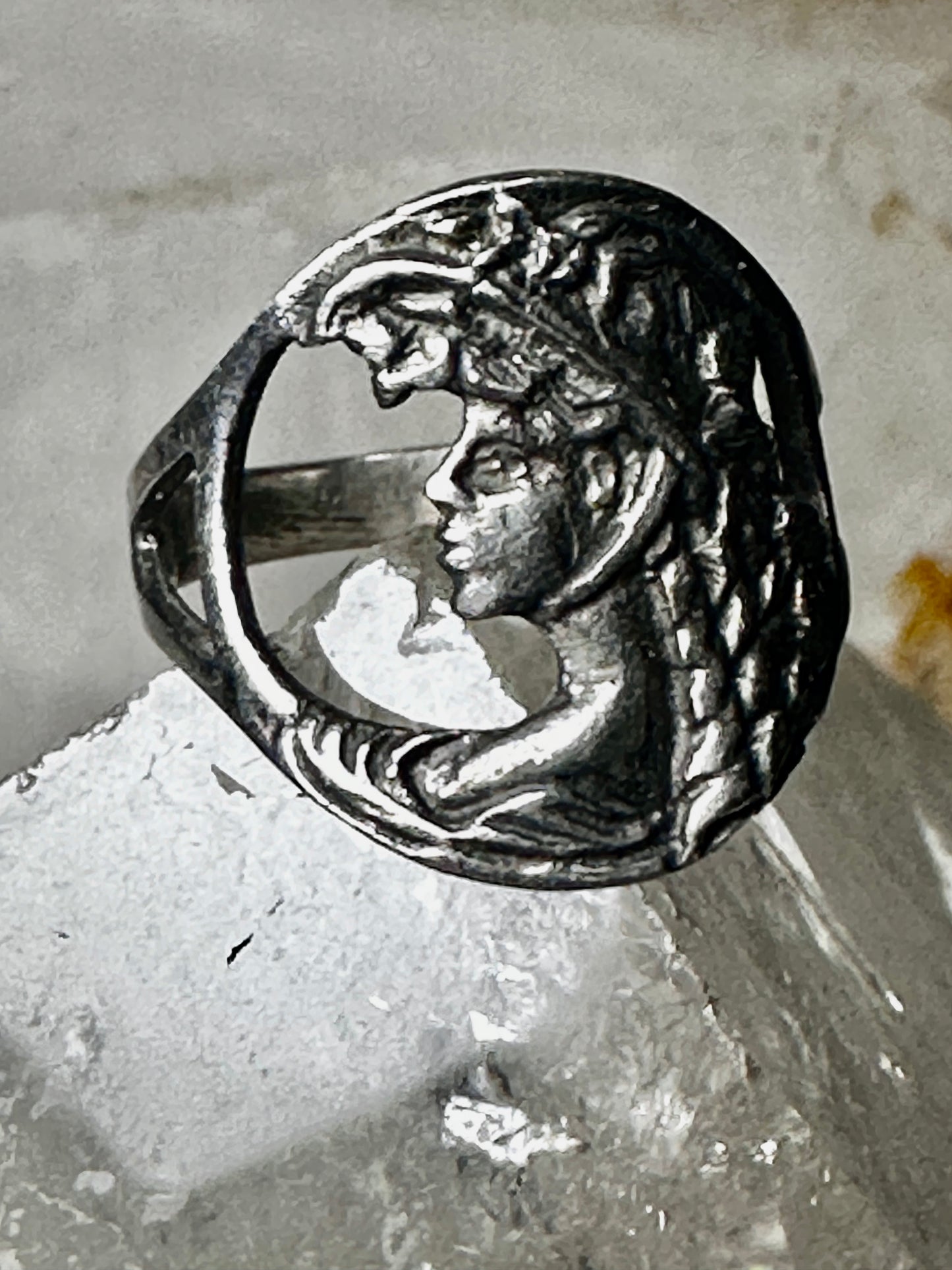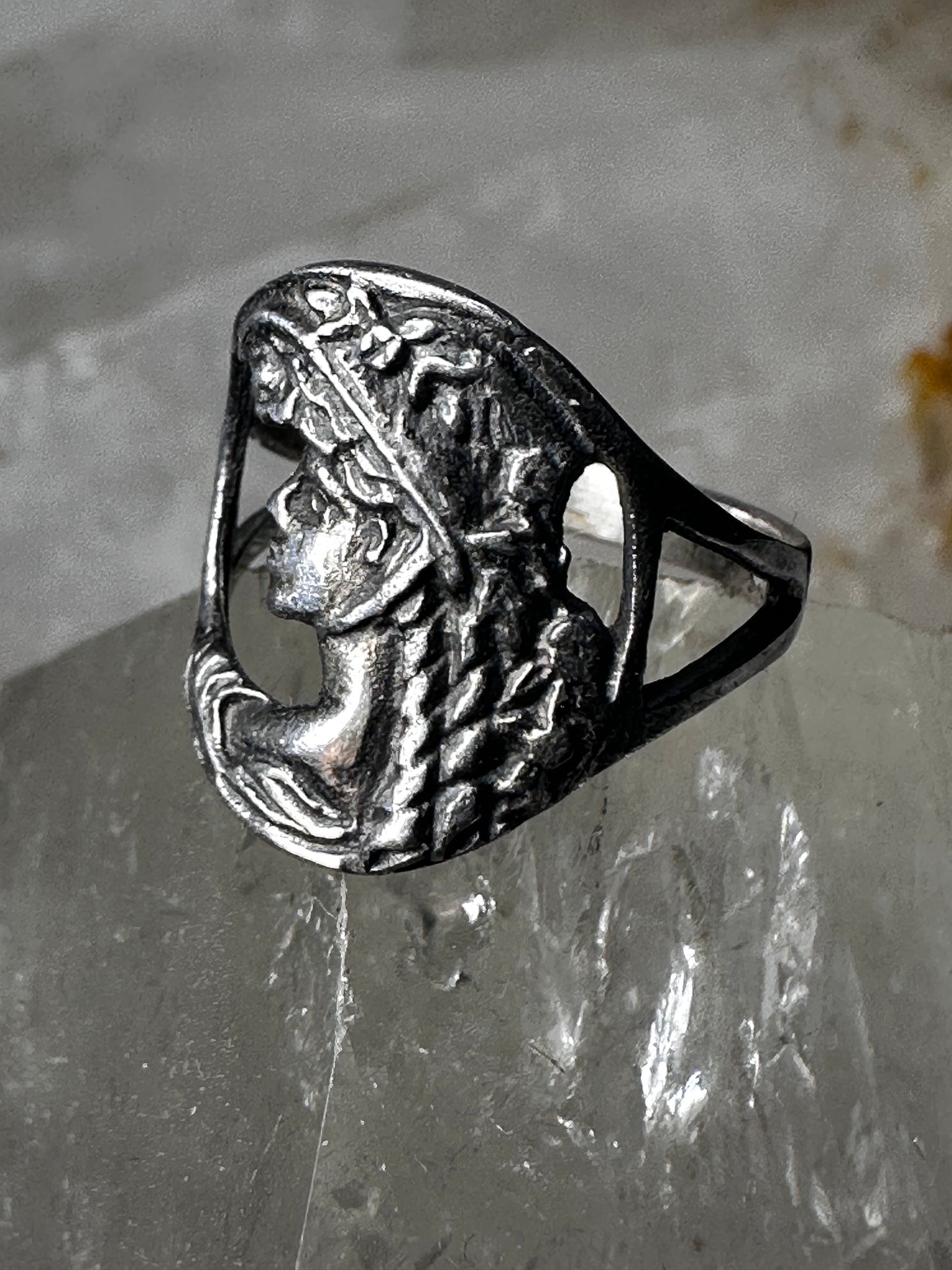 Lady face ring size 4.50 Art Deco sterling silver band women