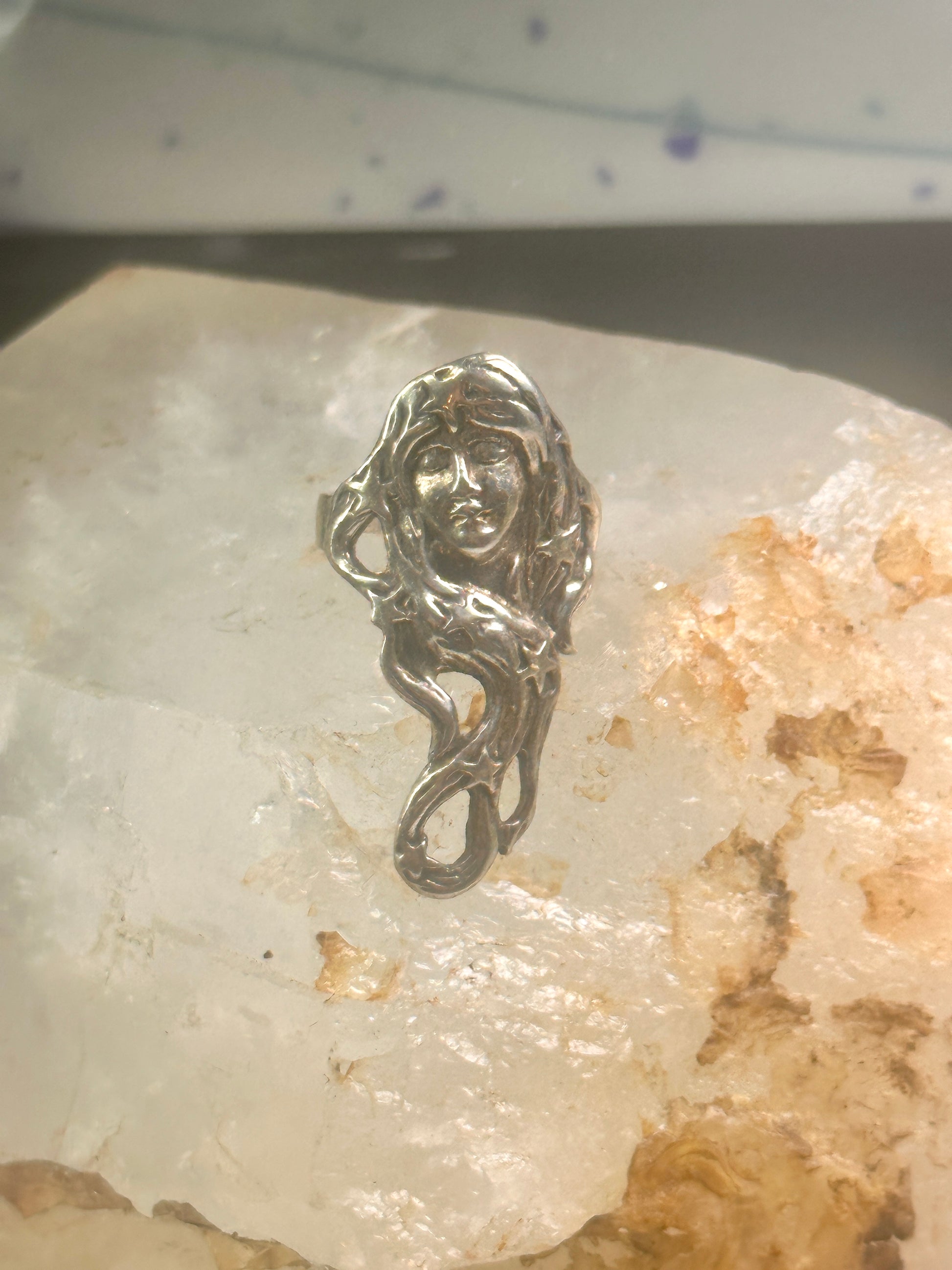 Long Face ring stars band Art Deco celestial size 6.50 sterling silver women