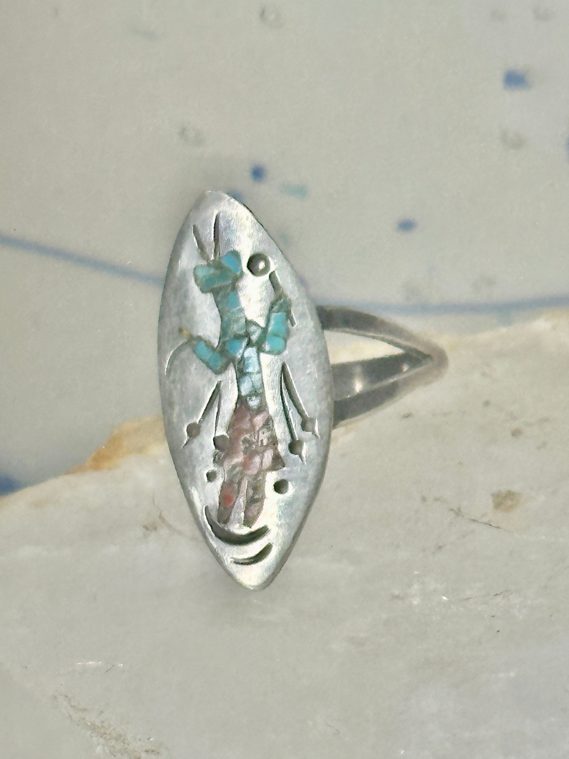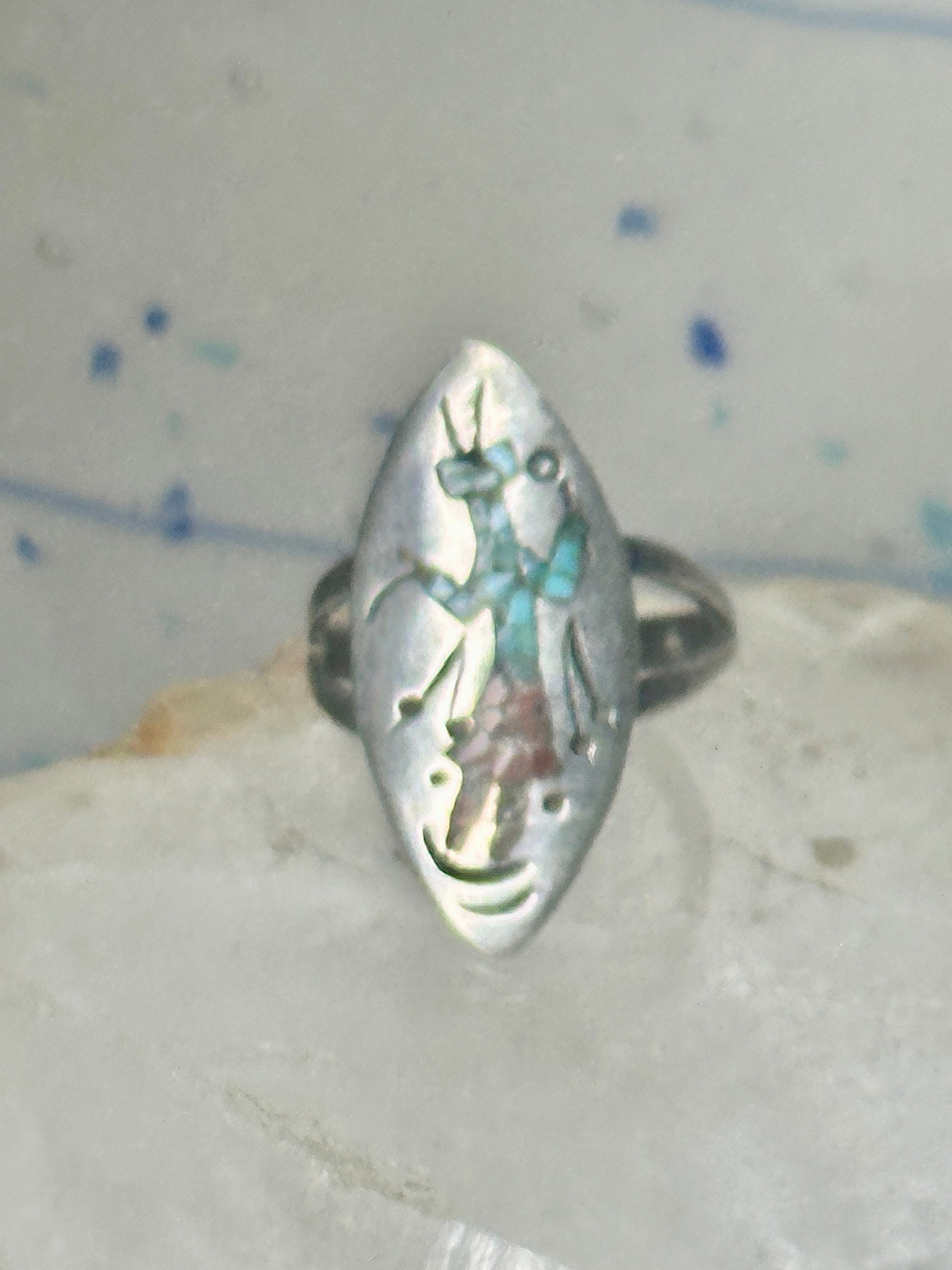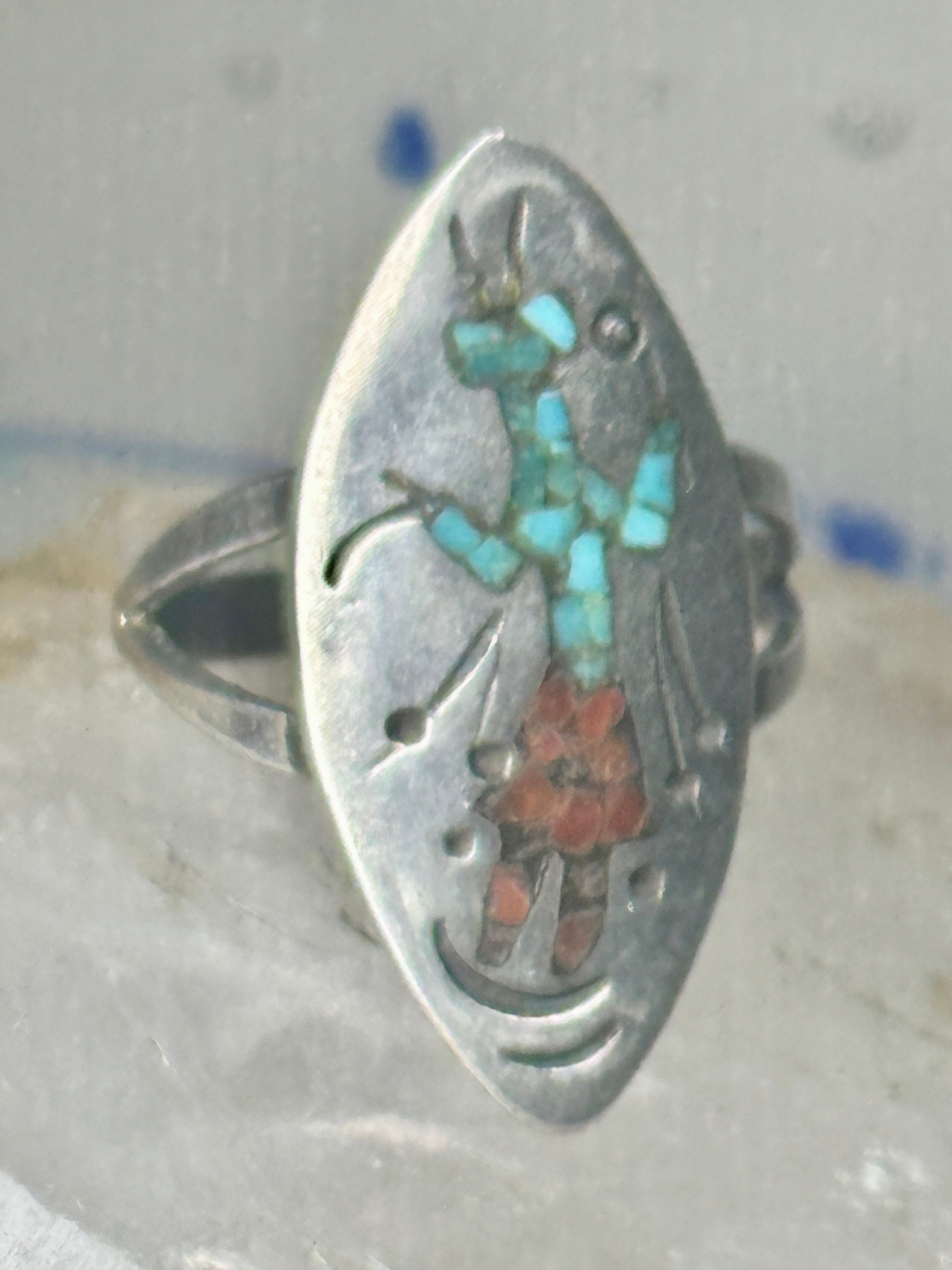 Long Kachina Ring Turquoise coral chip size 8 sterling silver women men