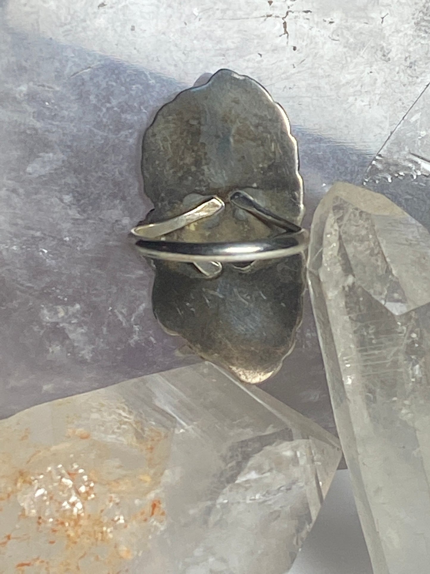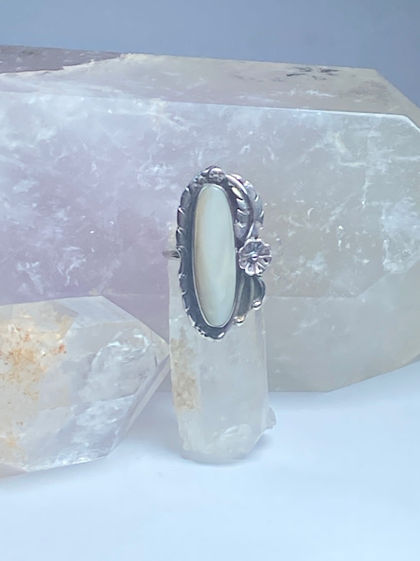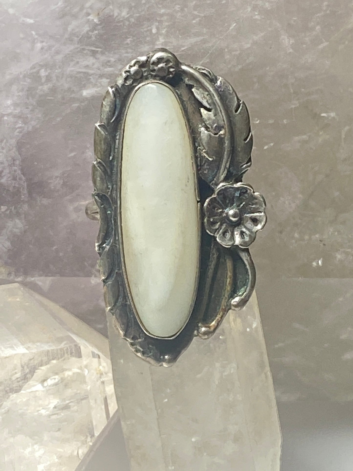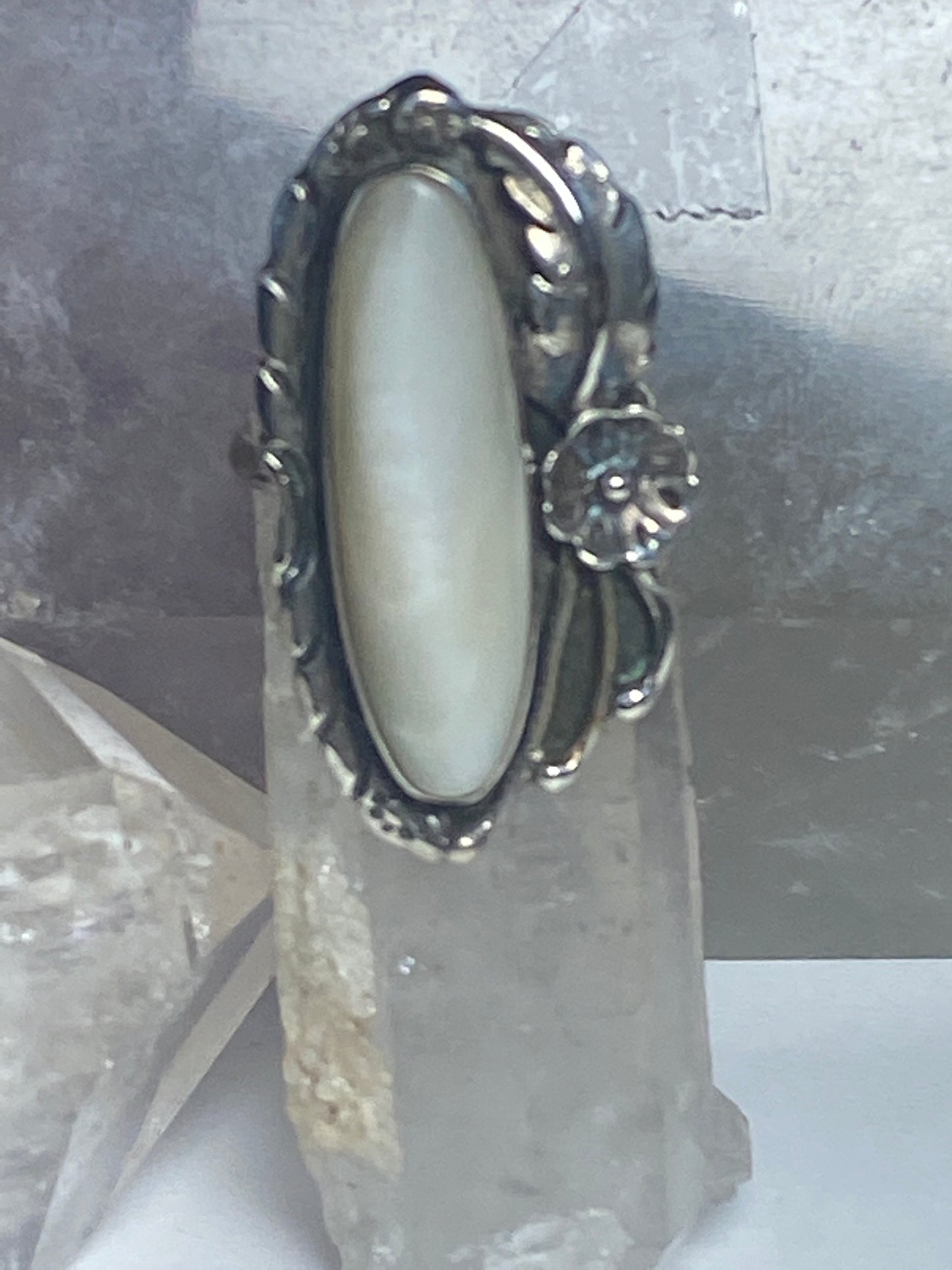 Long Mother of pearl ring Navajo southwest squash blossom sterling silver band women
