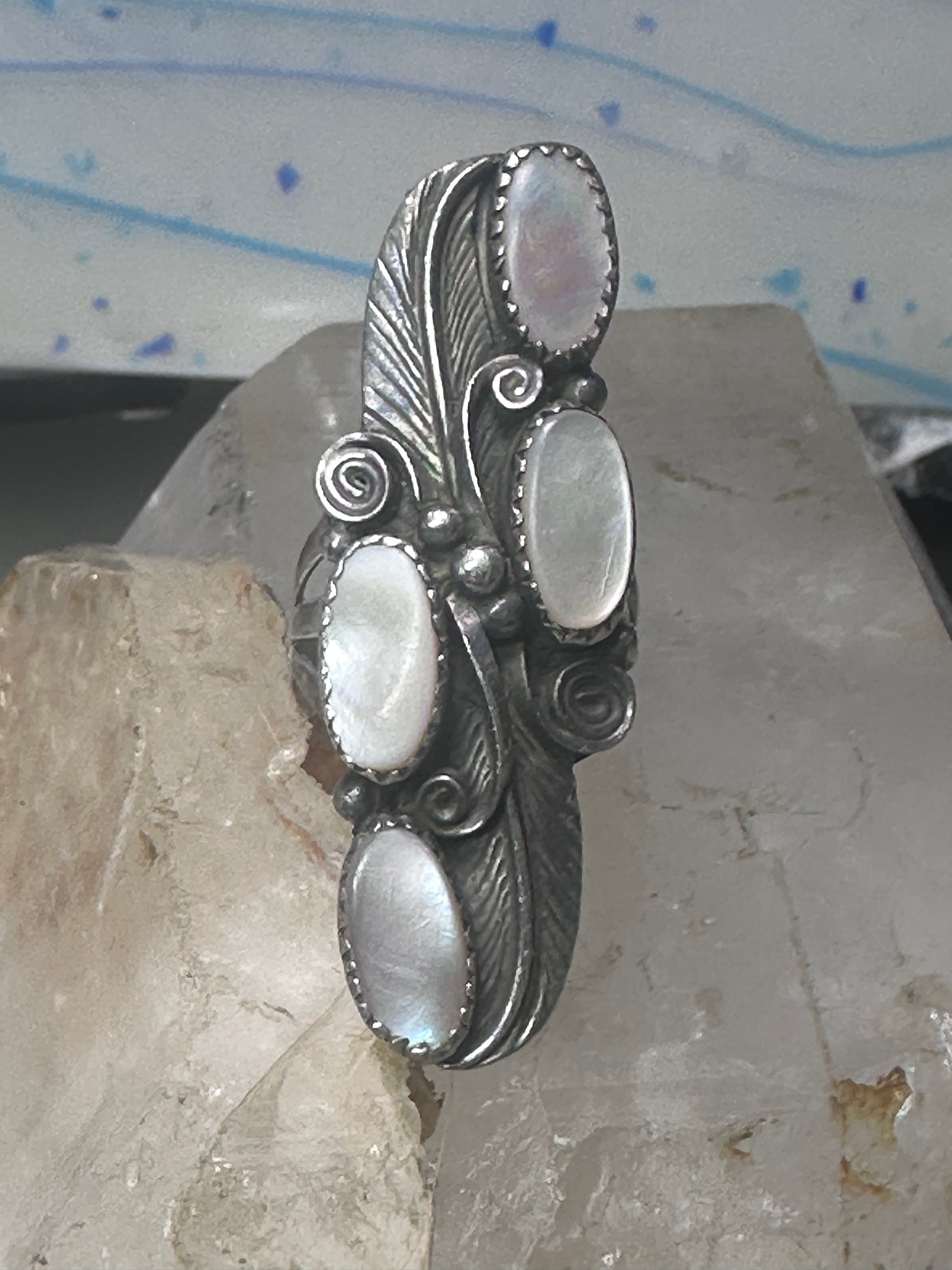 Long Navajo ring mother of pearl MOP leaves size 7.75 sterling silver women