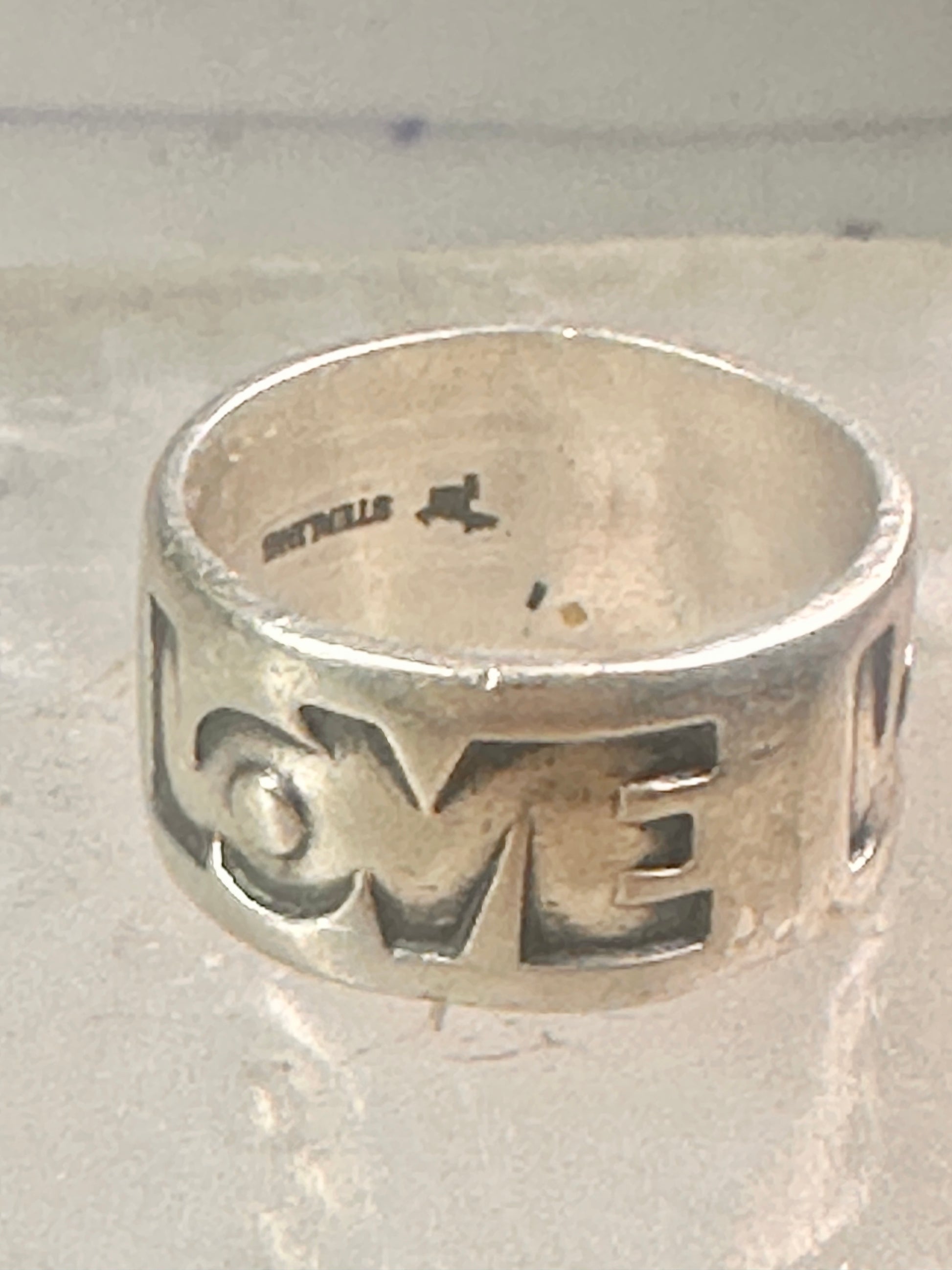Love ring Love band size 6 Bell trading co logo Sterling Silver women girl 1970 peace Hippie