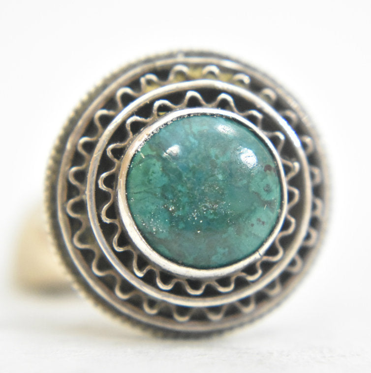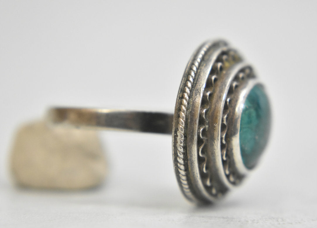 Malachite ring vintage ring women sterling silver Israel Size 6.50