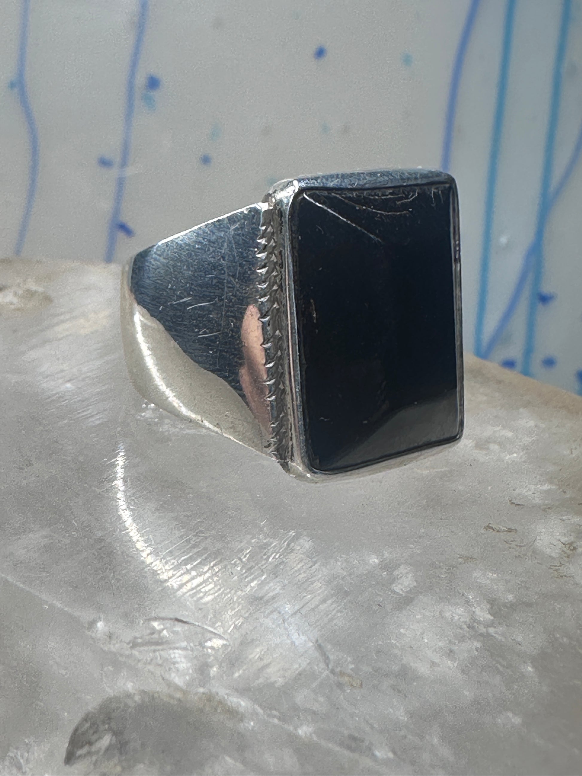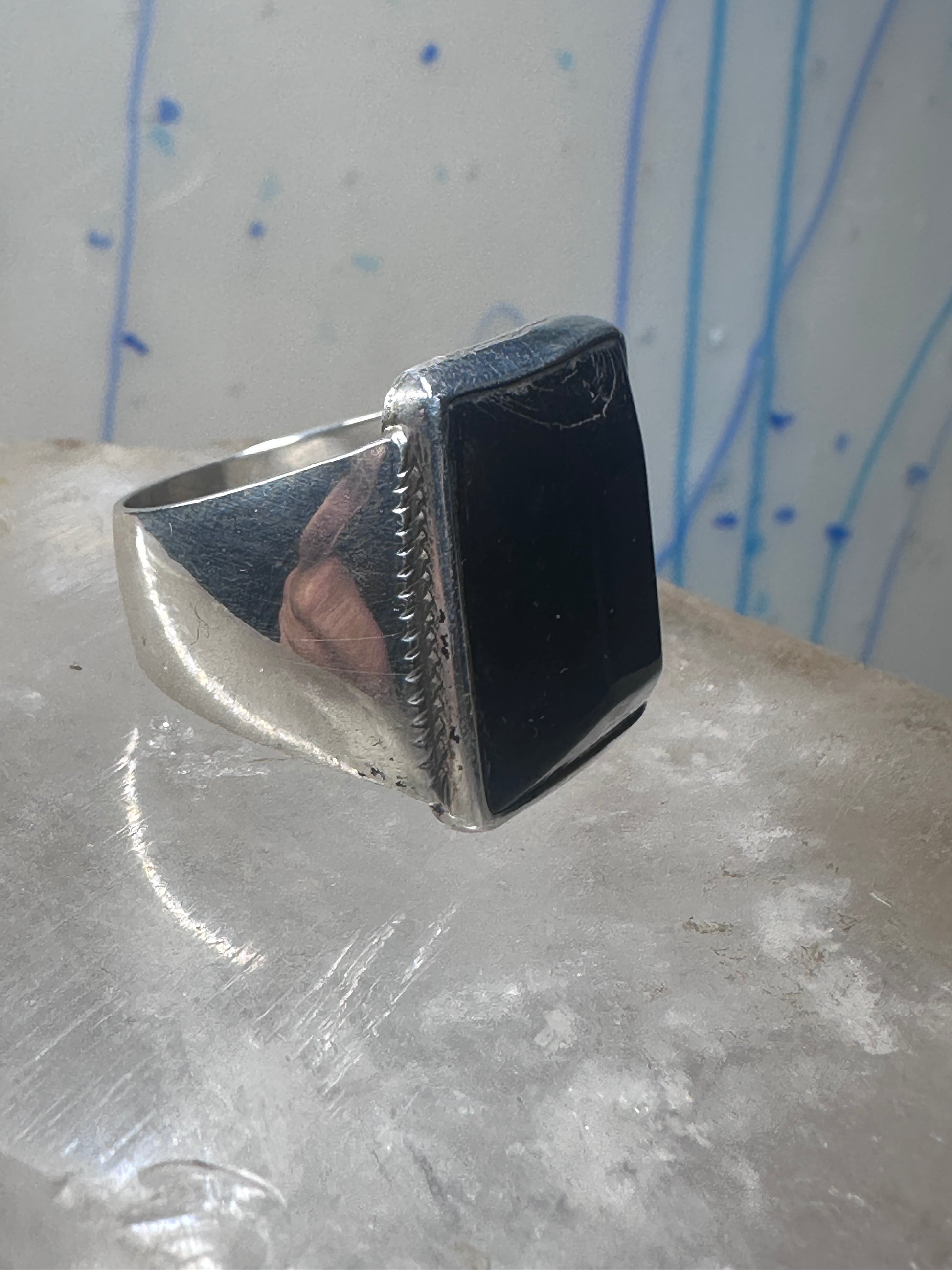 Modern ring black plastic size 10.50 sterling silver women men not a heavy ring see weight