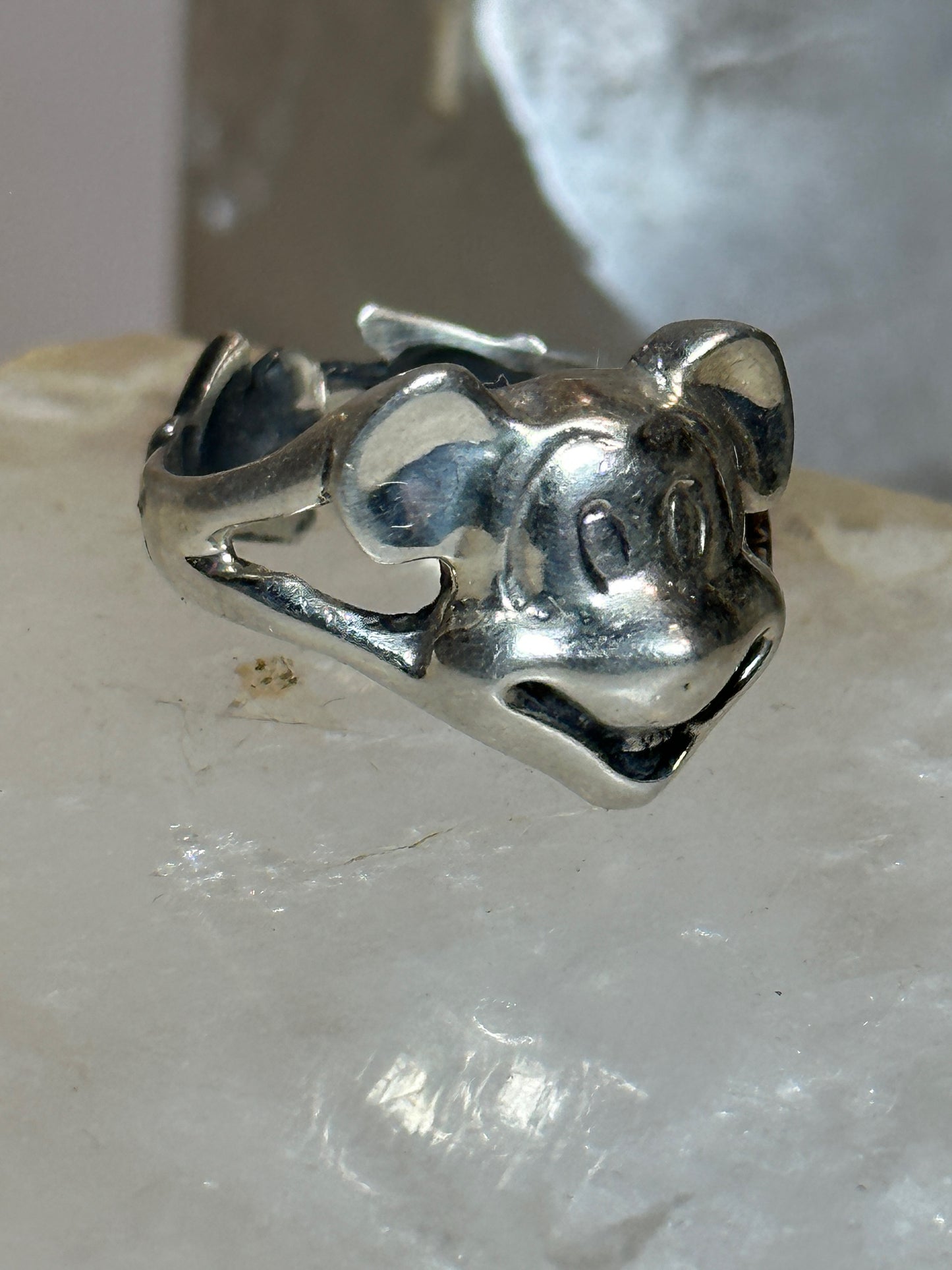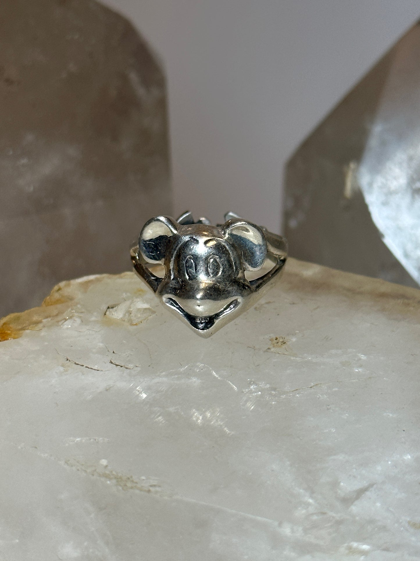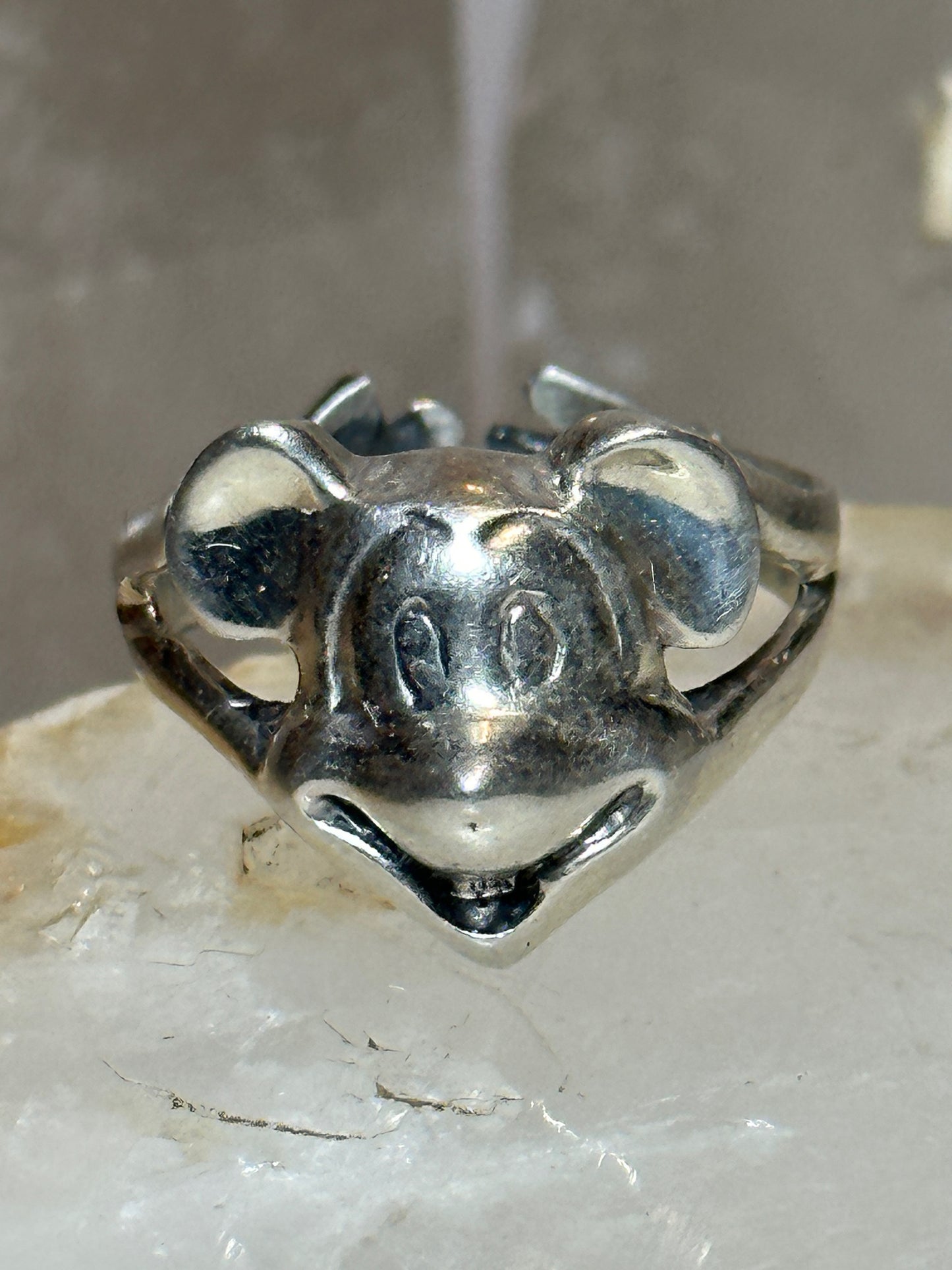 Mouse ring Face hands character size 7.50 band sterling silver women
