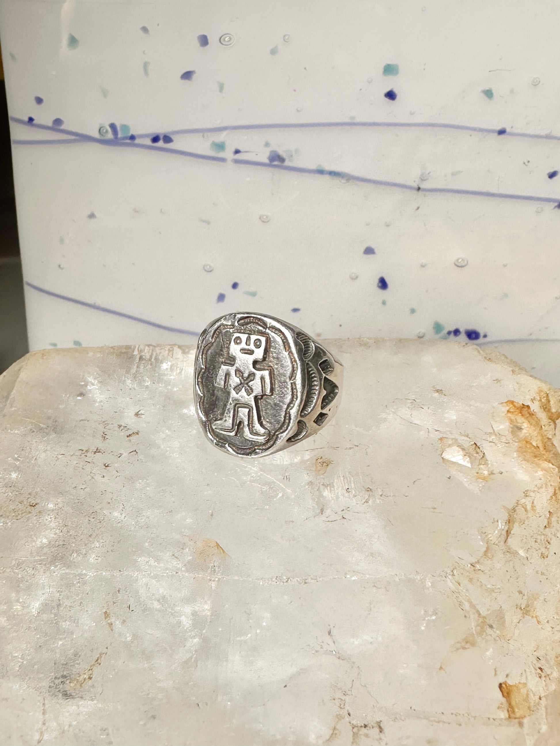 Mudman ring Navajo crossed arrows figurative Kachina size 9 sterling silver women men