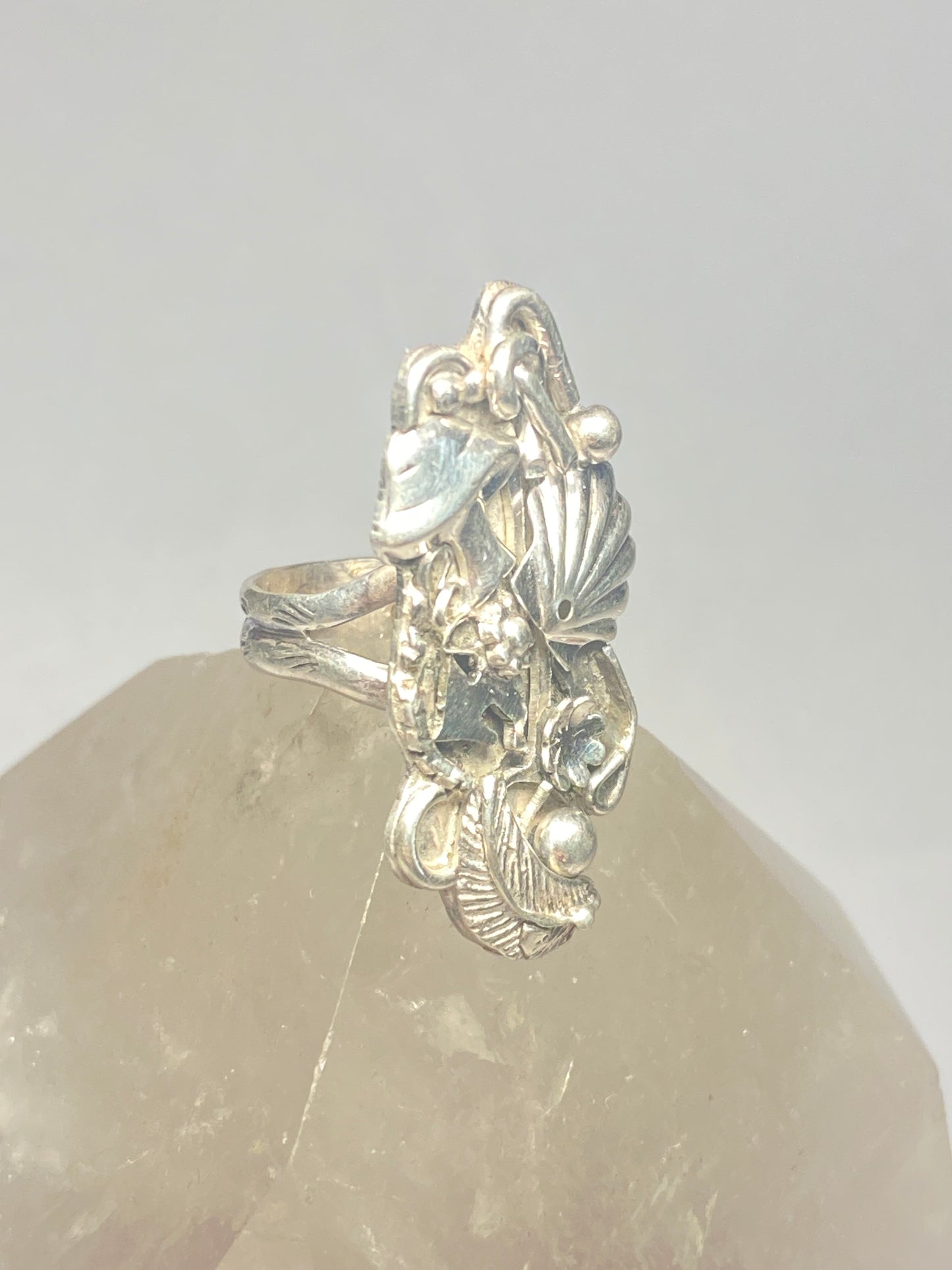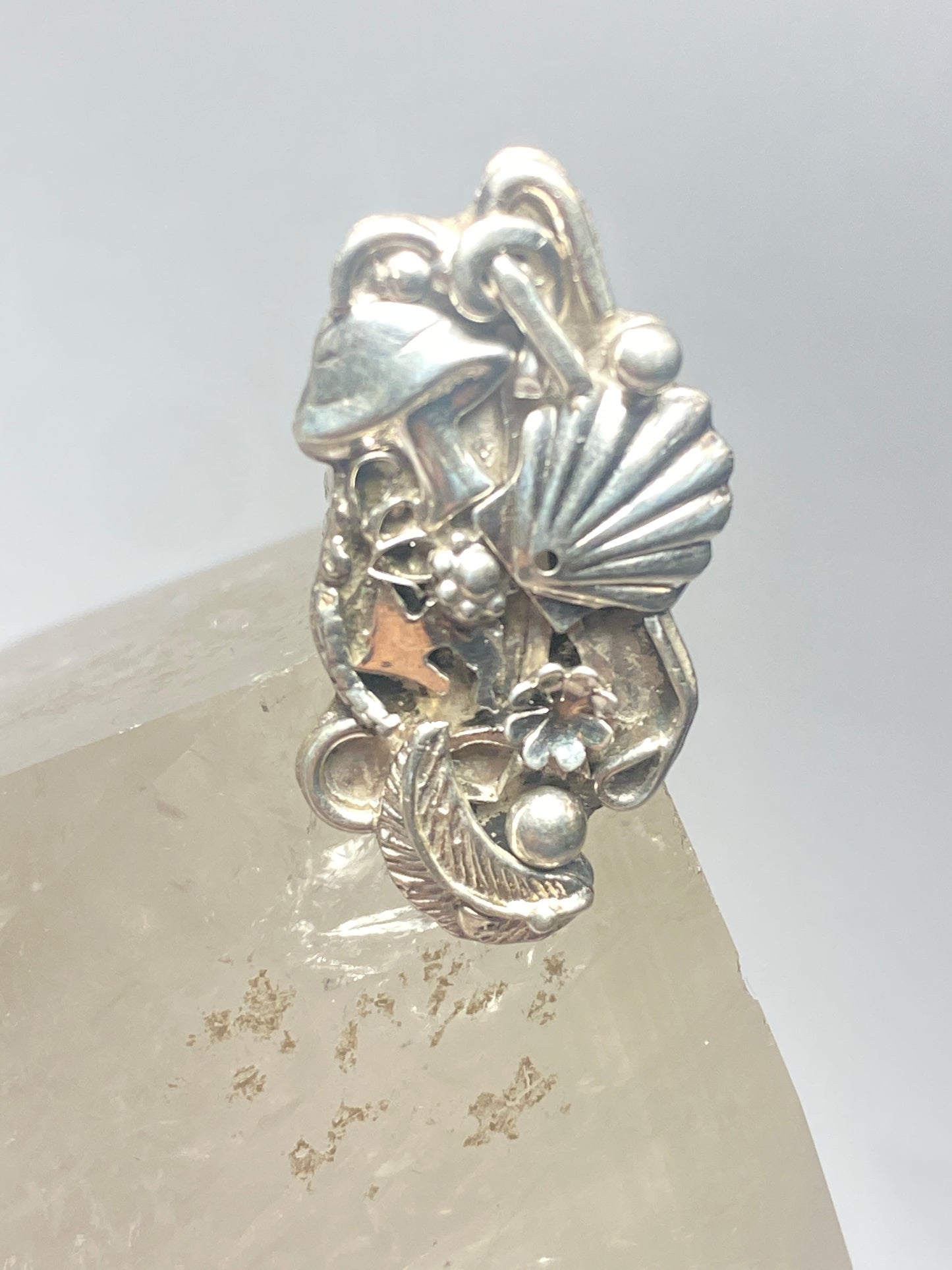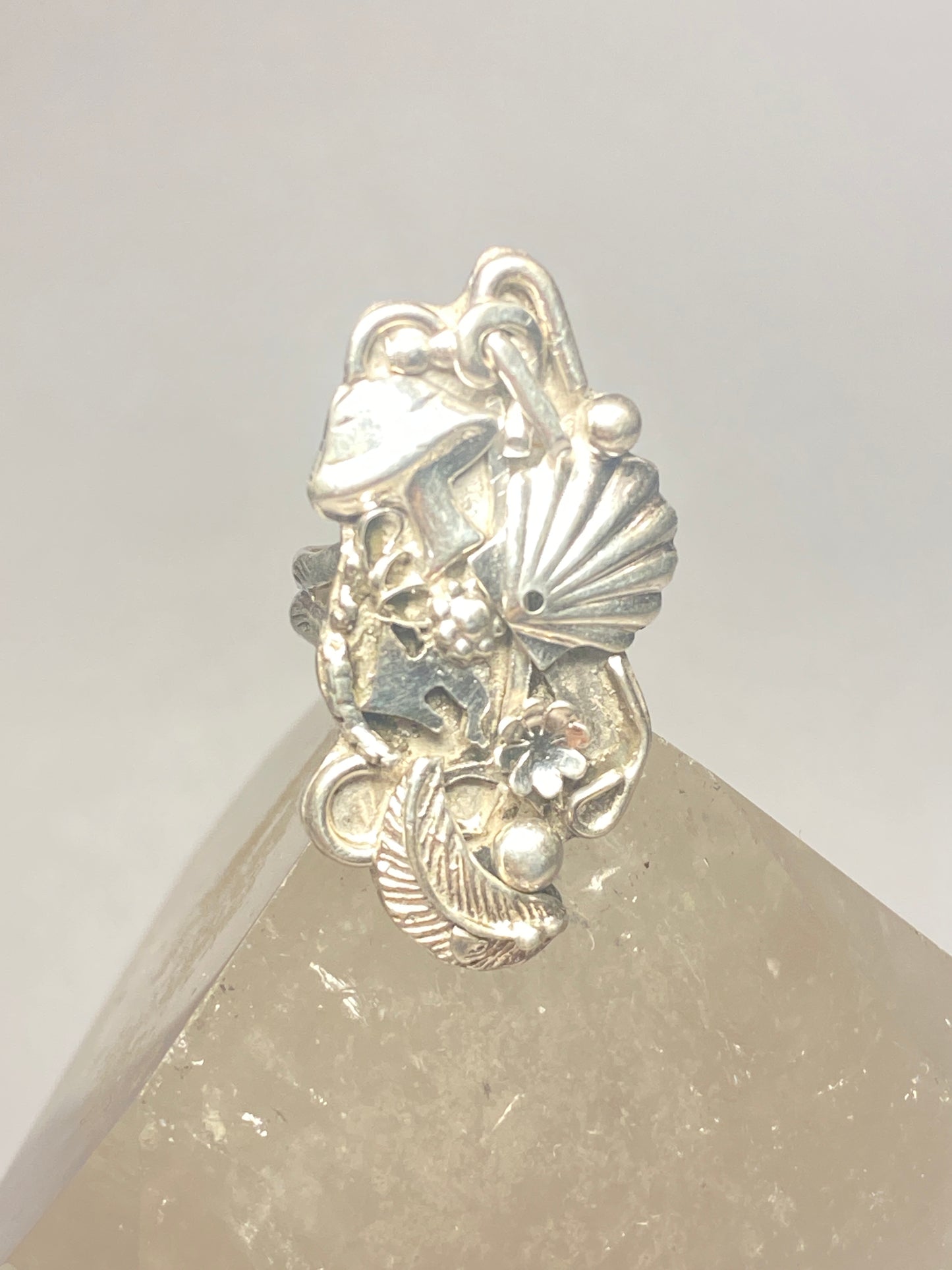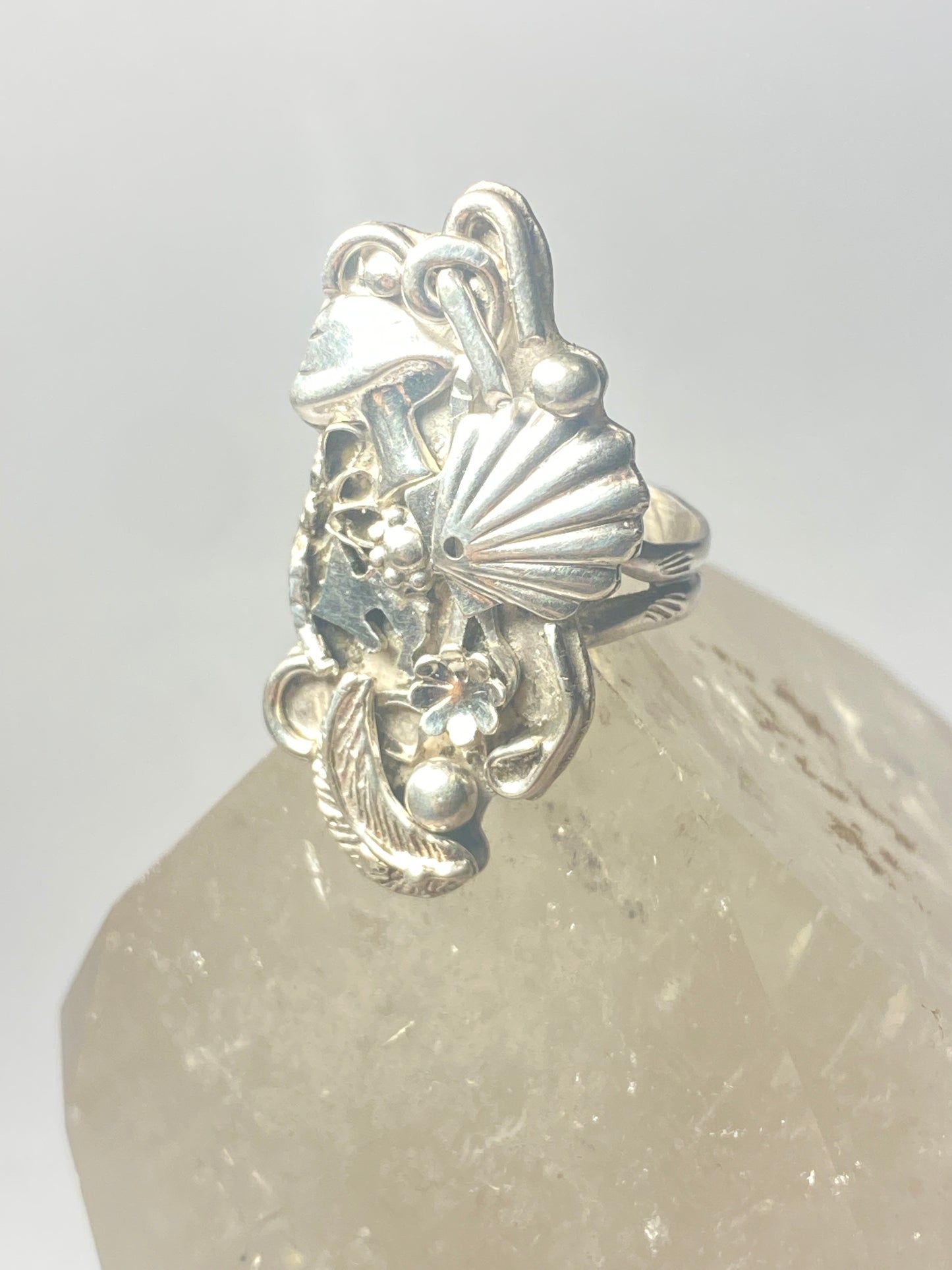 Mushroom ring scallop shell leaves southwest floral band pinky sterling silver women girls
