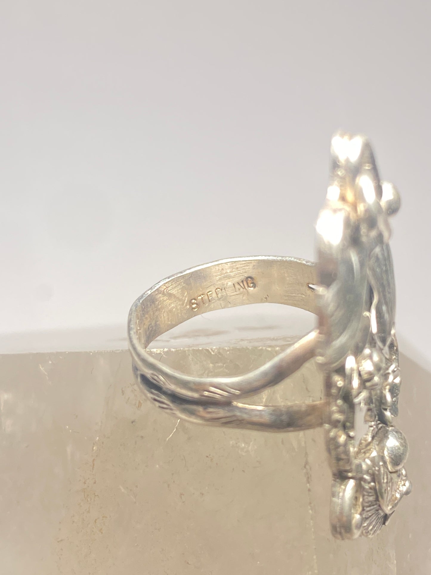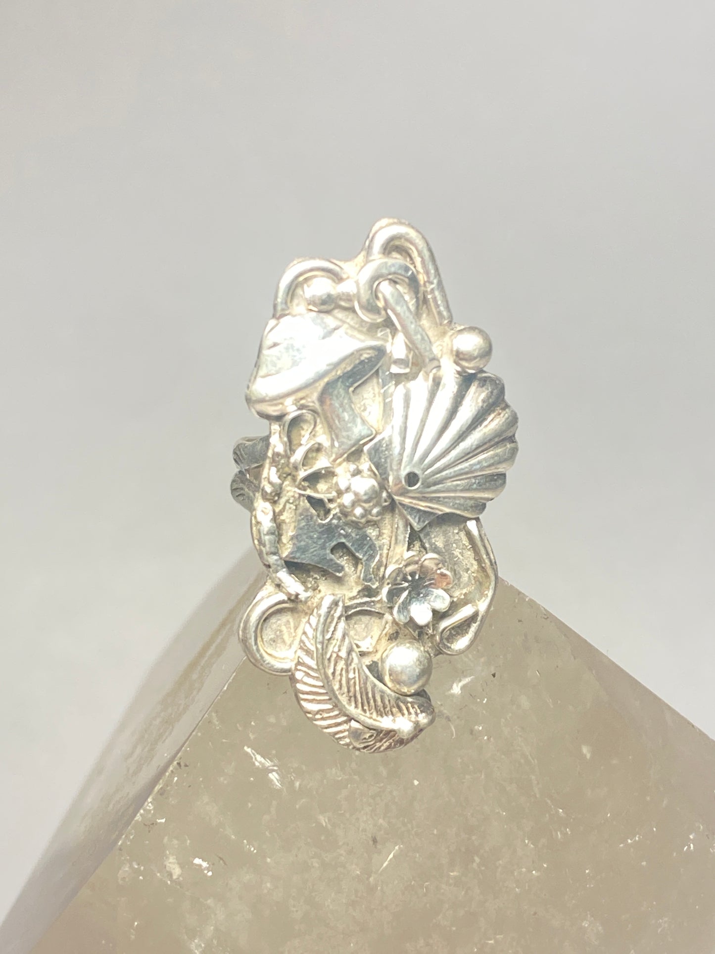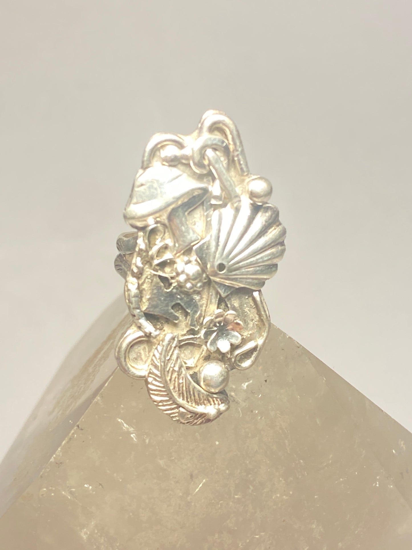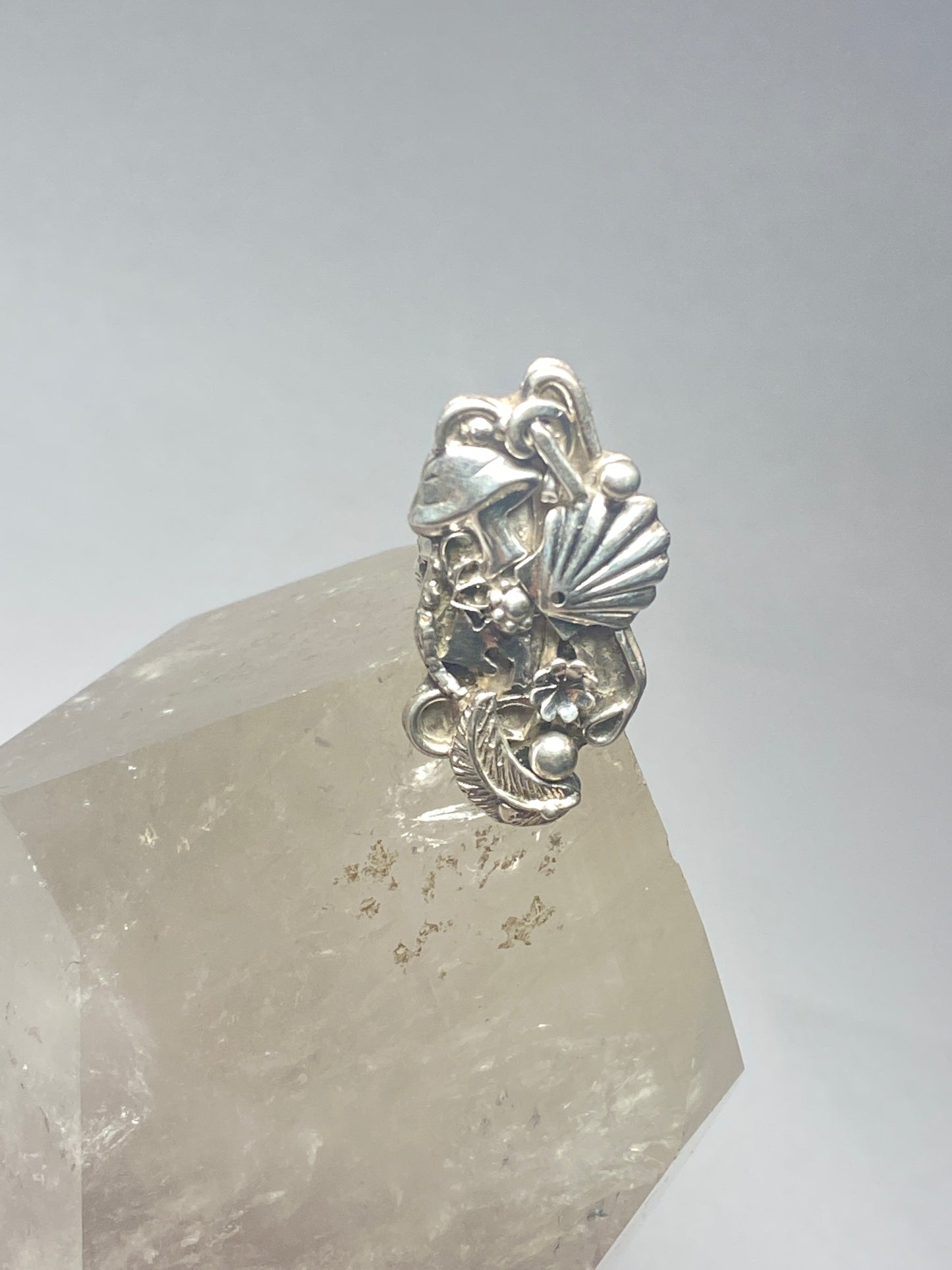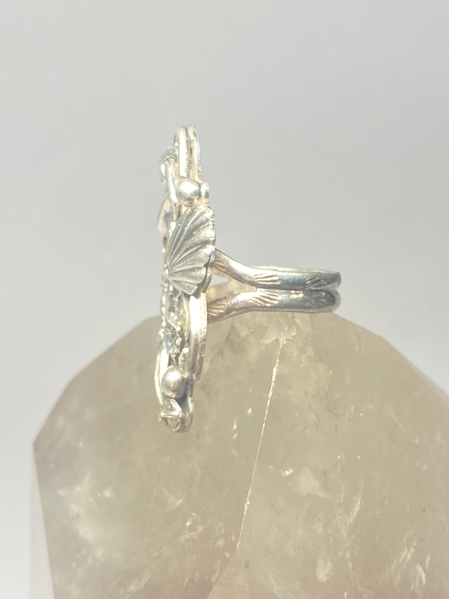 Mushroom ring scallop shell leaves southwest floral band pinky sterling silver women girls