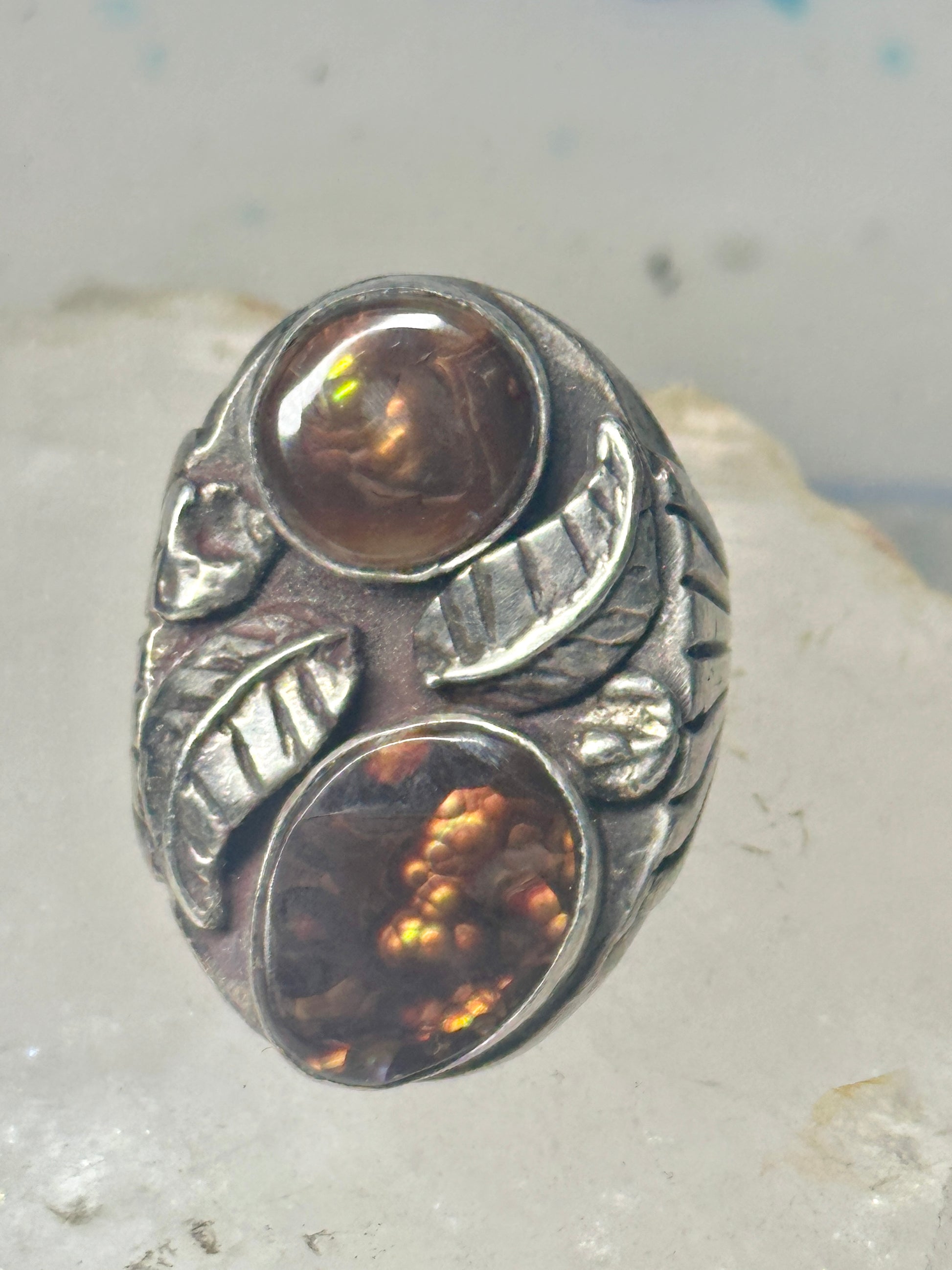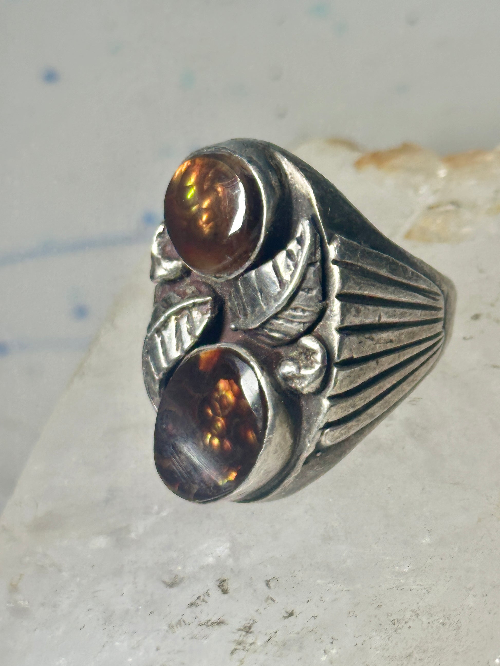 Navajo Fire Agate size 9 leaves sterling silver women men