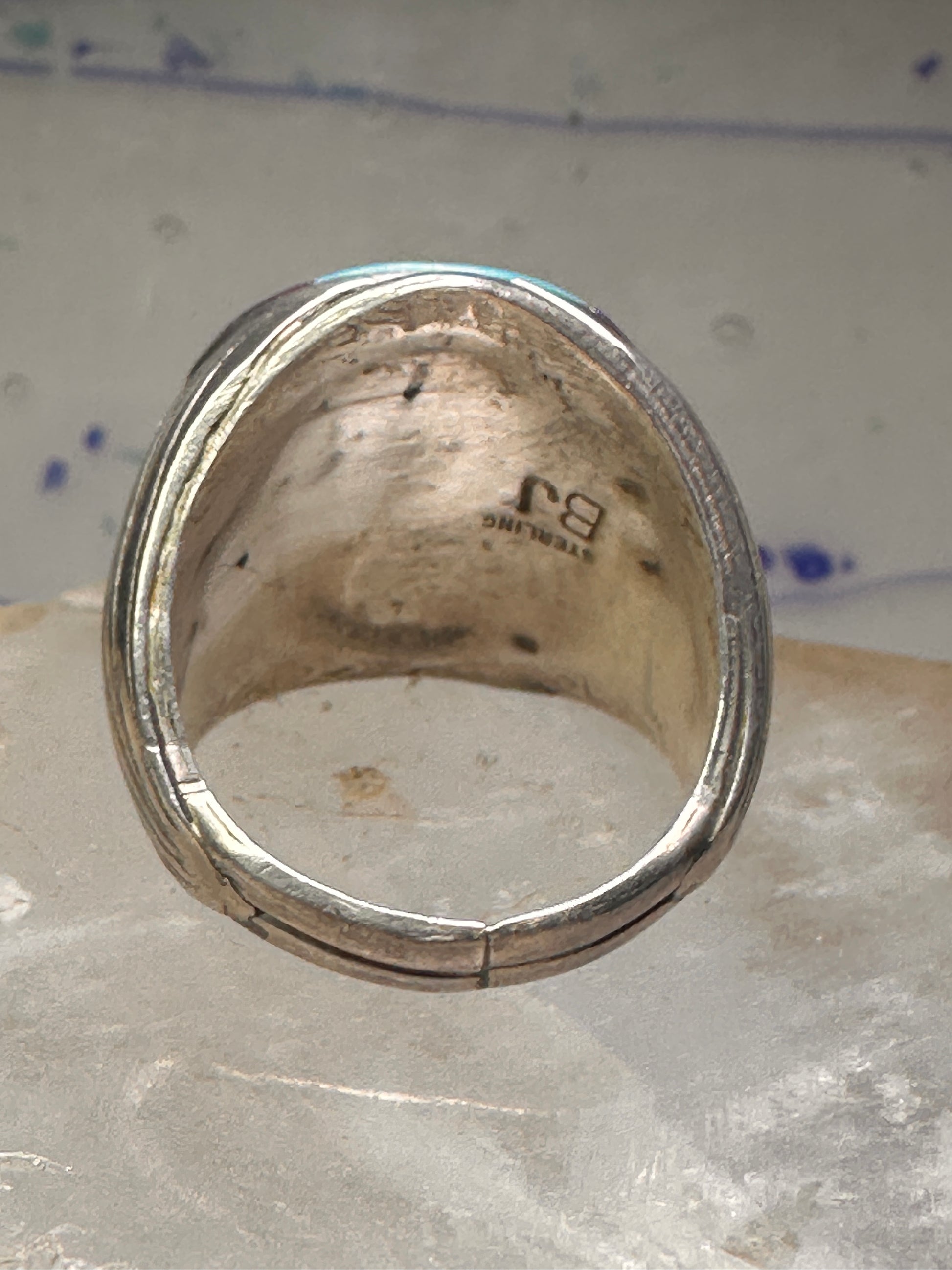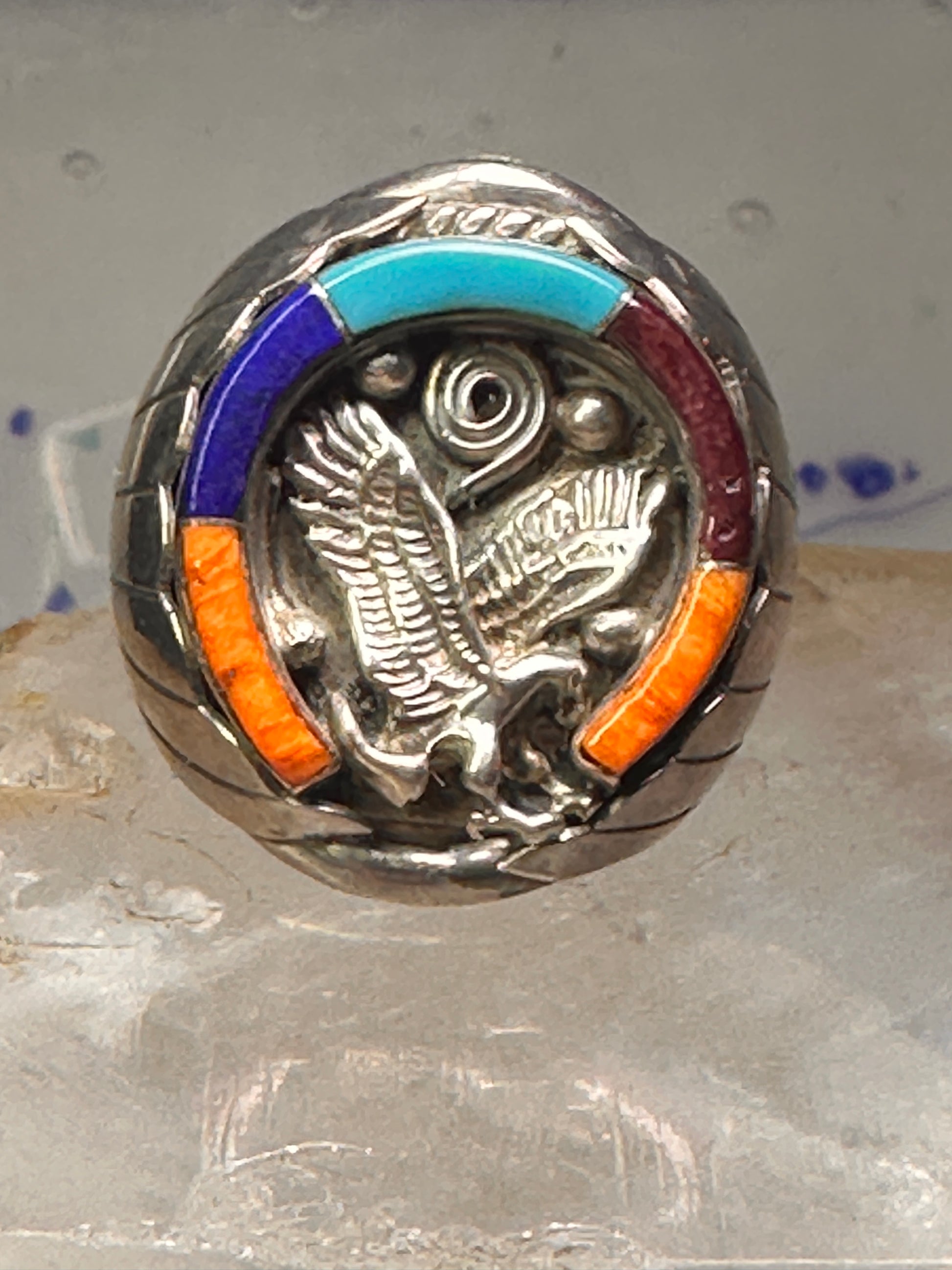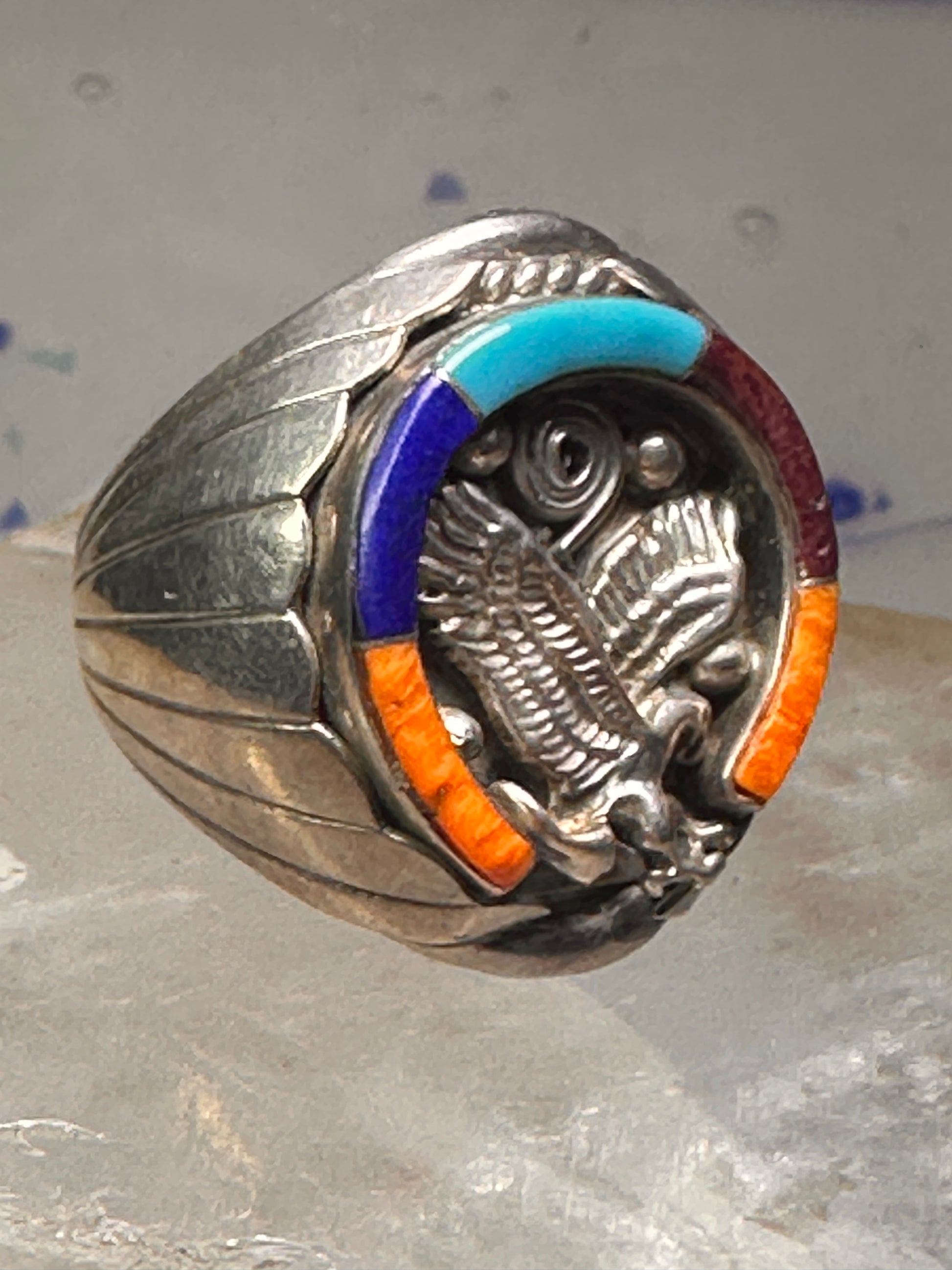 Navajo Horseshoe ring Eagle Turquoise band size 11.7 band sterling silver Good Luck men
