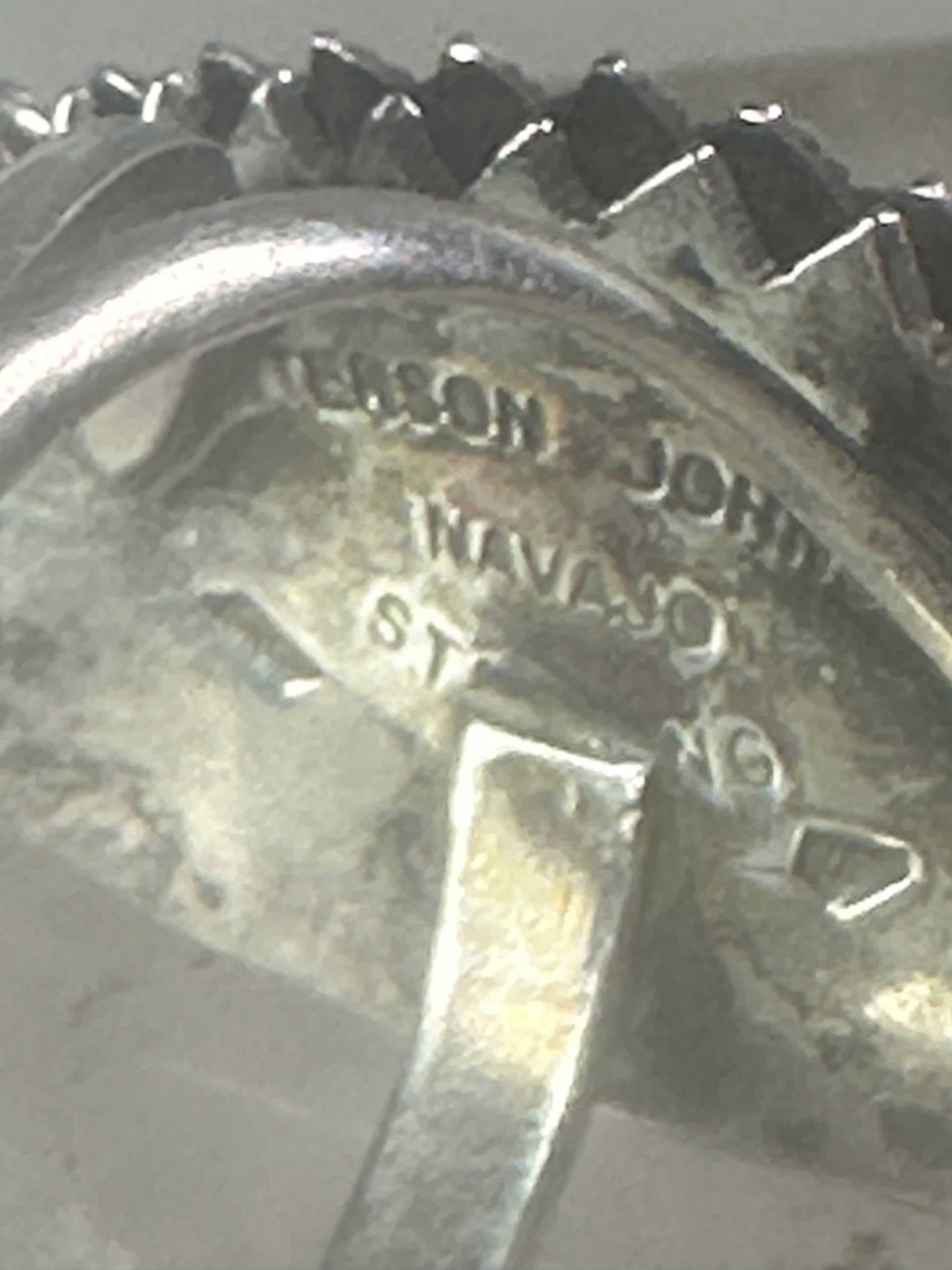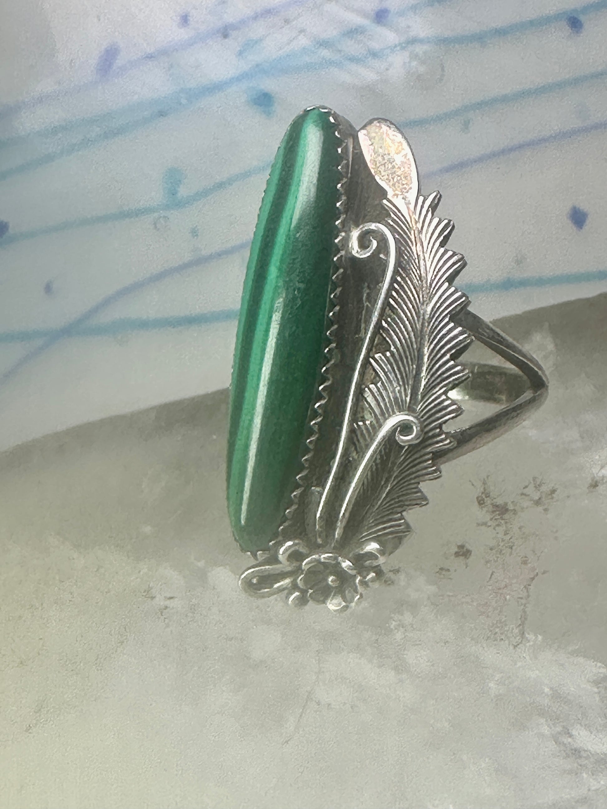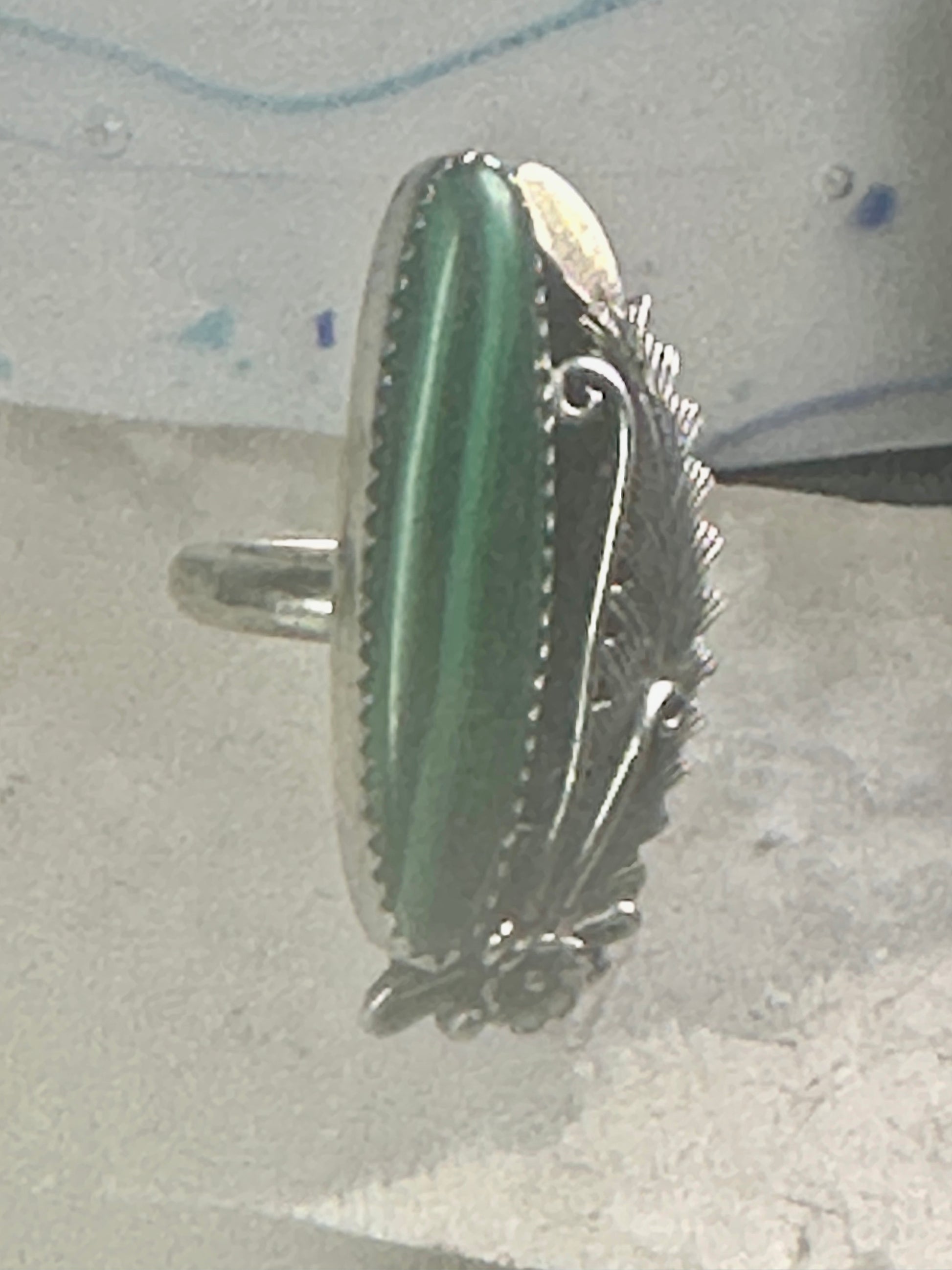 Navajo Long Malachite ring Peterson Johnson size 9 sterling silver women