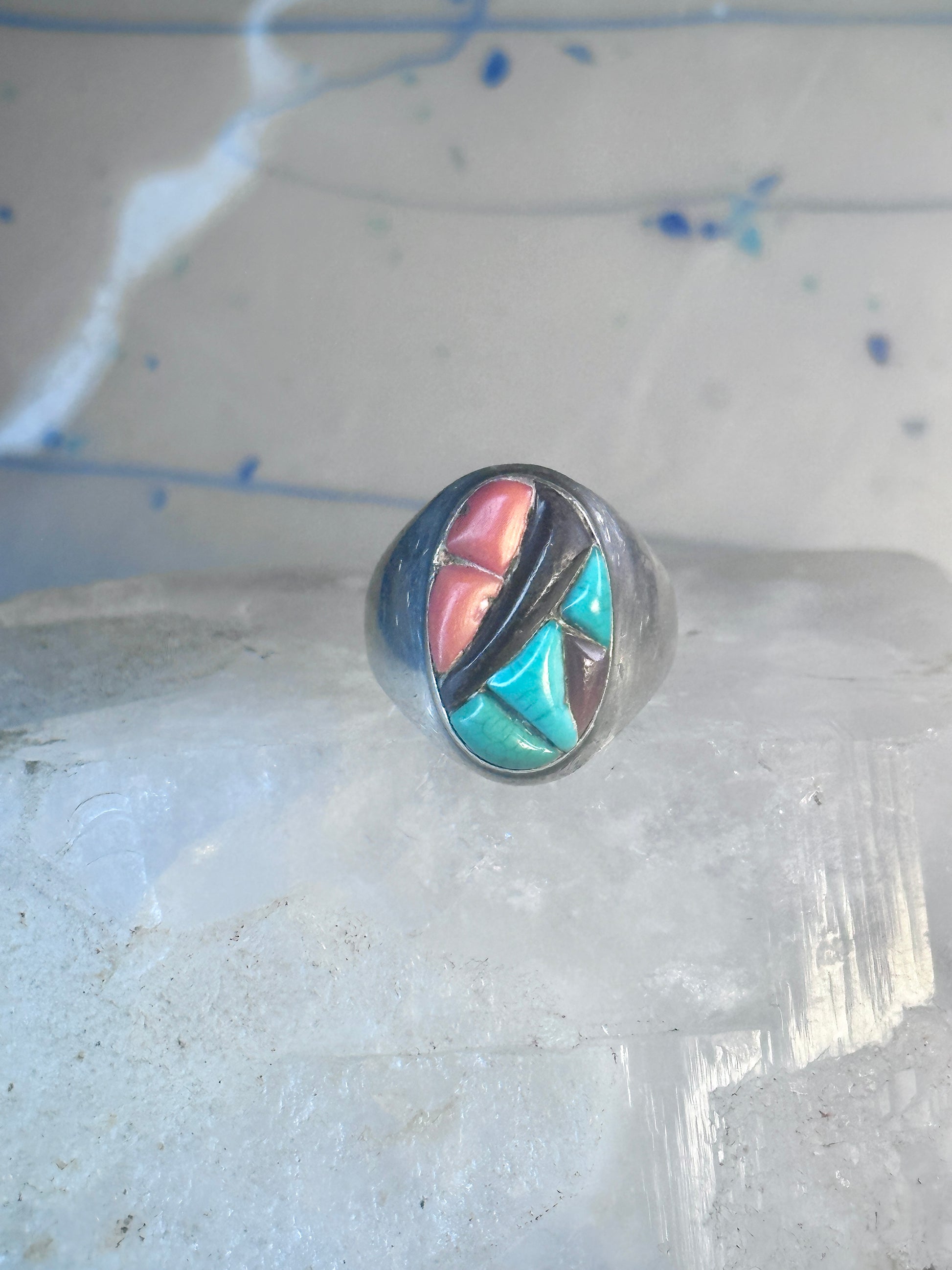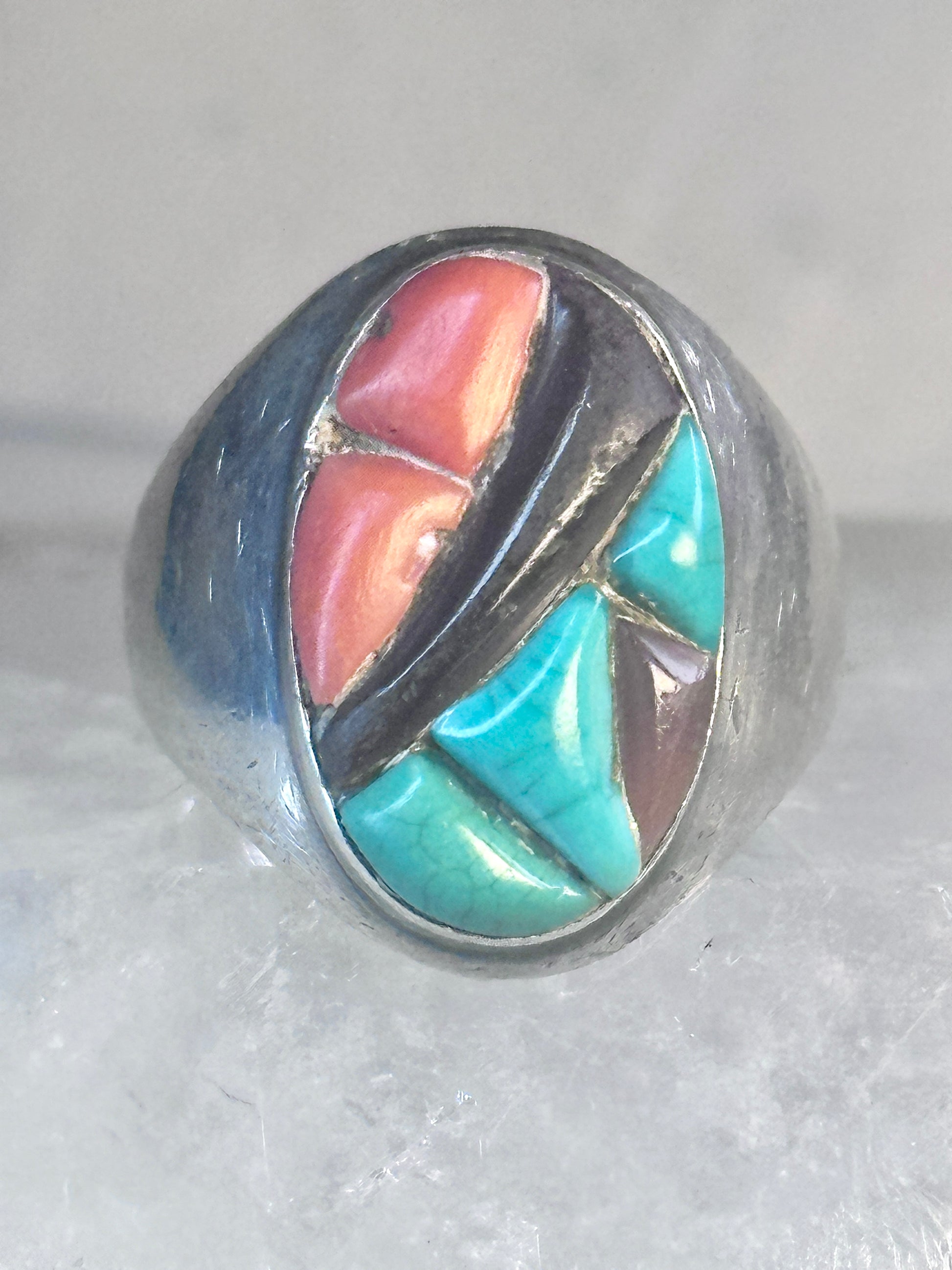 Navajo Ring Turquoise coral onyx cobblestone size 9.7 southwest sterling silver women men