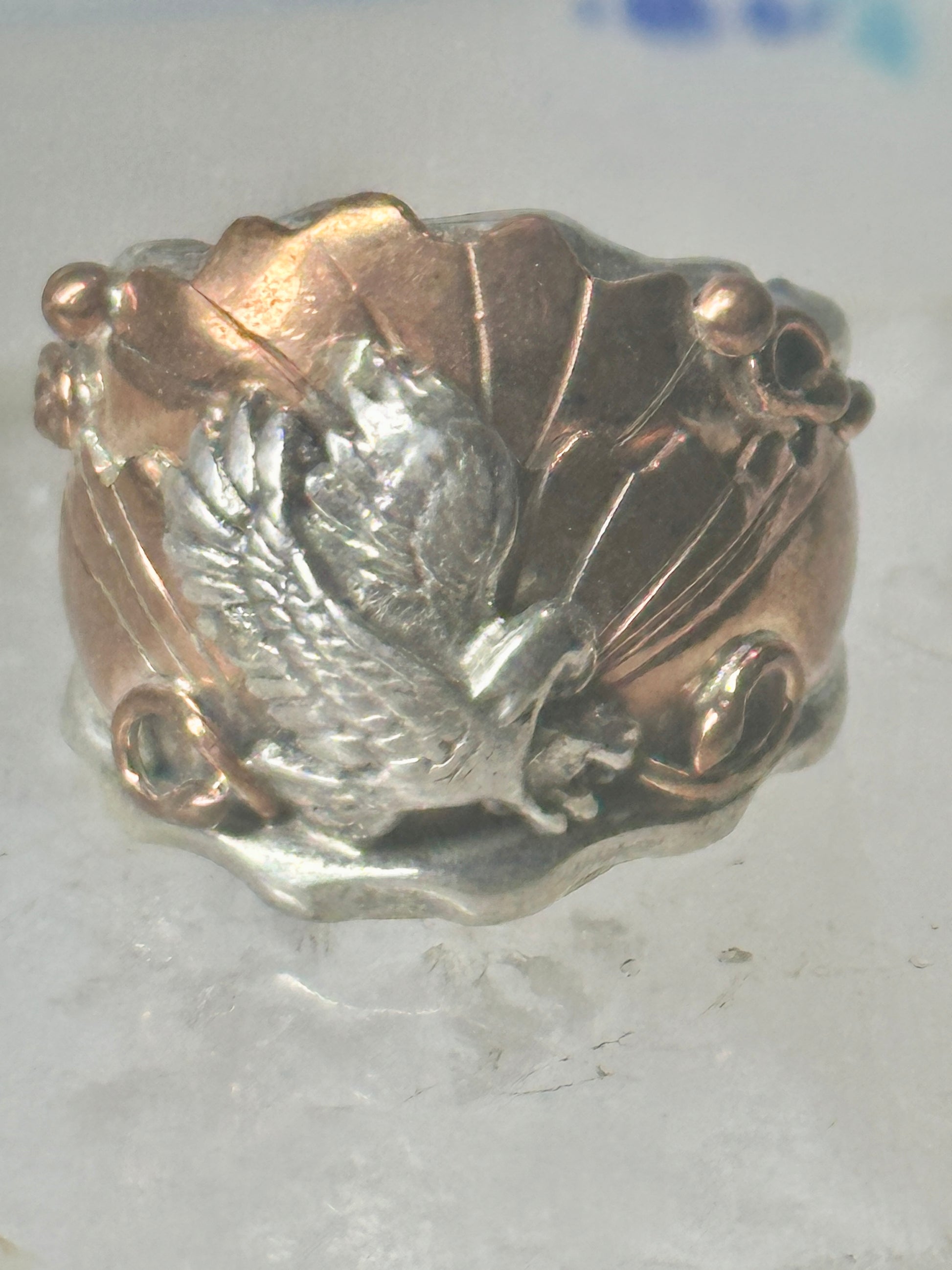 Navajo ring Eagle band by Etsitty size 6.25 sterling silver copper signed logo of bear women men