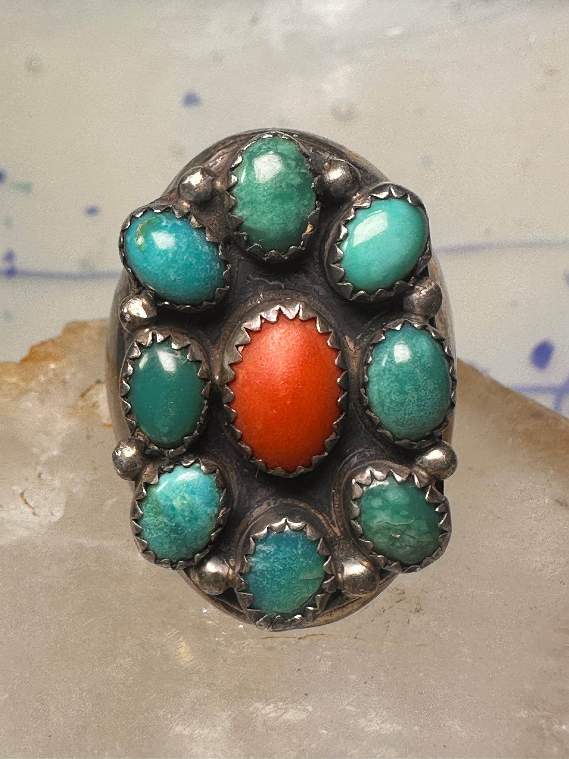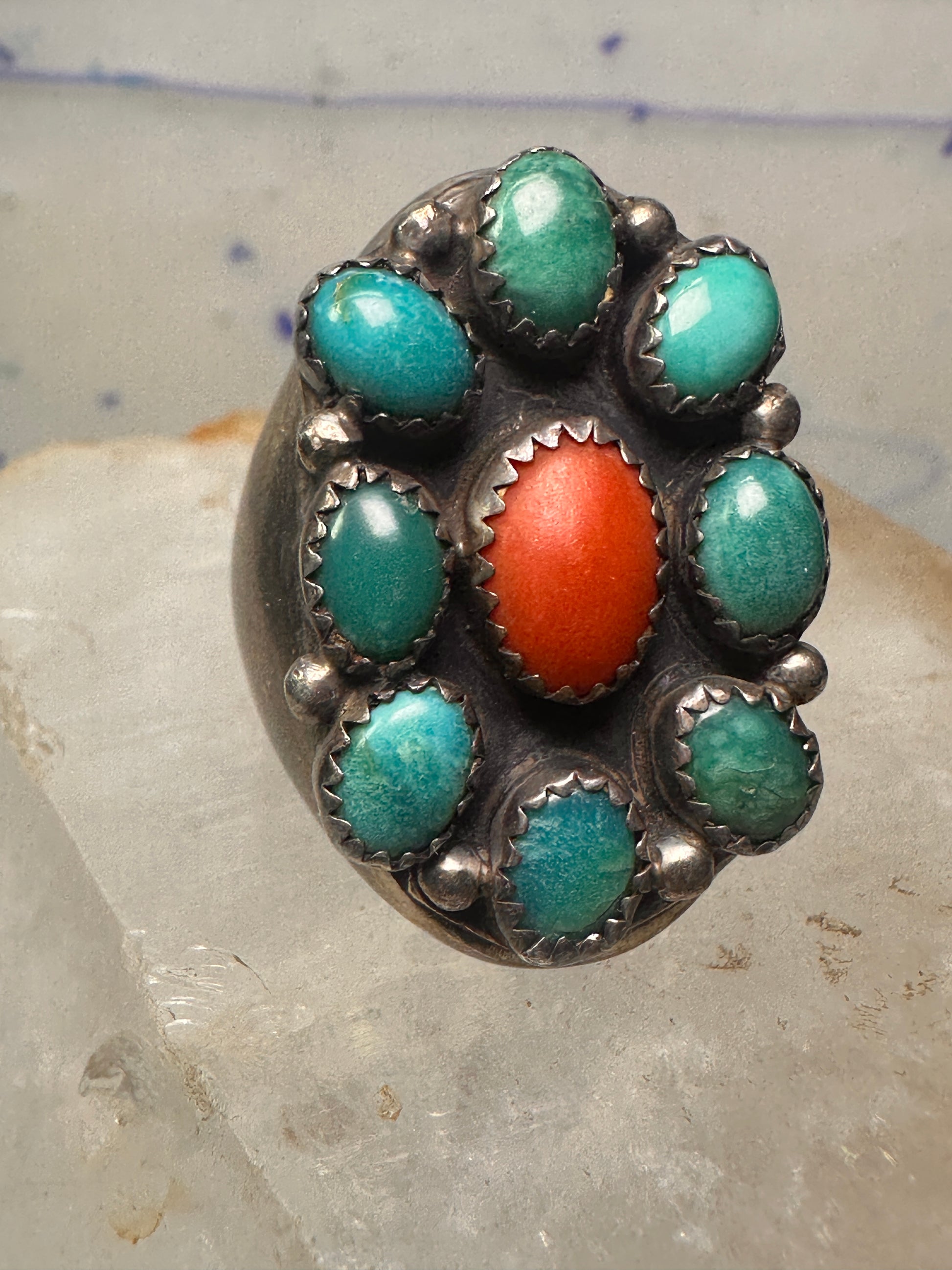 Navajo ring Heavy turquoise coral band size 10.75 sterling silver women men