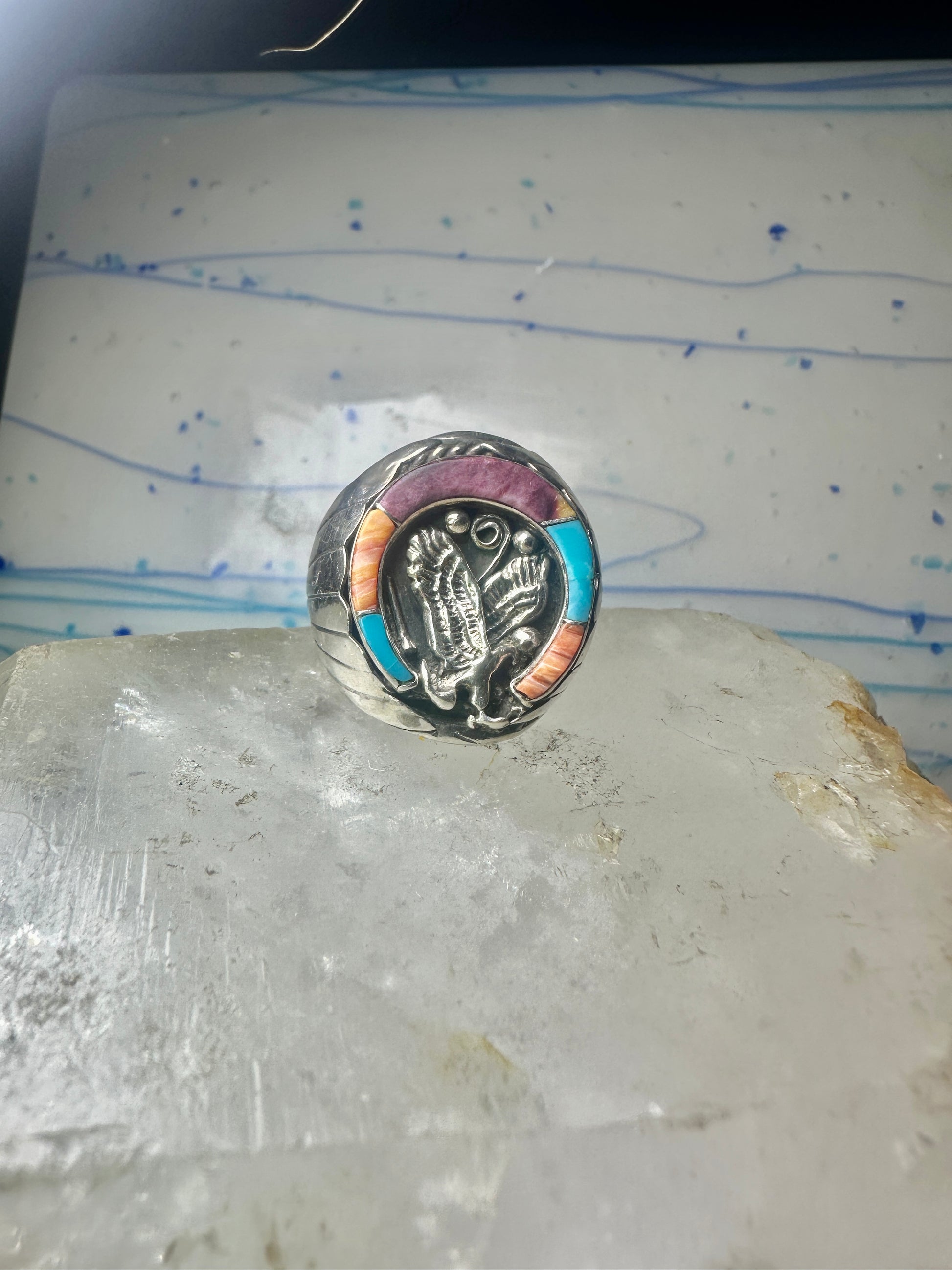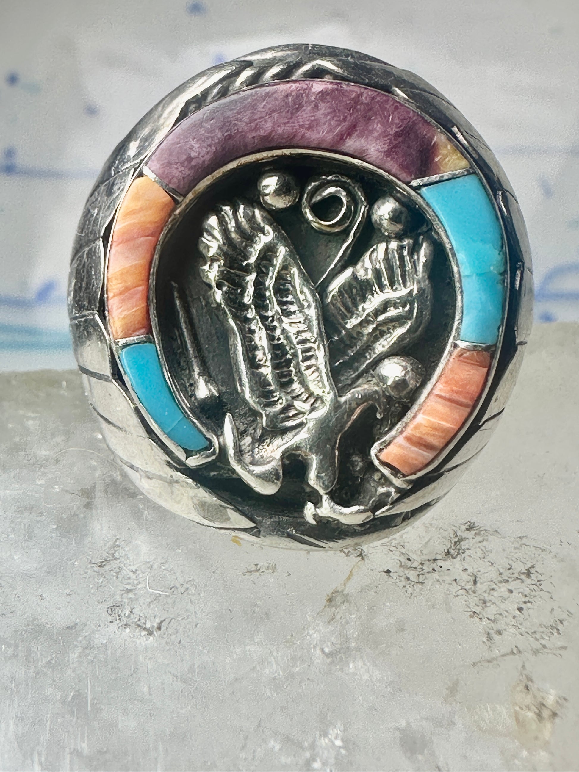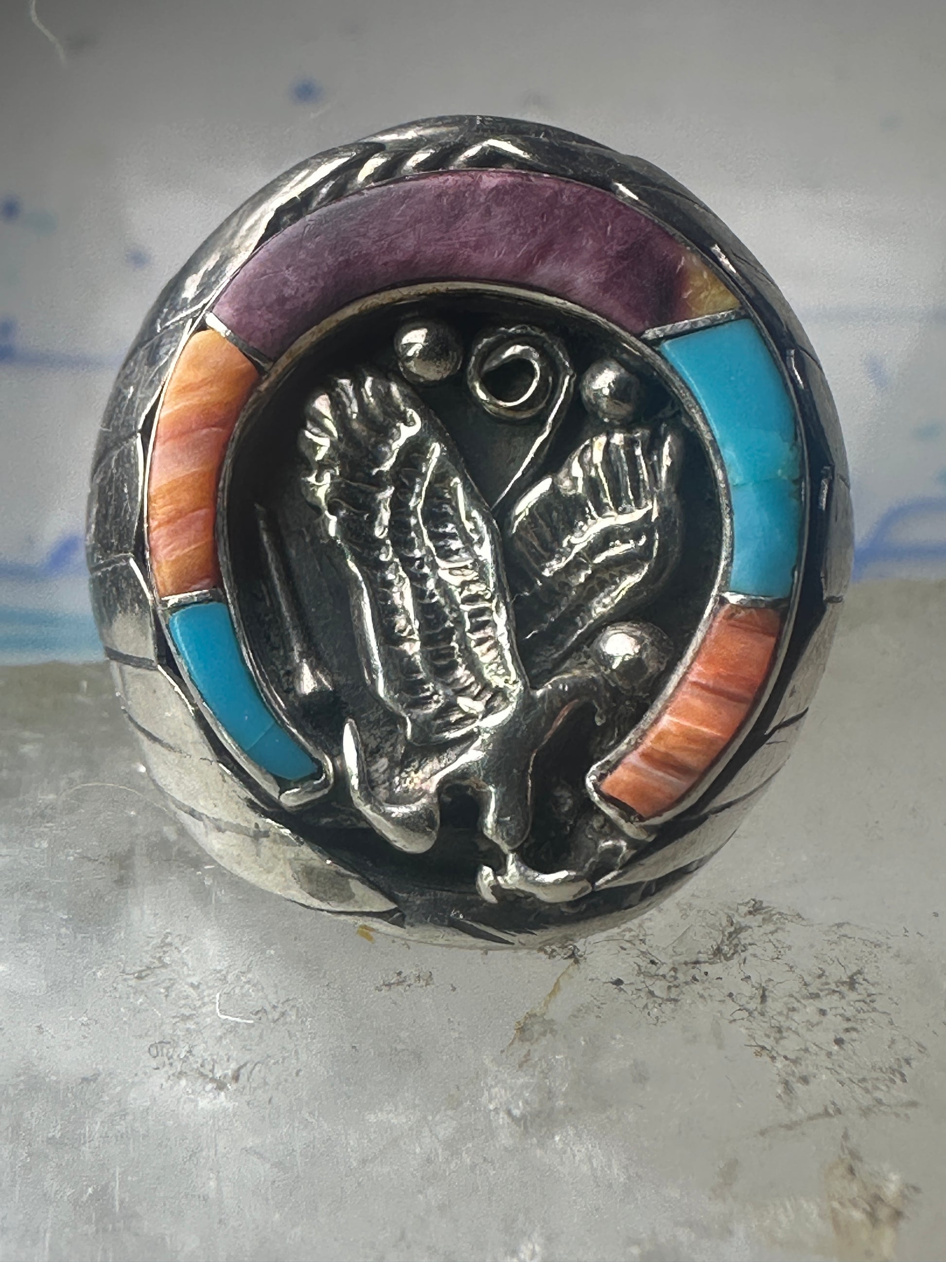 Navajo ring Horseshoe eagle turquoise spiny oyster size 11 sterling silver men