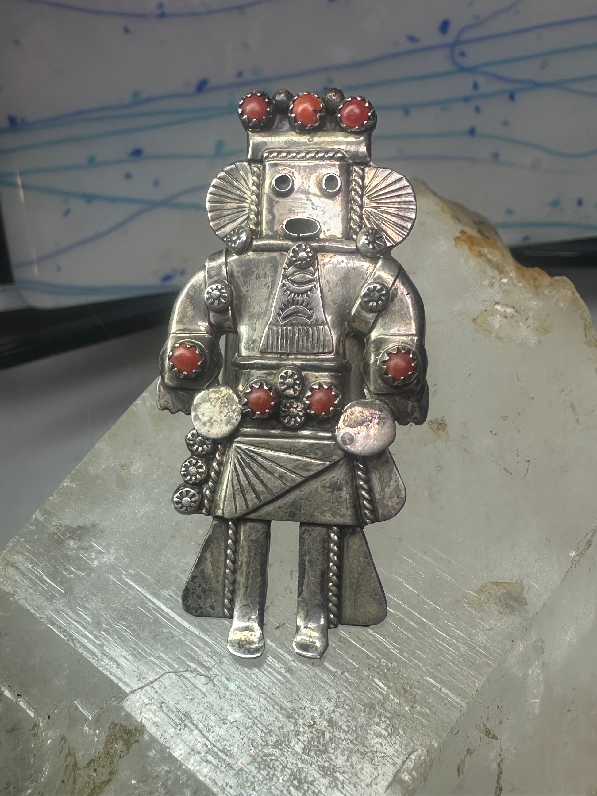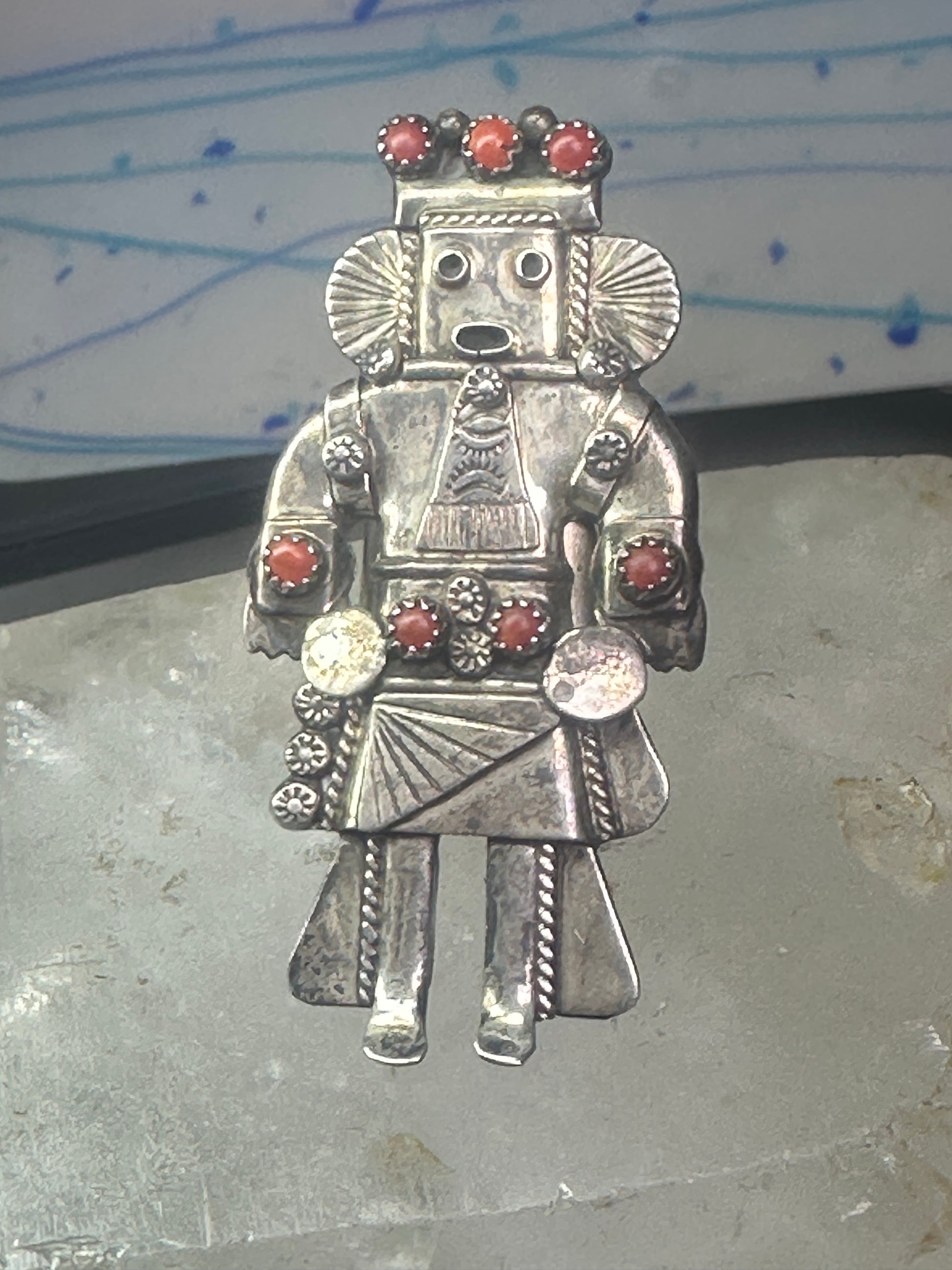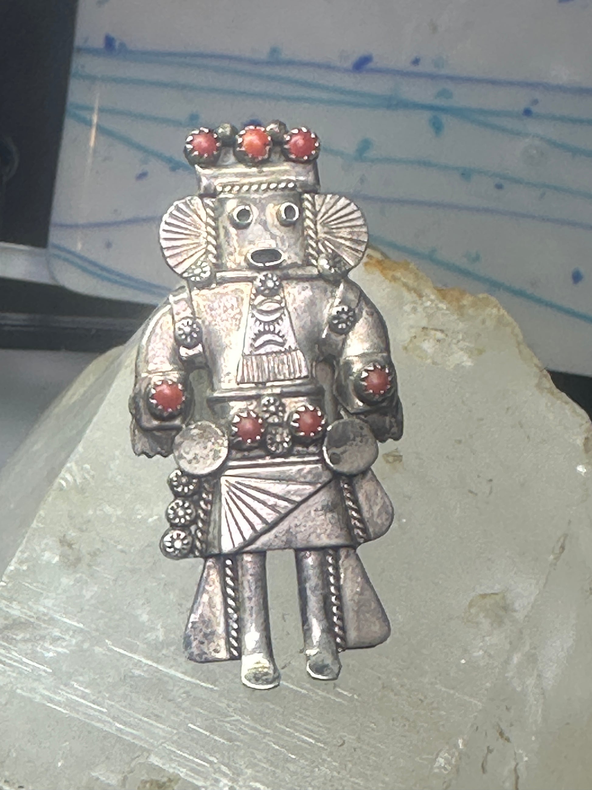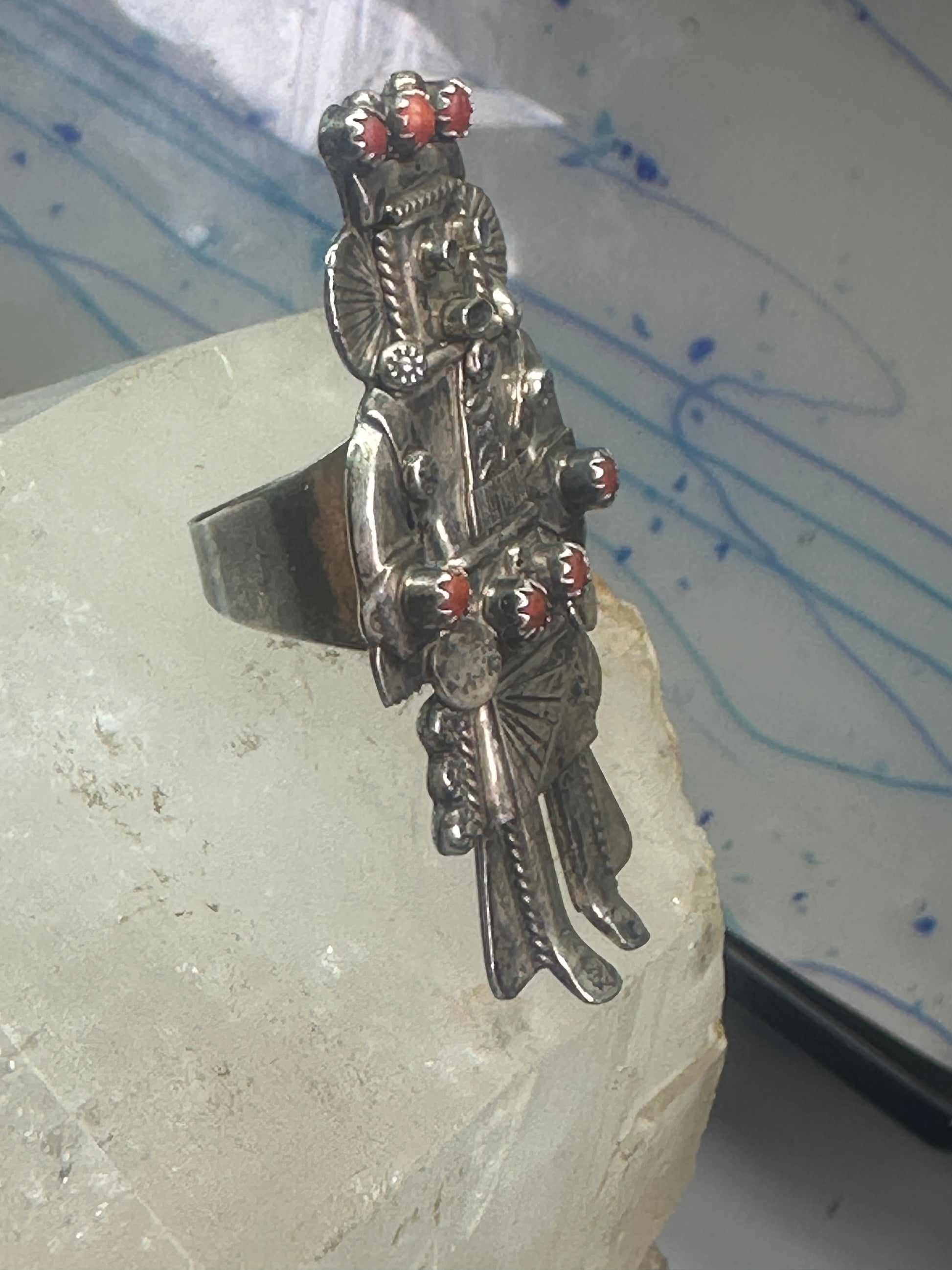 Navajo Ring Long Kachina coral size 9 sterling silver women