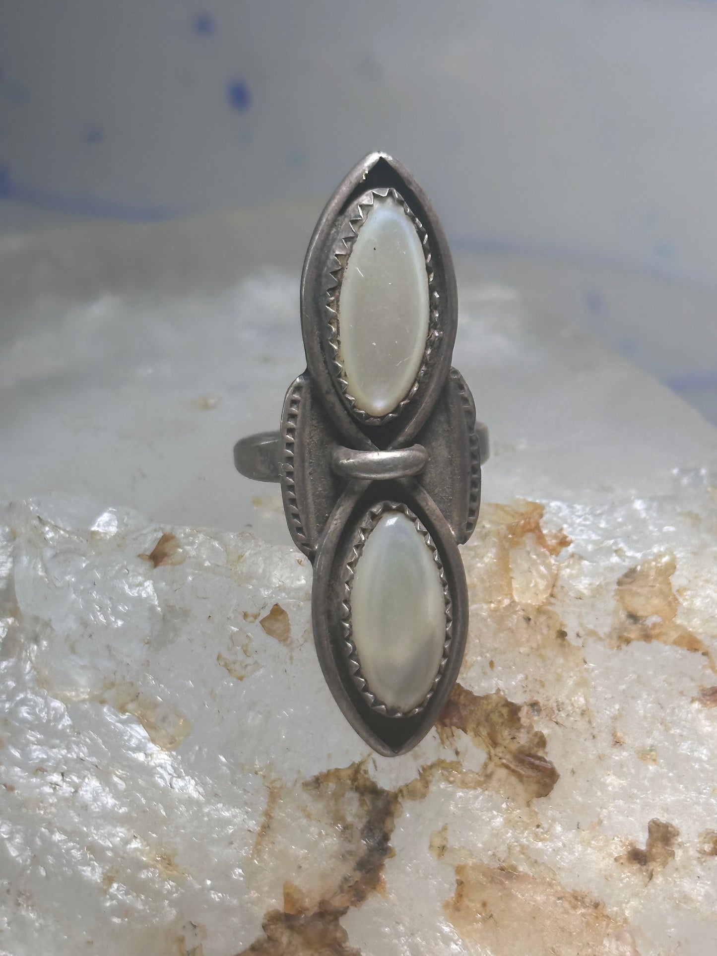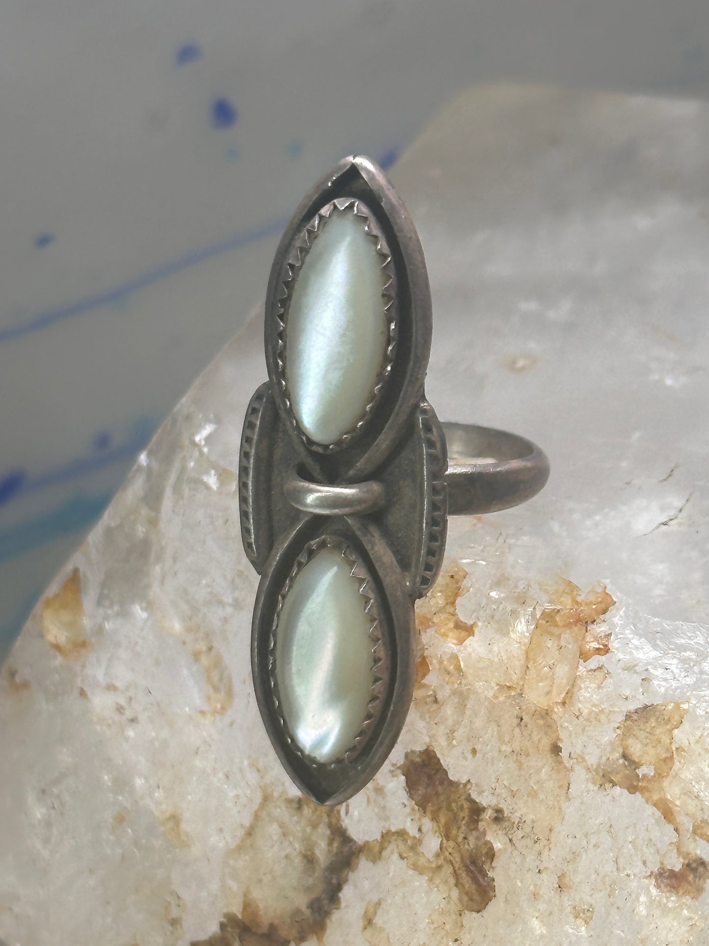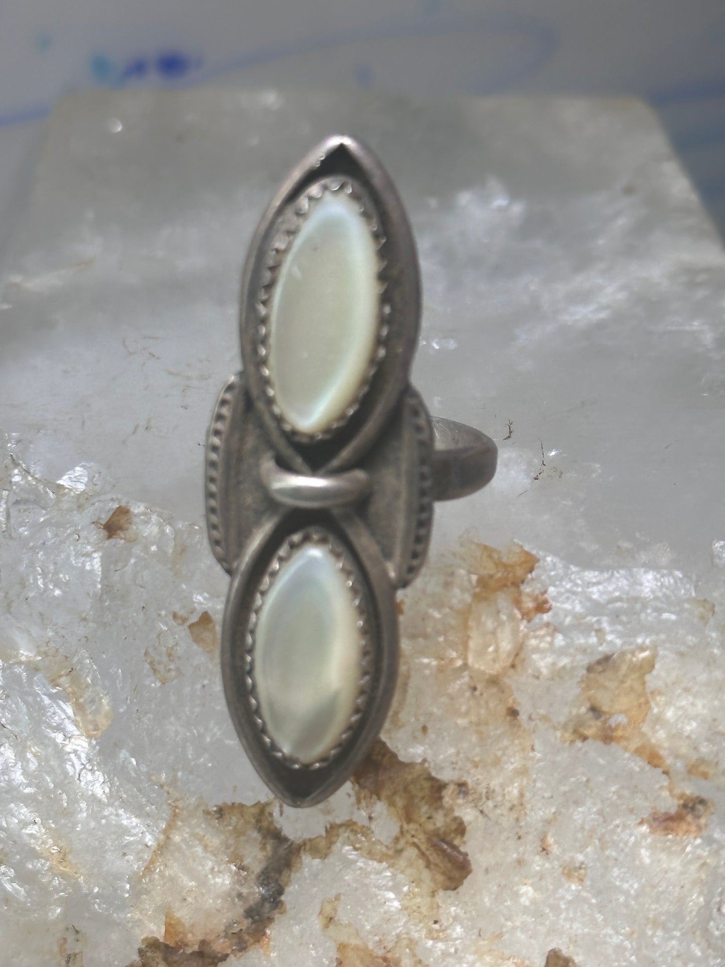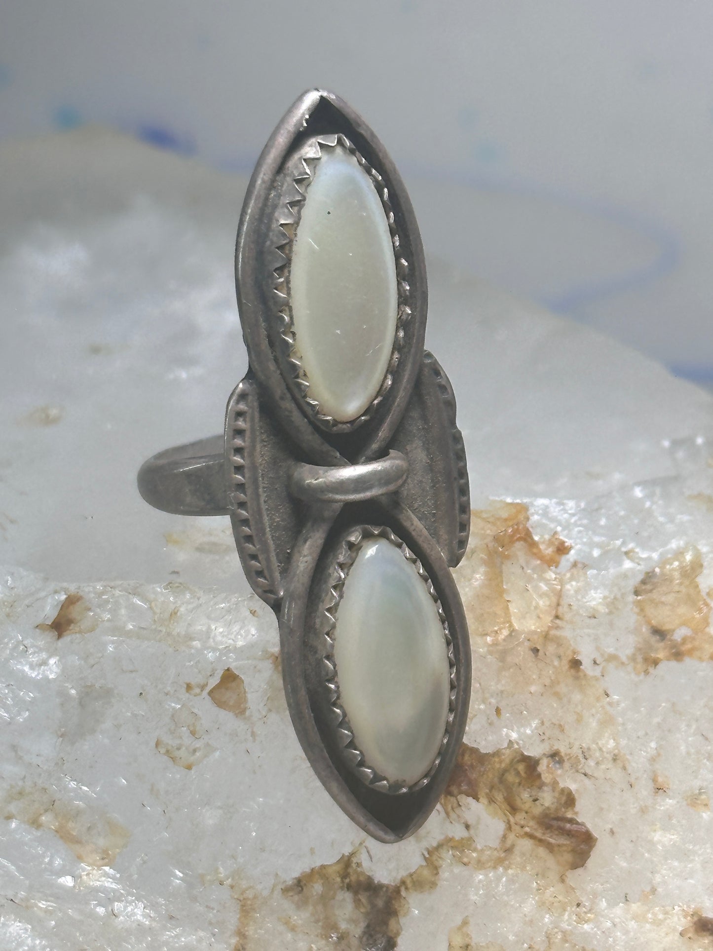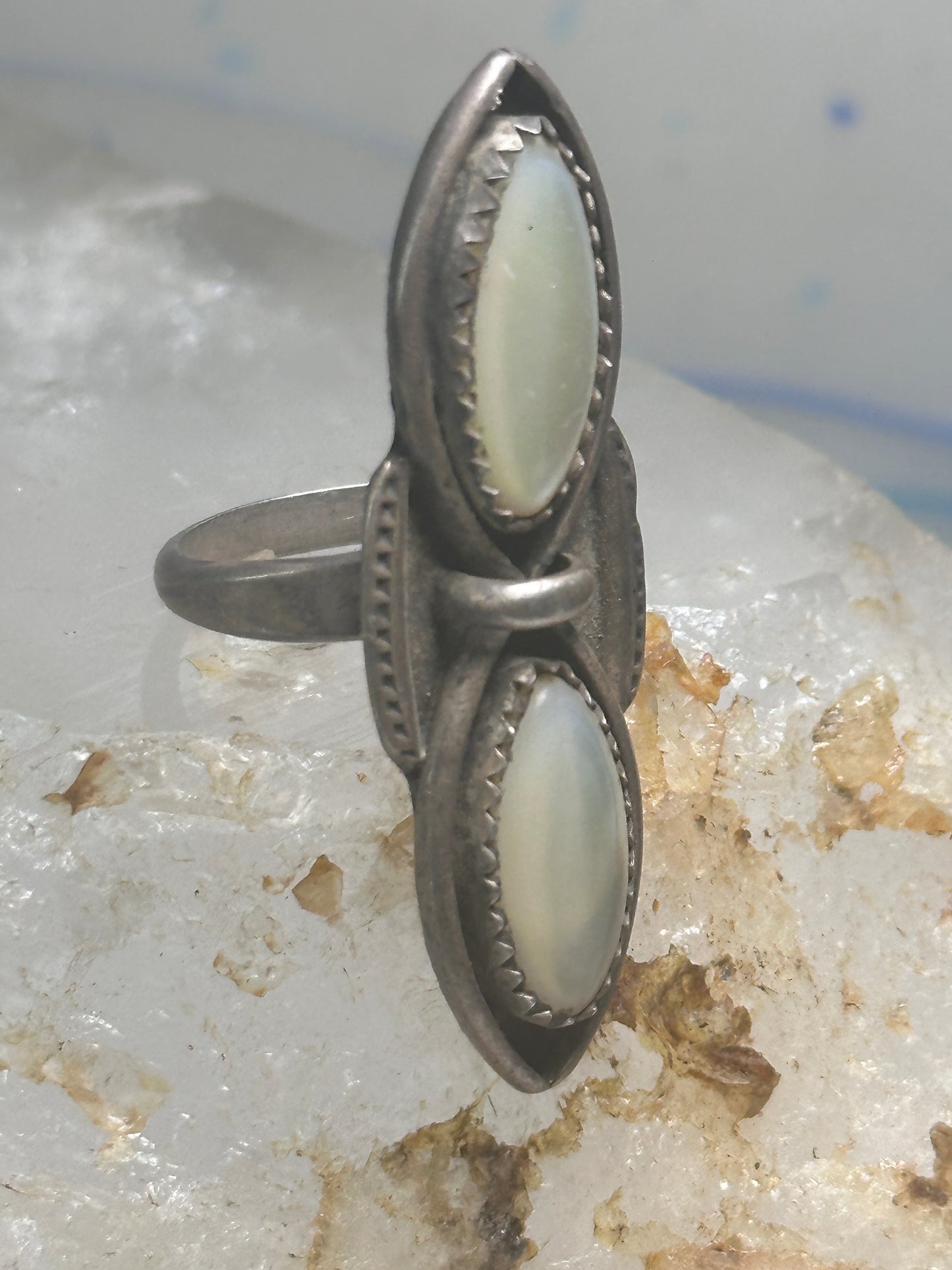 Navajo ring long mother of pearl MOP size 5.50 sterling silver women