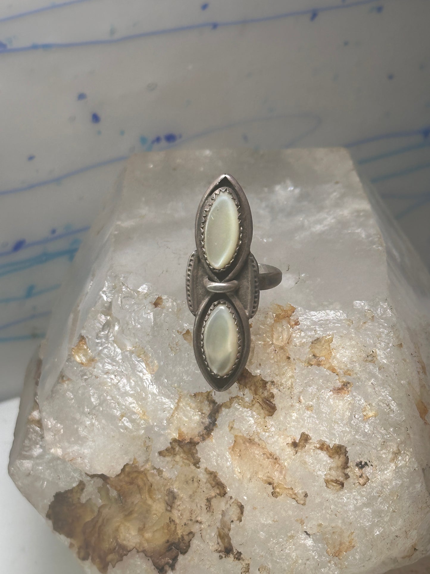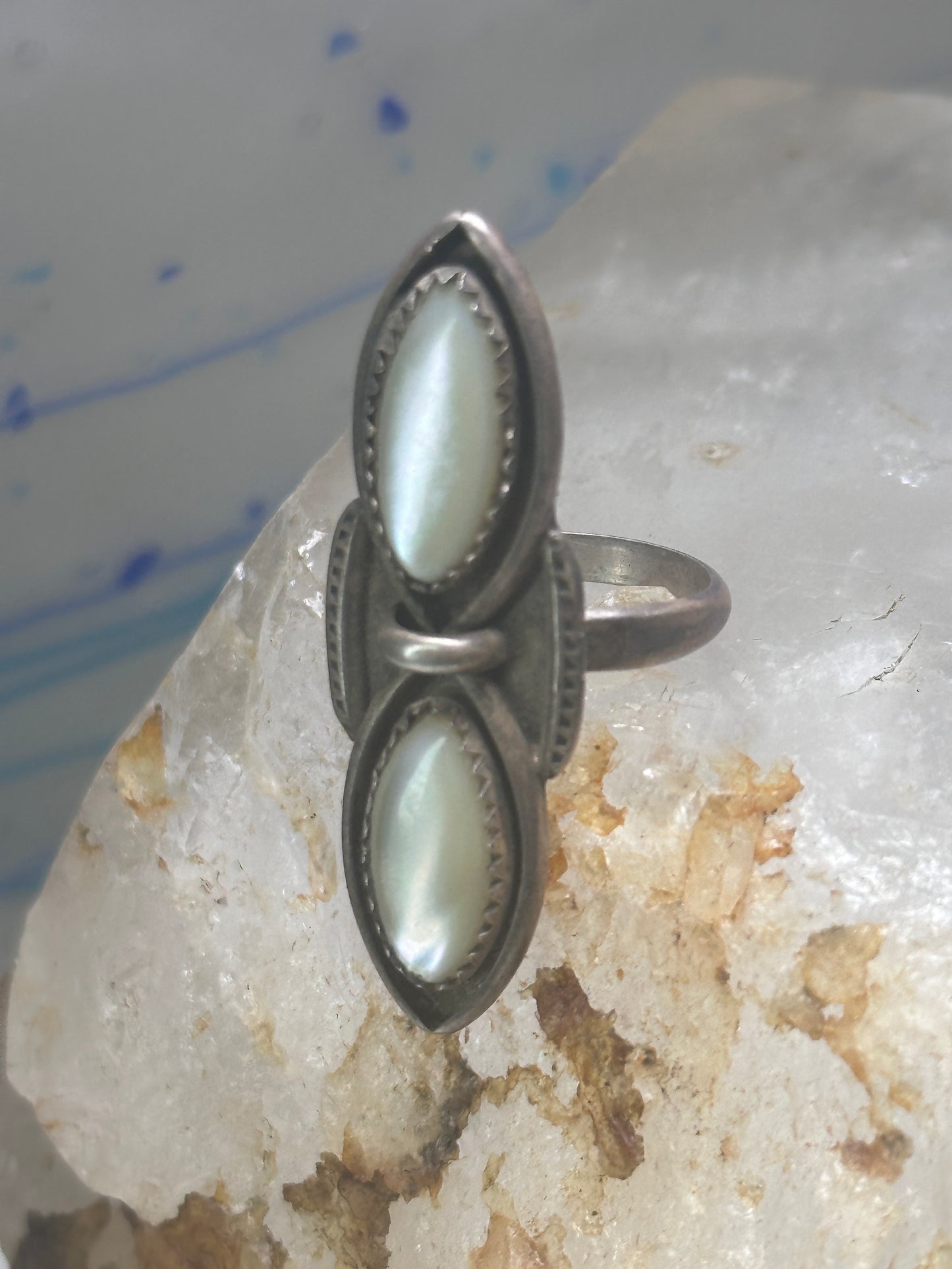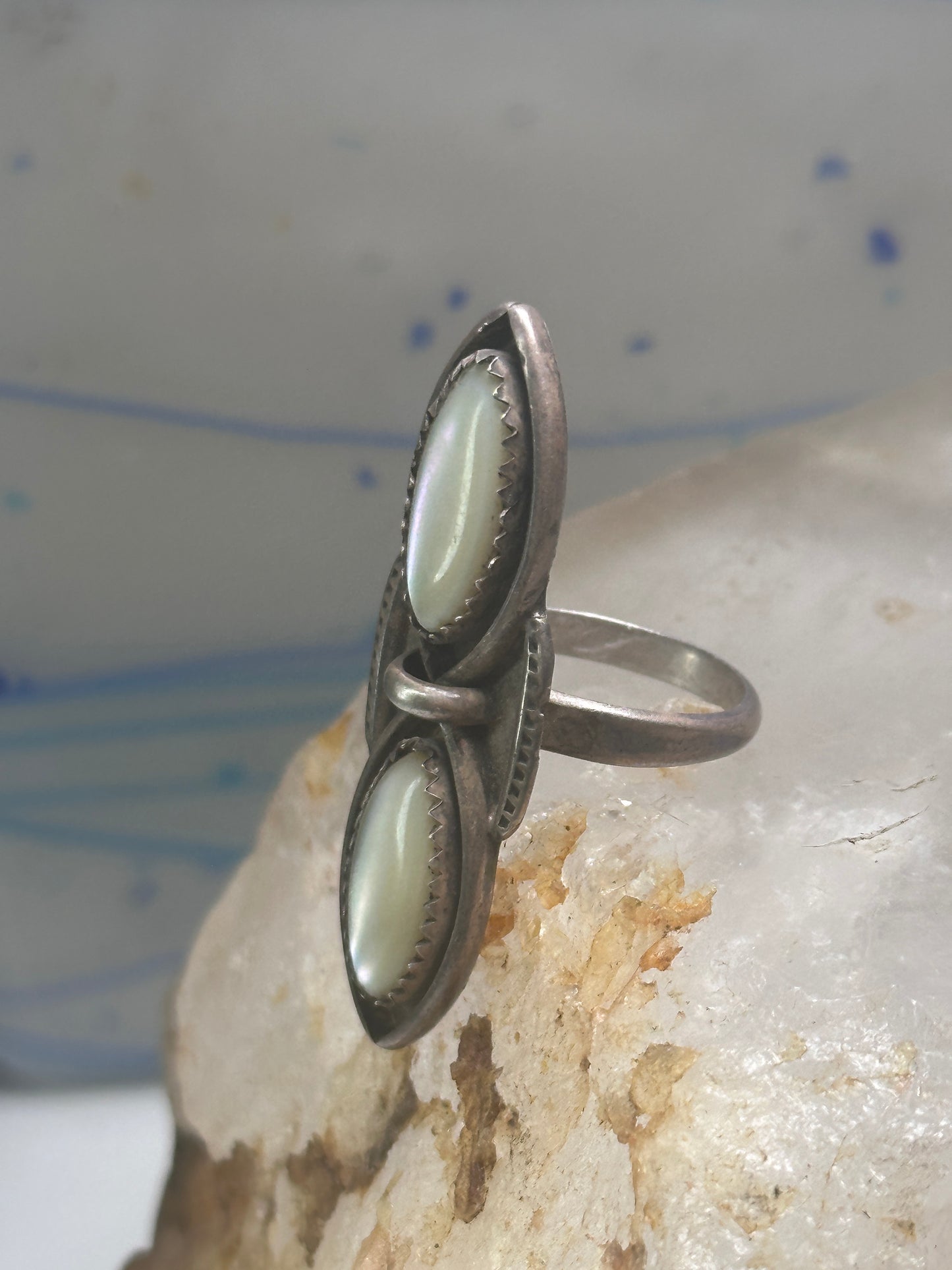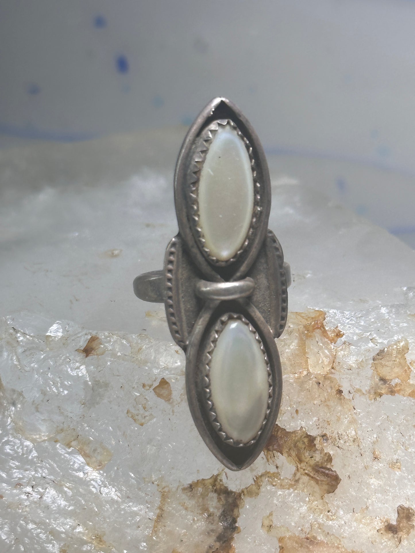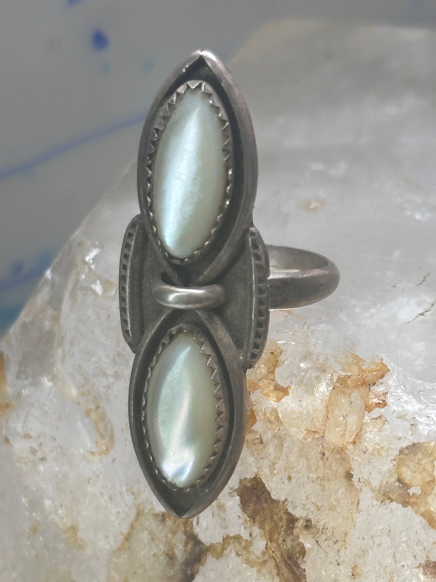 Navajo ring long mother of pearl MOP size 5.50 sterling silver women