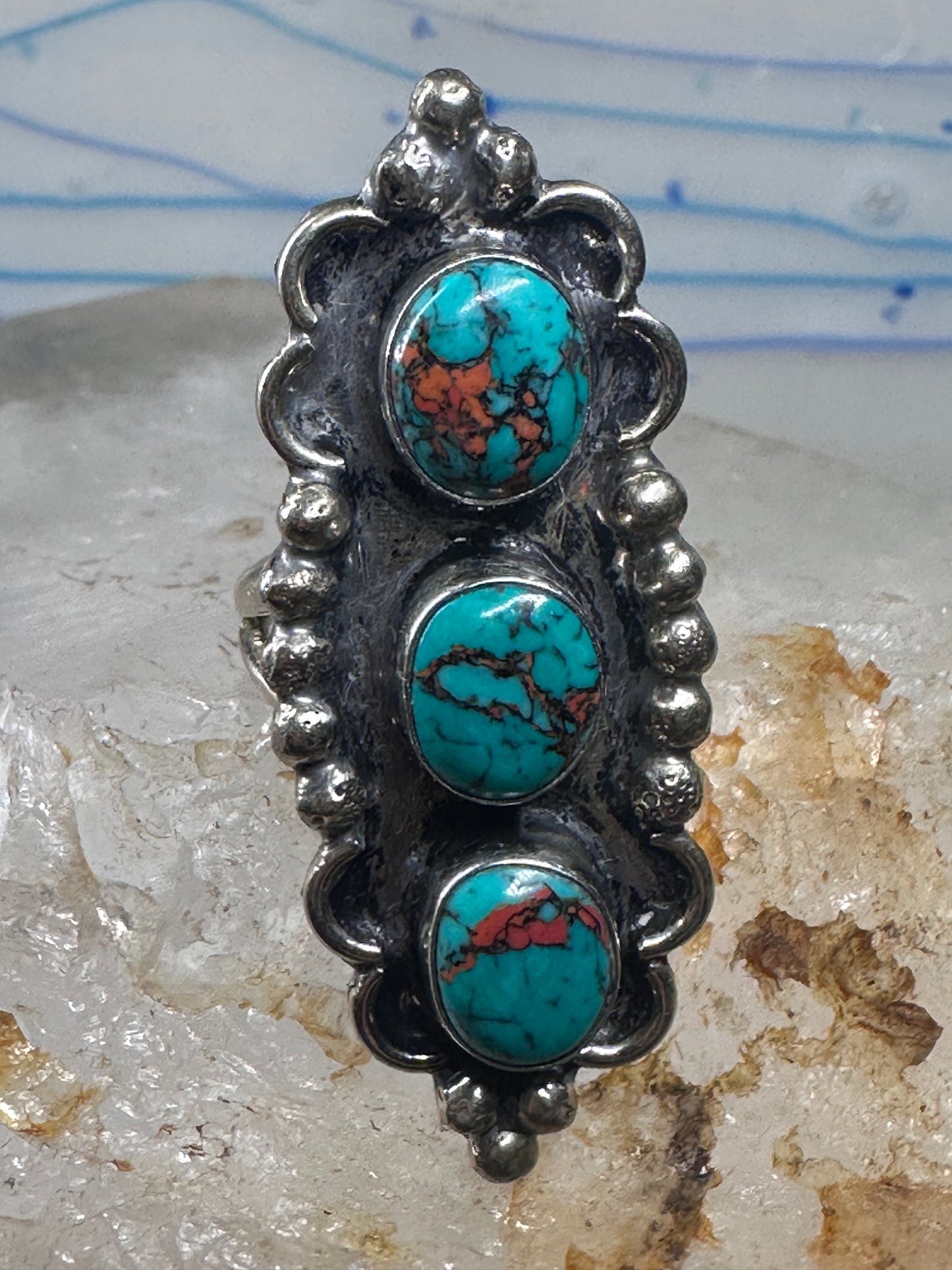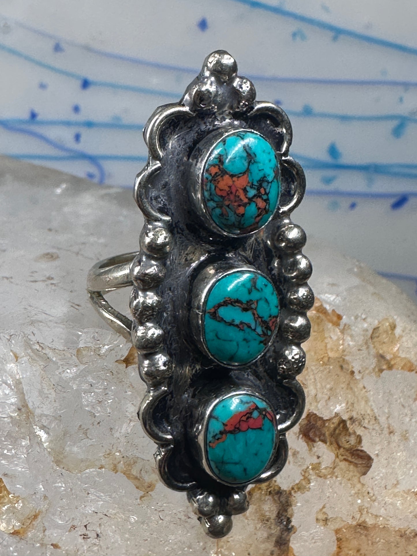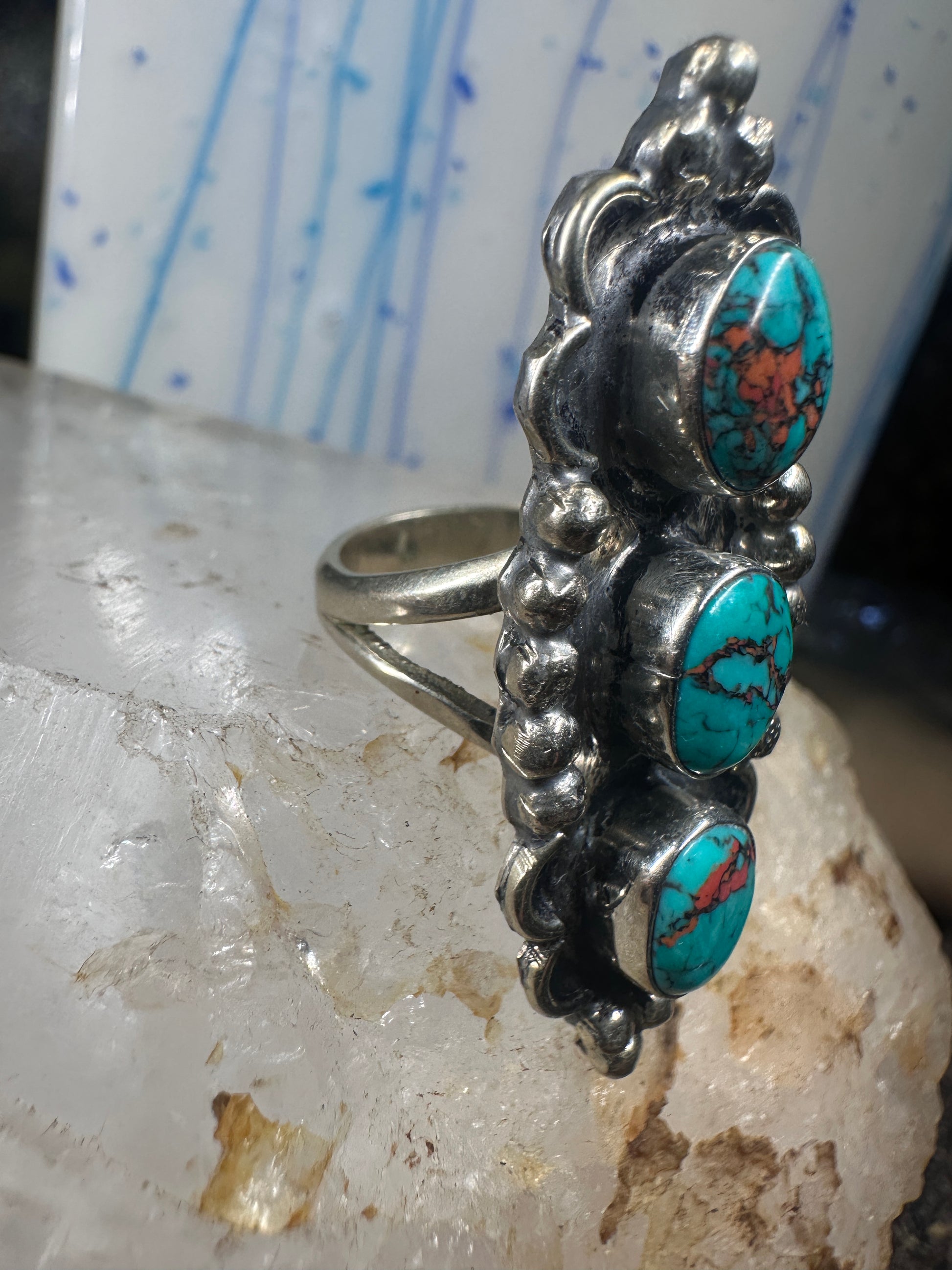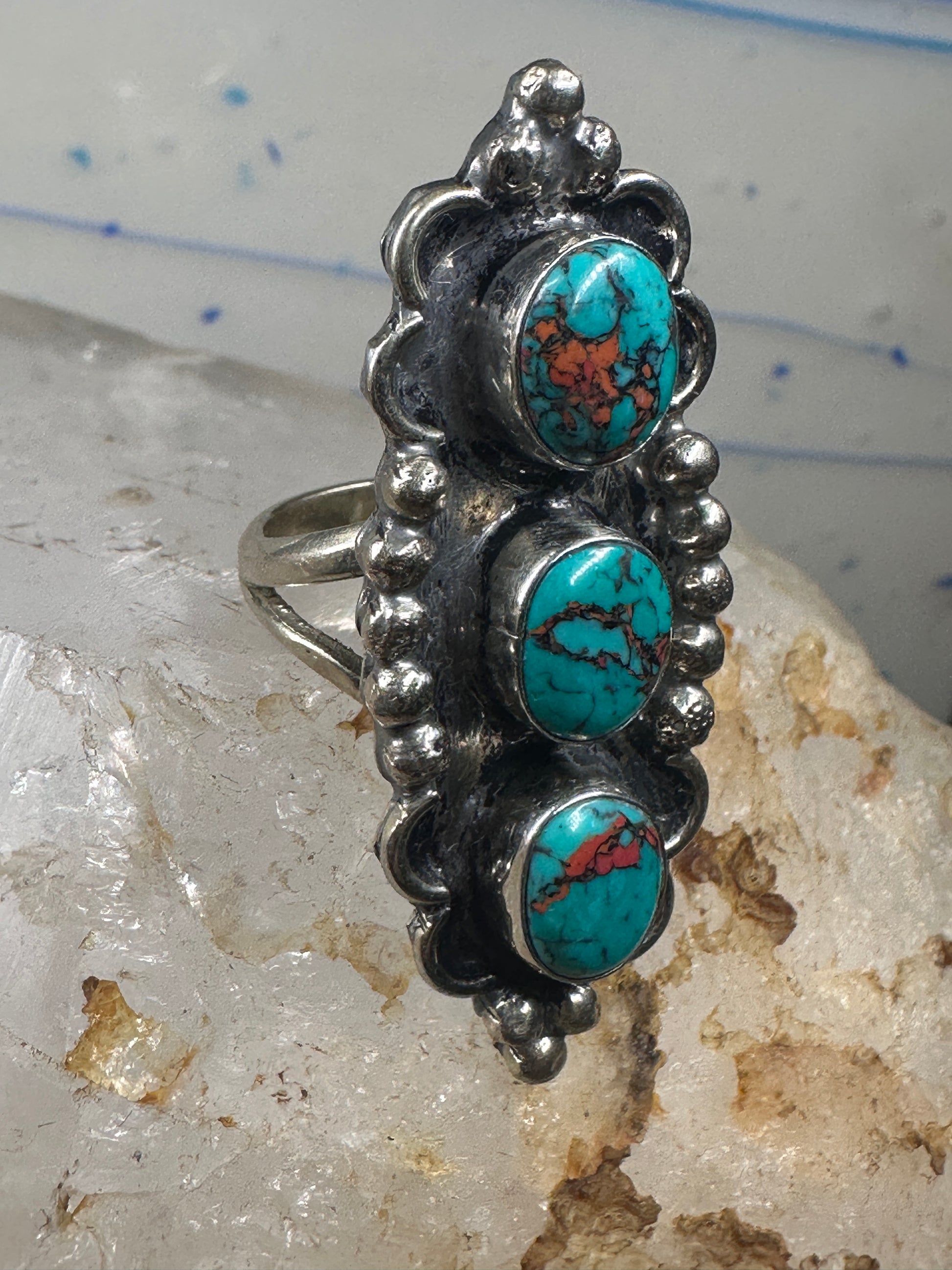 Navajo ring long turquoise Sterling silver size 7.25 sterling silver women
