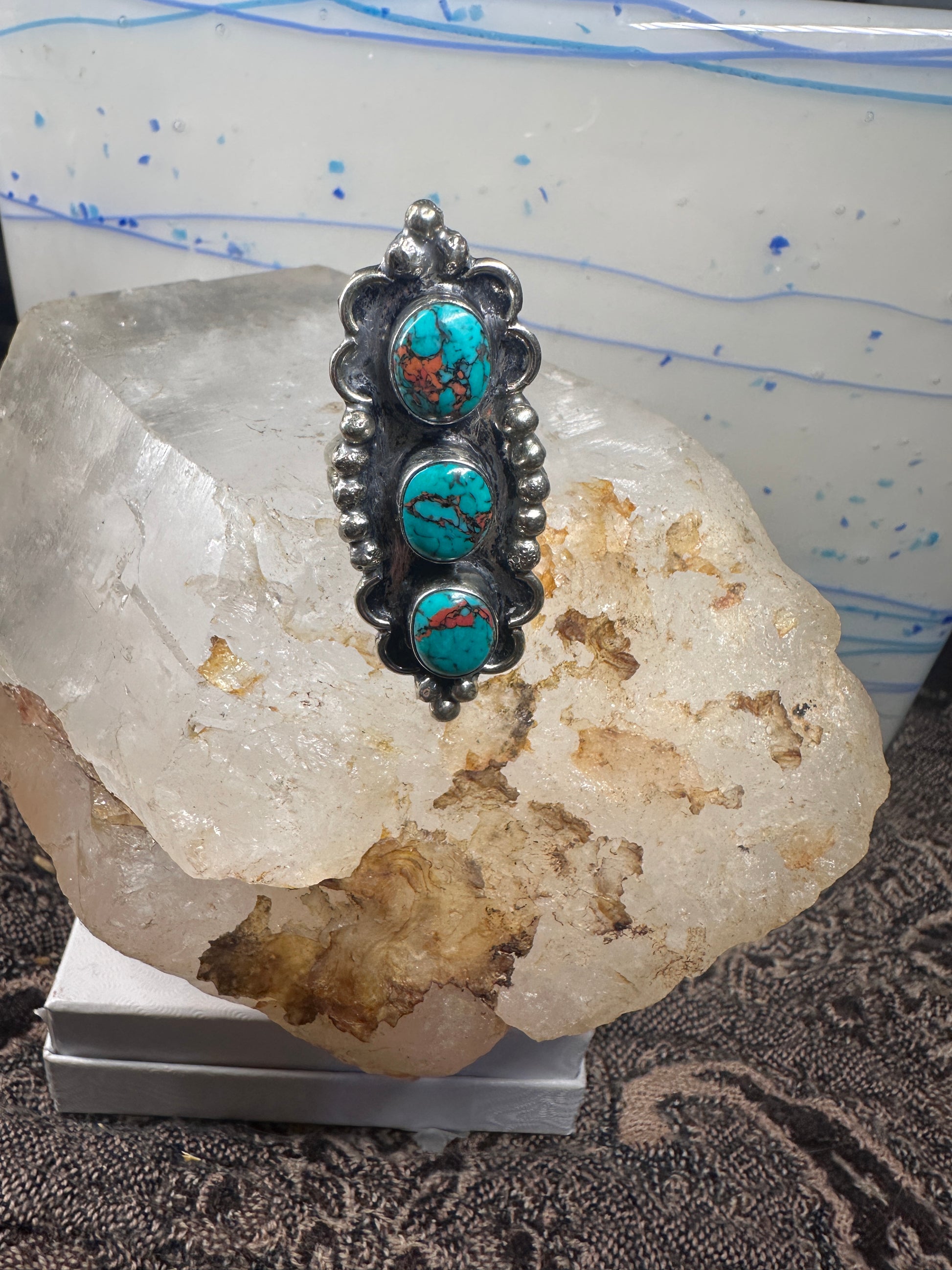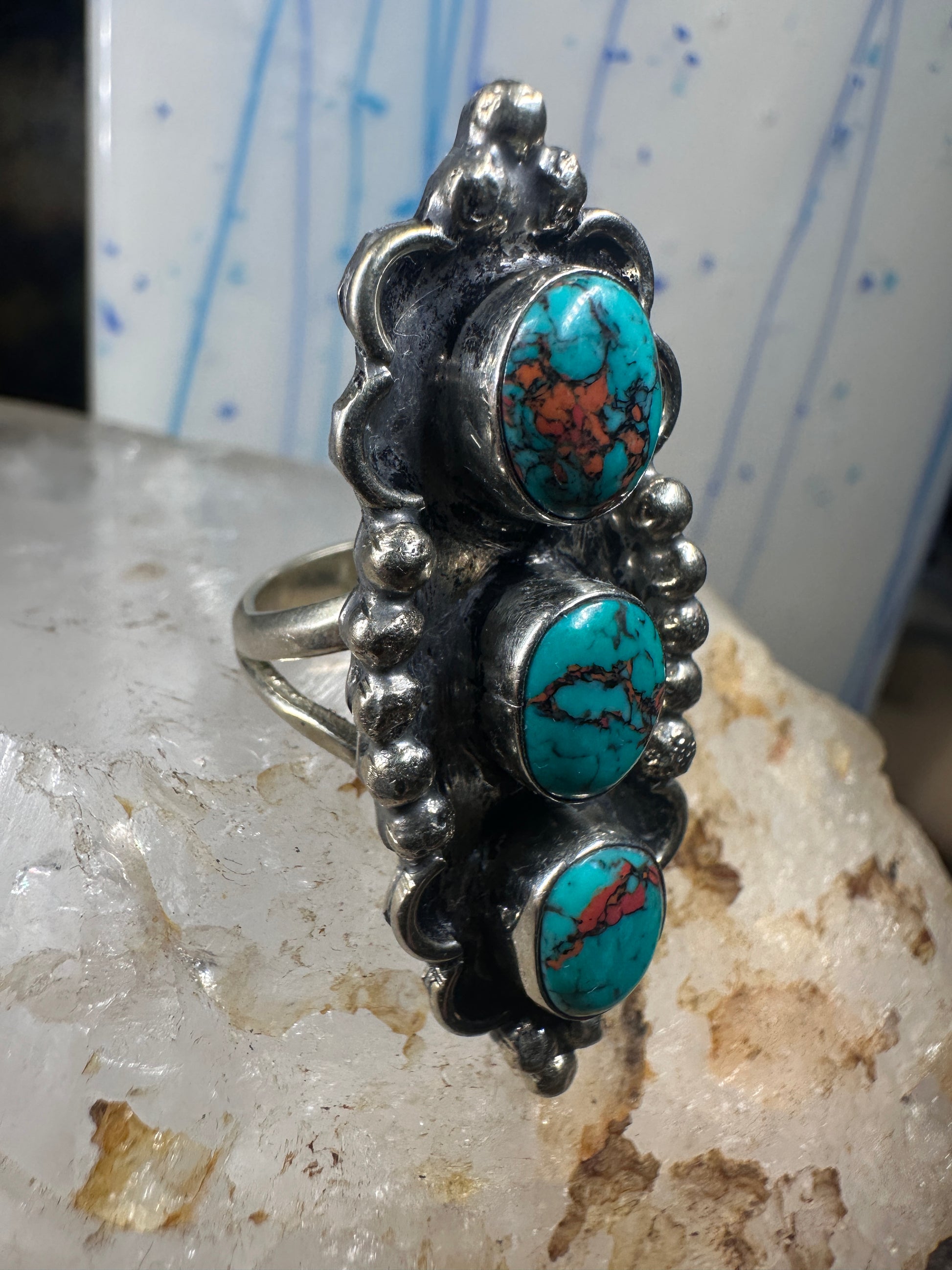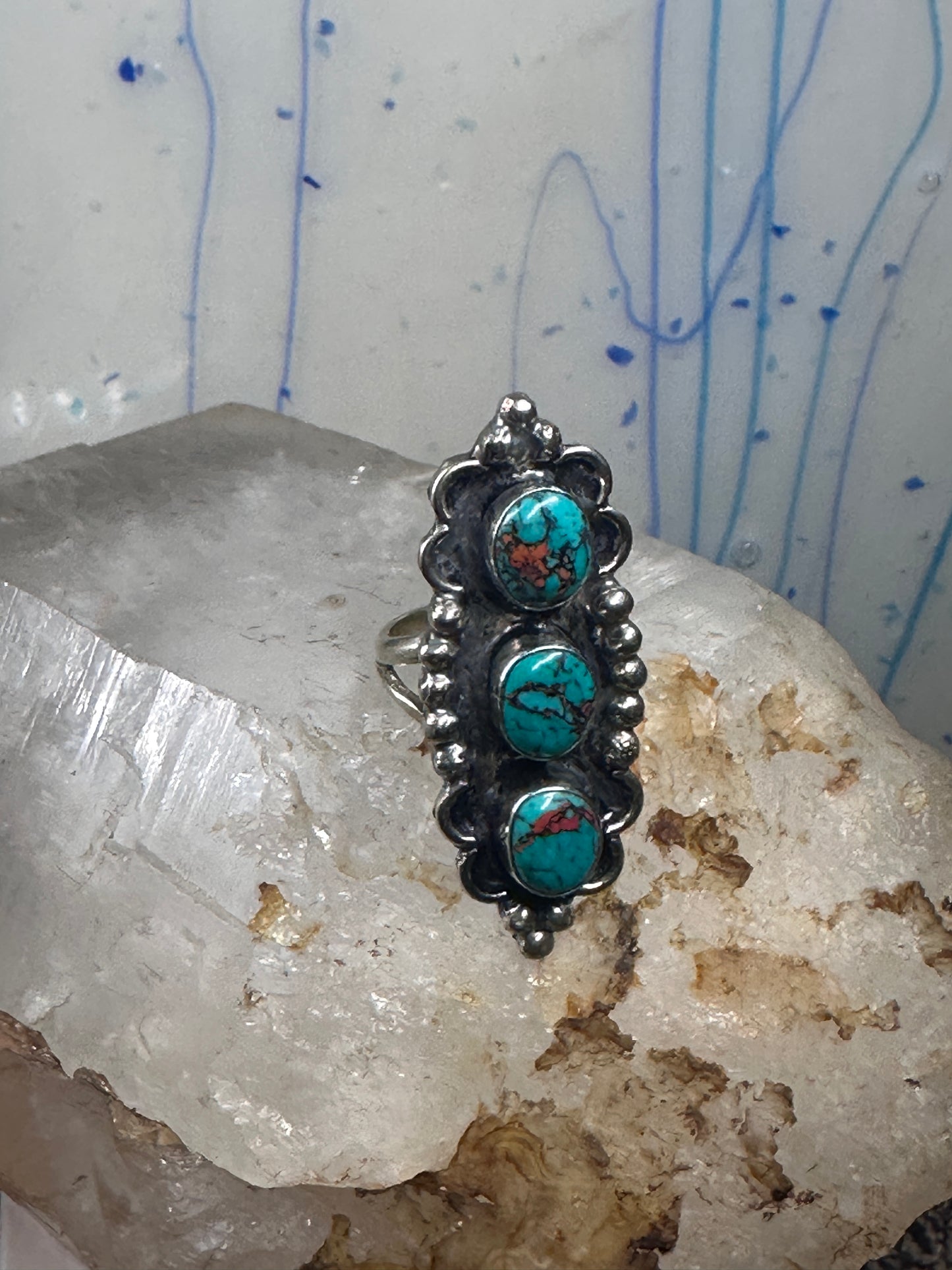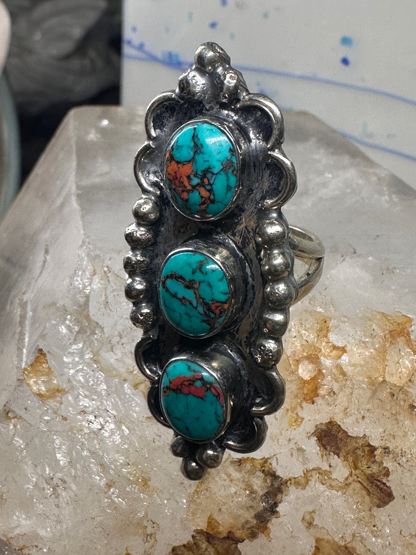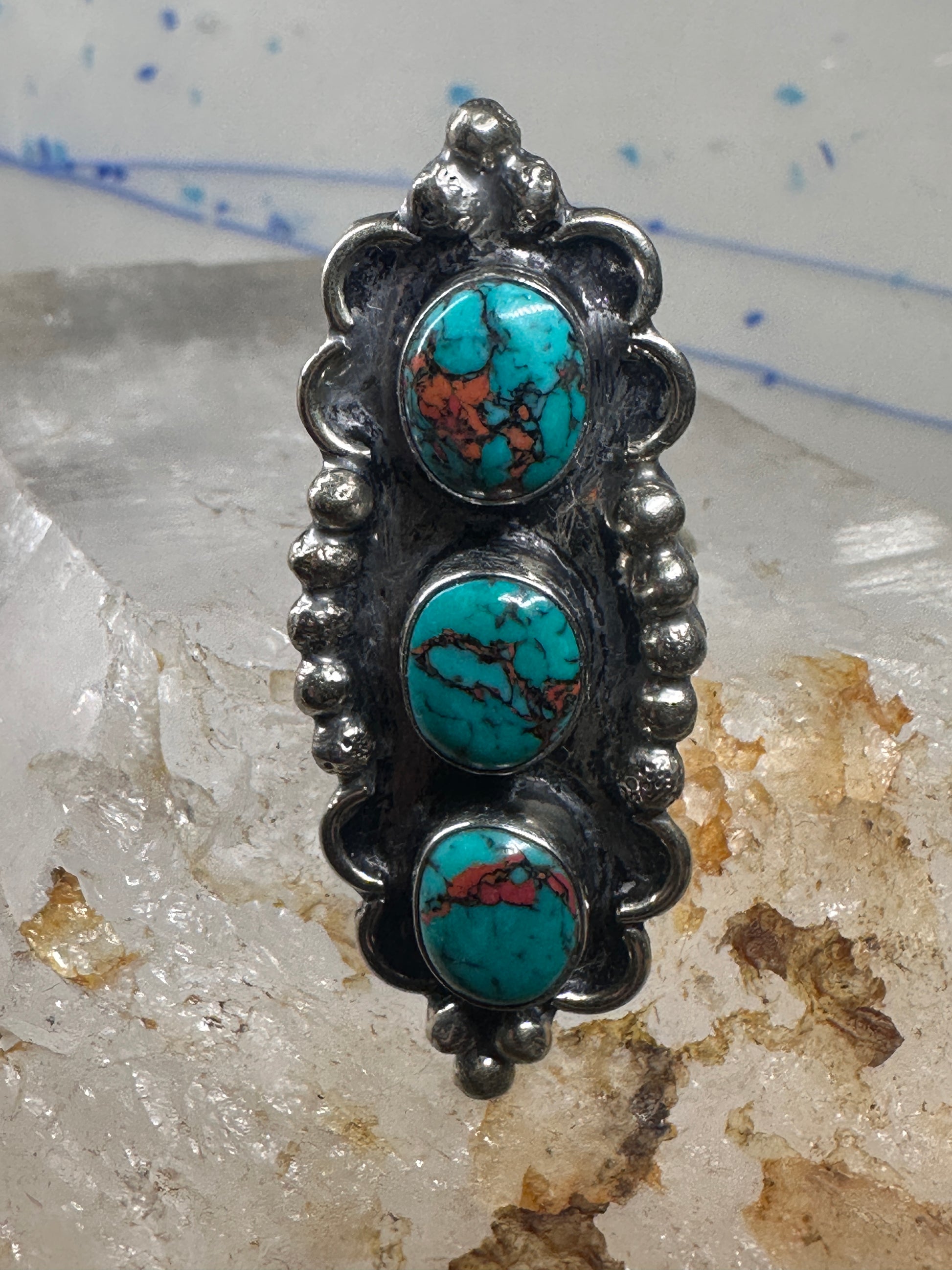 Navajo ring long turquoise Sterling silver size 7.25 sterling silver women