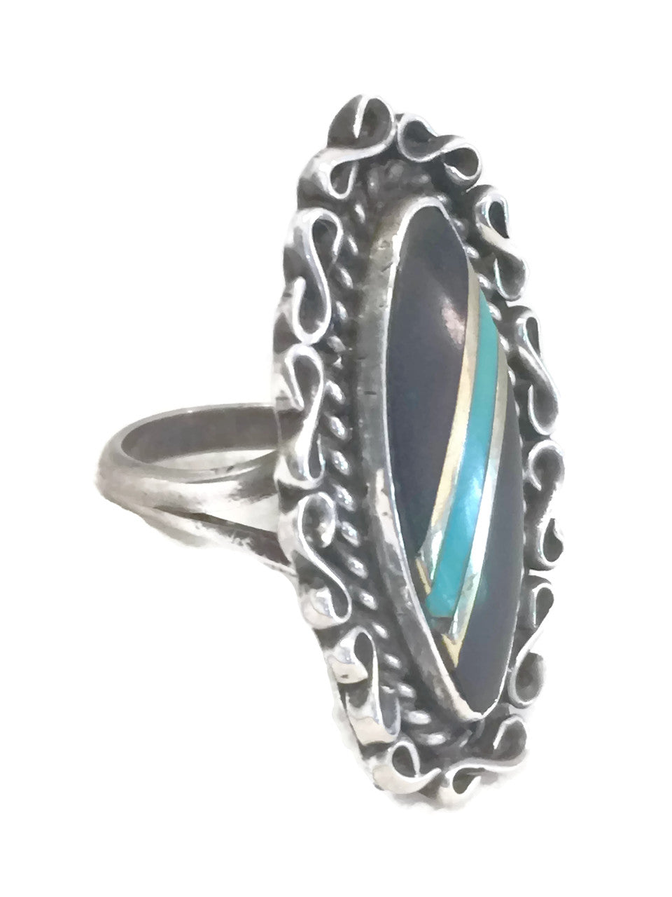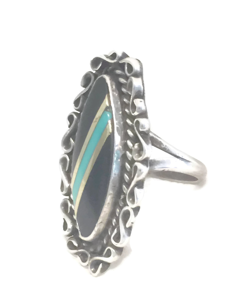 Vintage Sterling Silver Onyx & Turquoise Ring