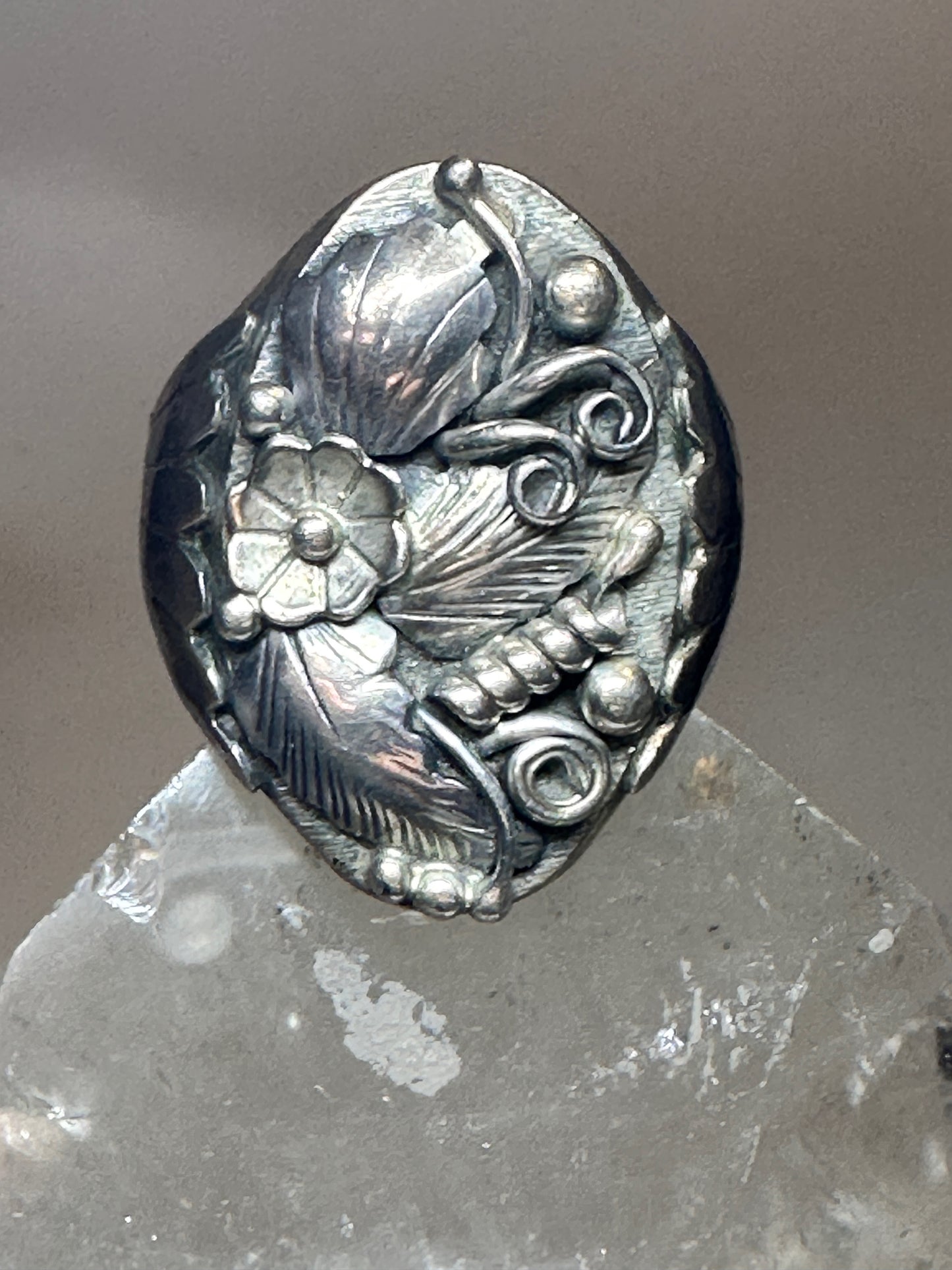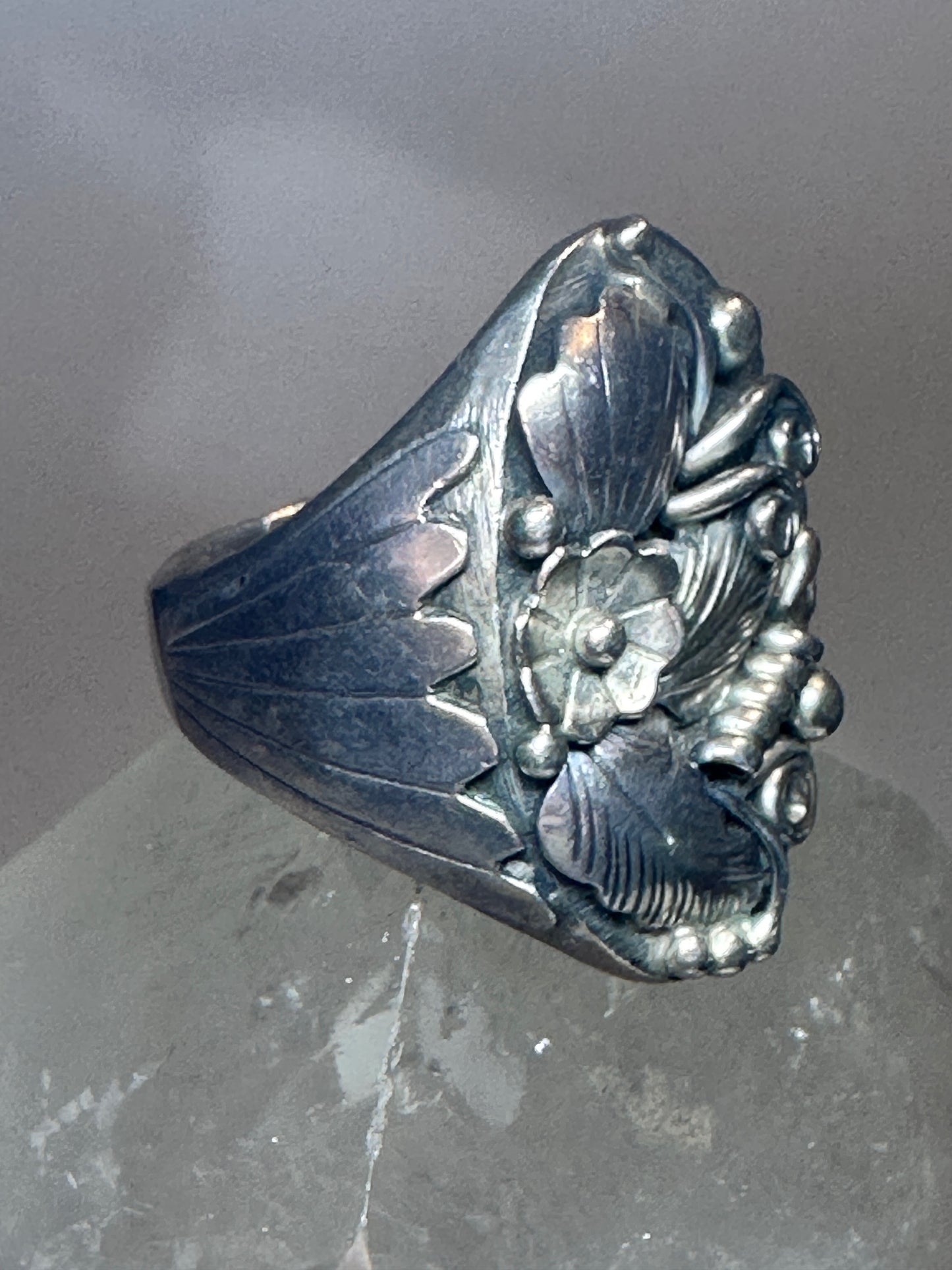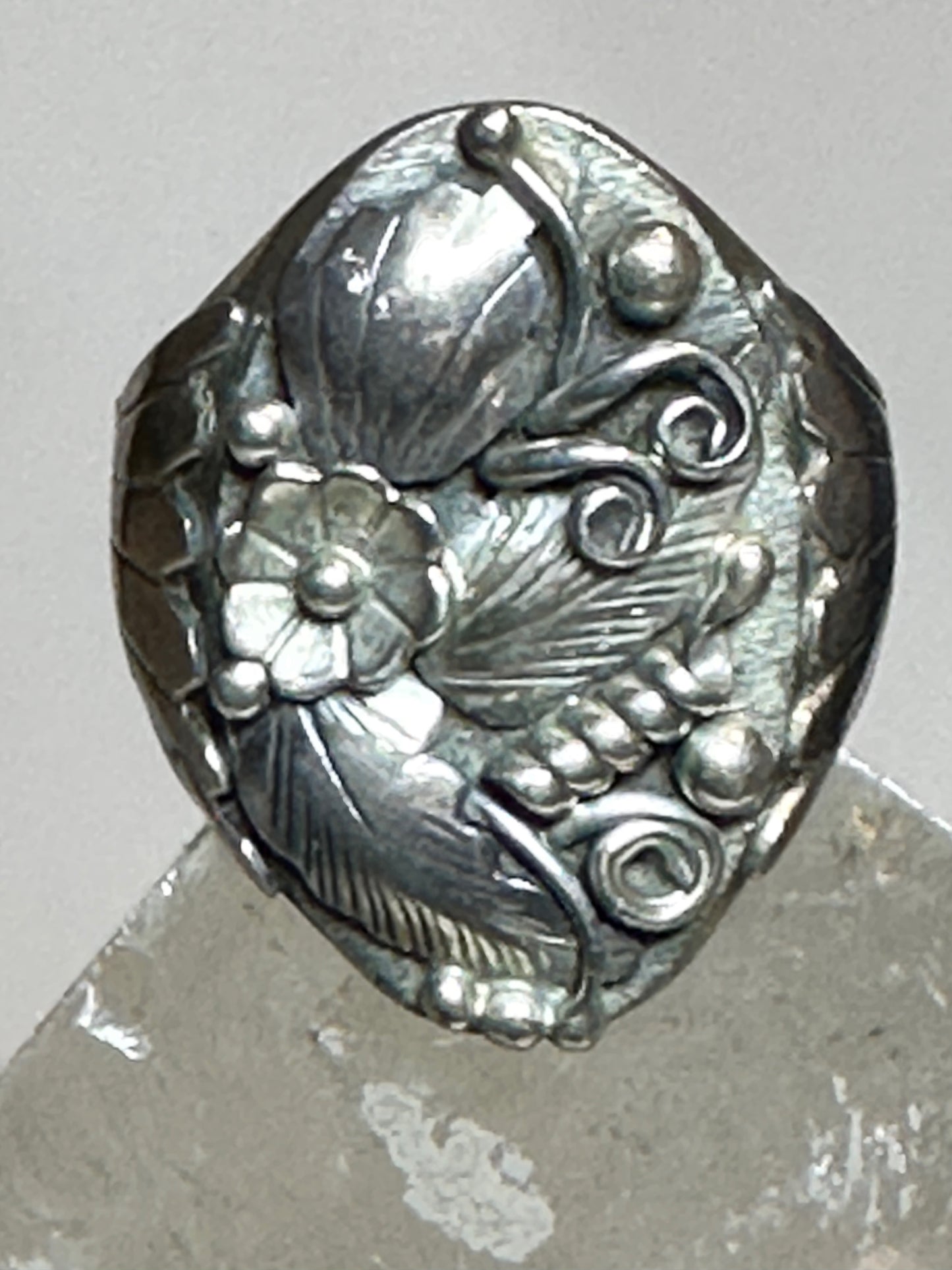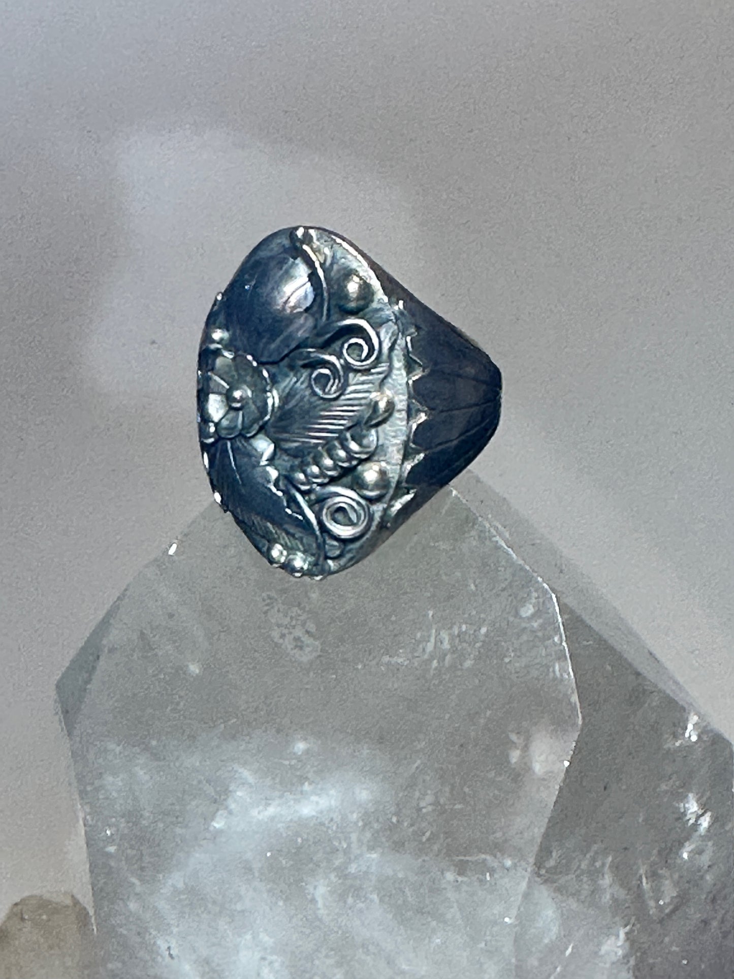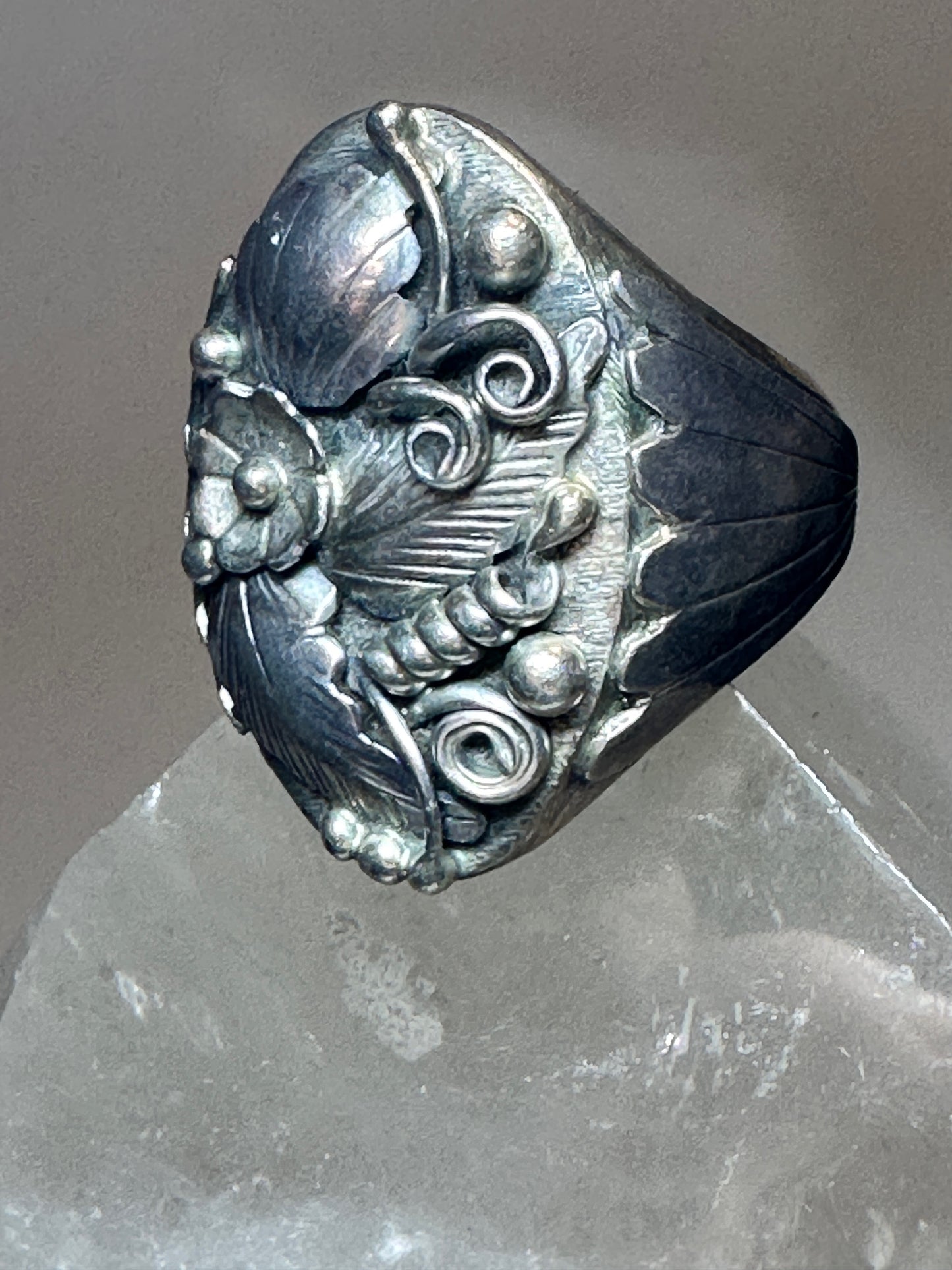 Navajo ring size 12 squash blossom leaves band sterling silver men women