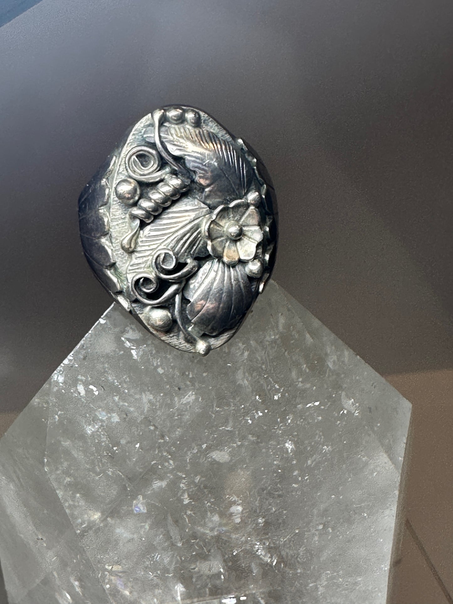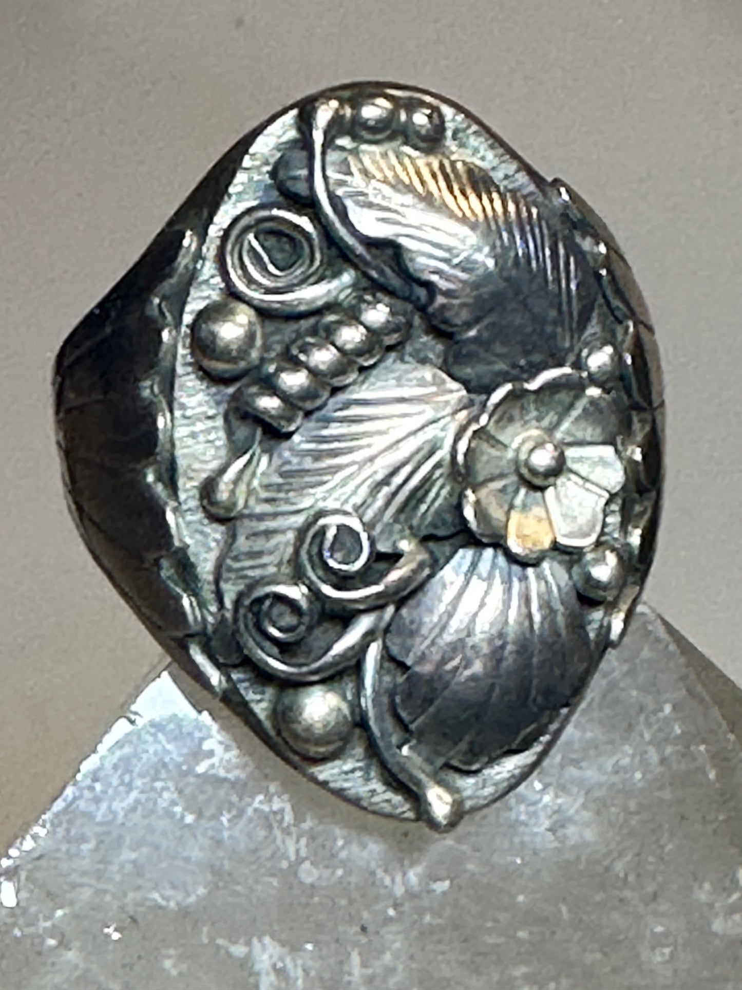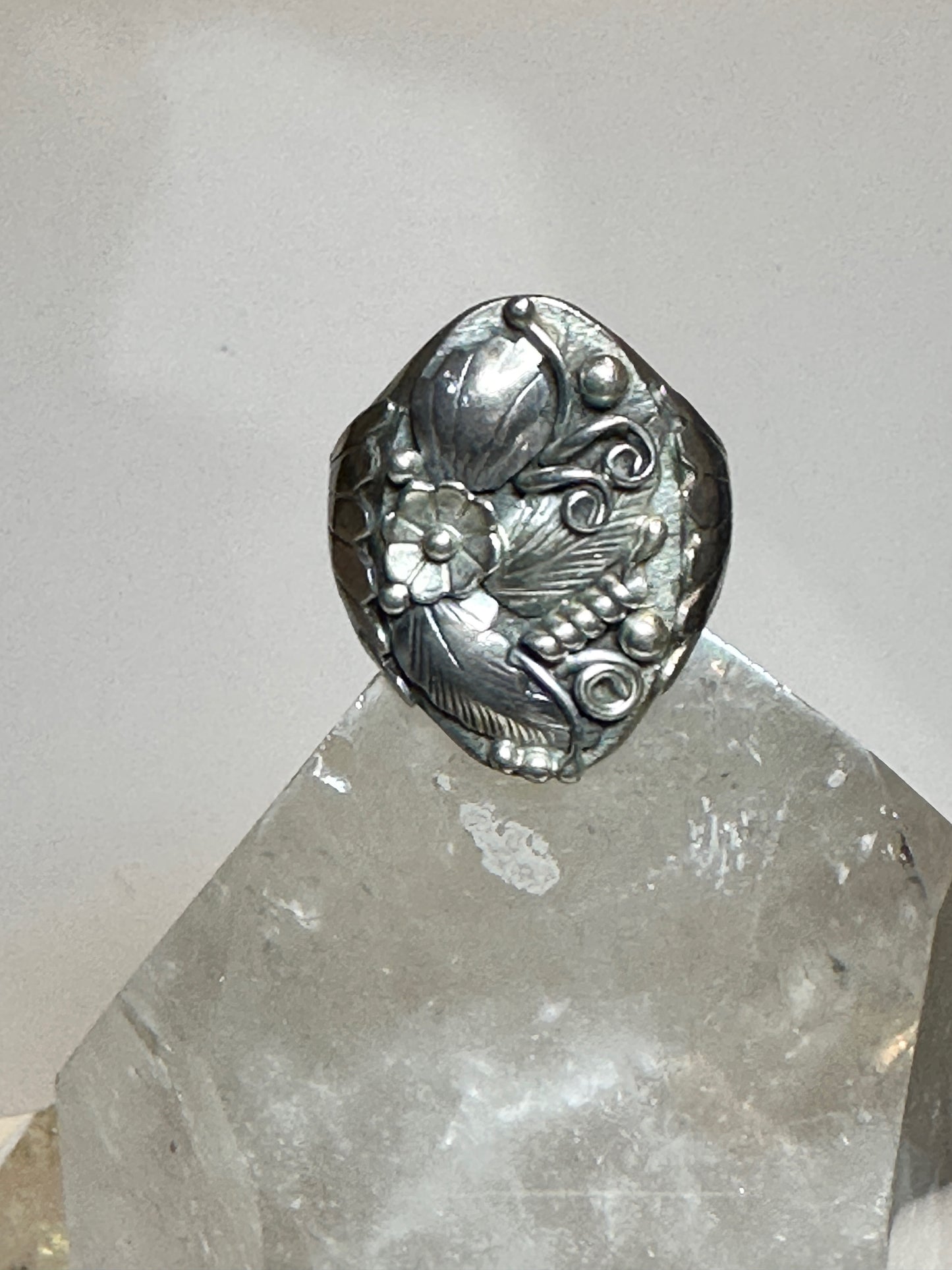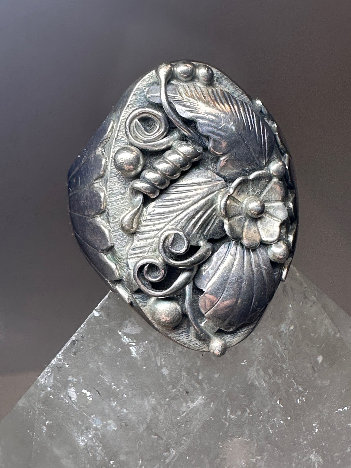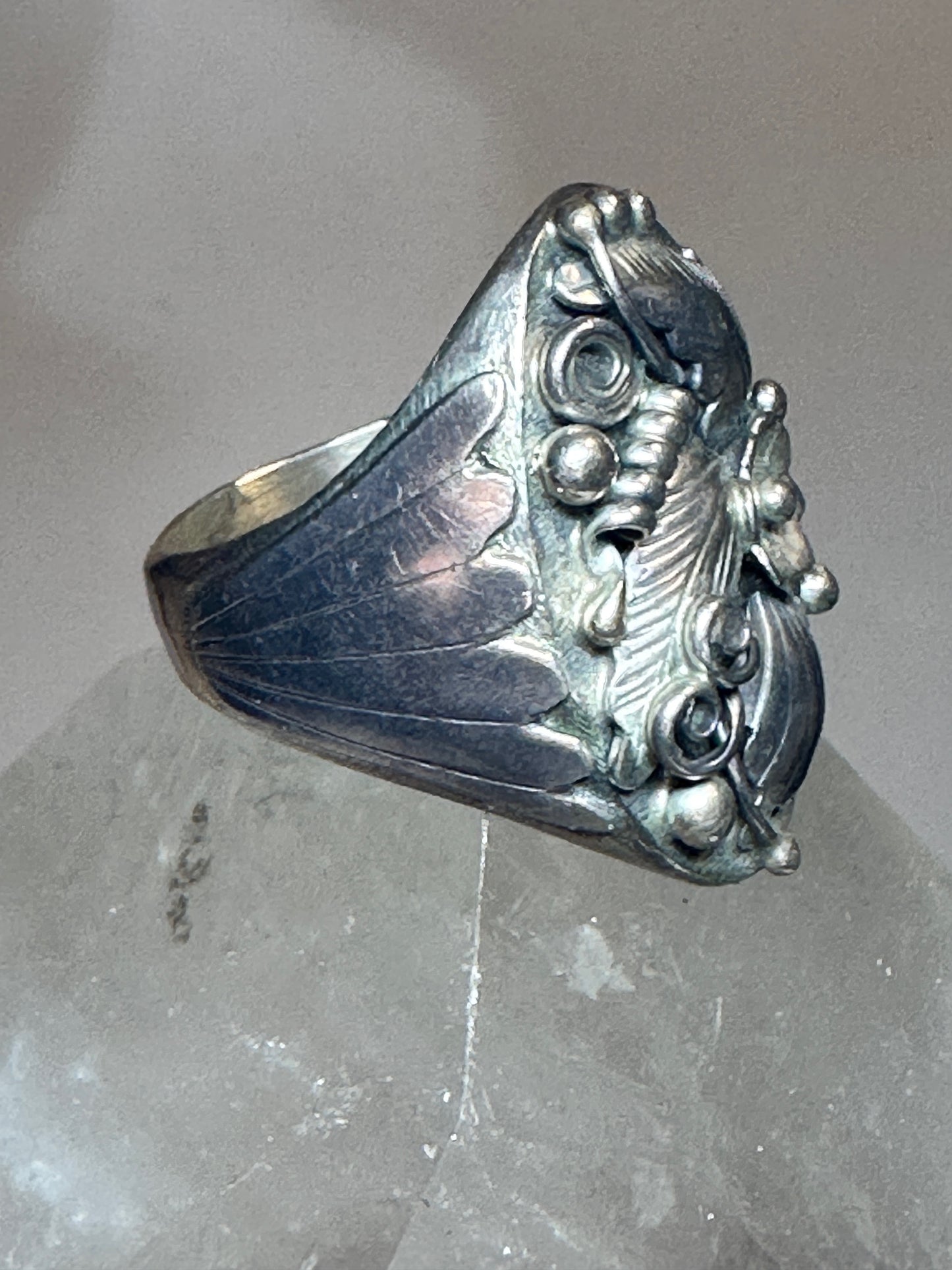 Navajo ring size 12 squash blossom leaves band sterling silver men women