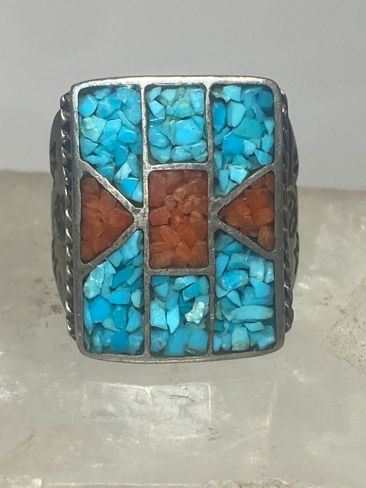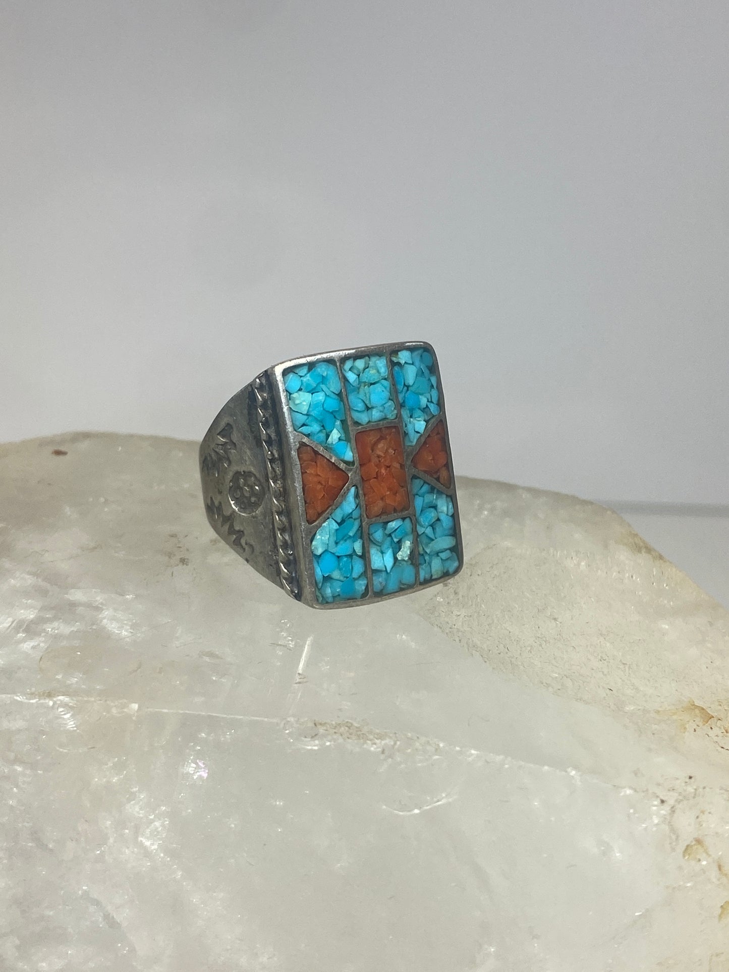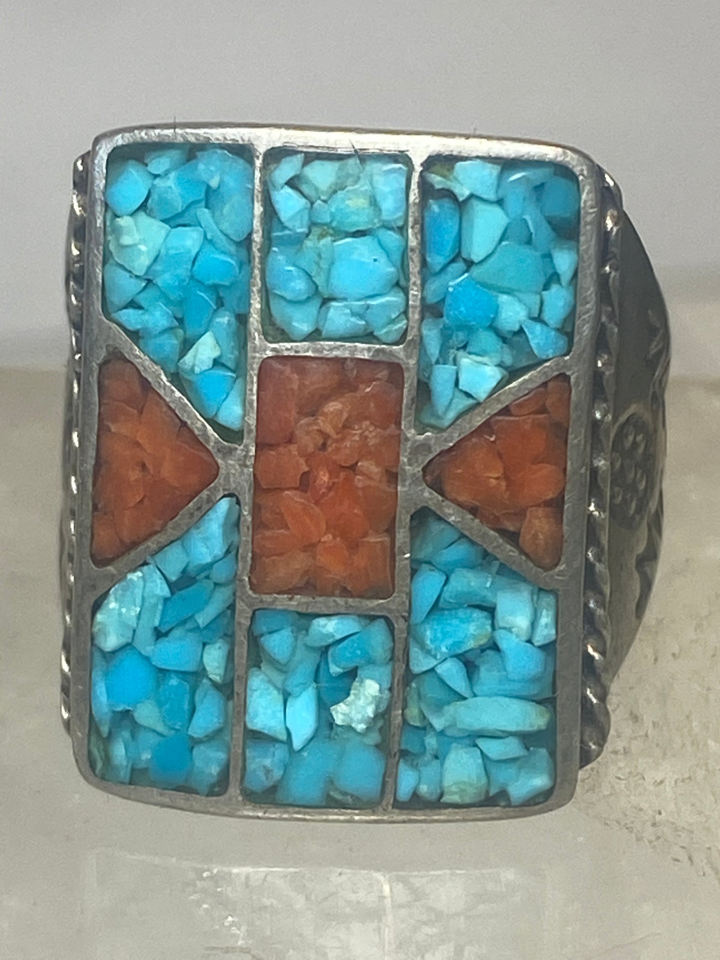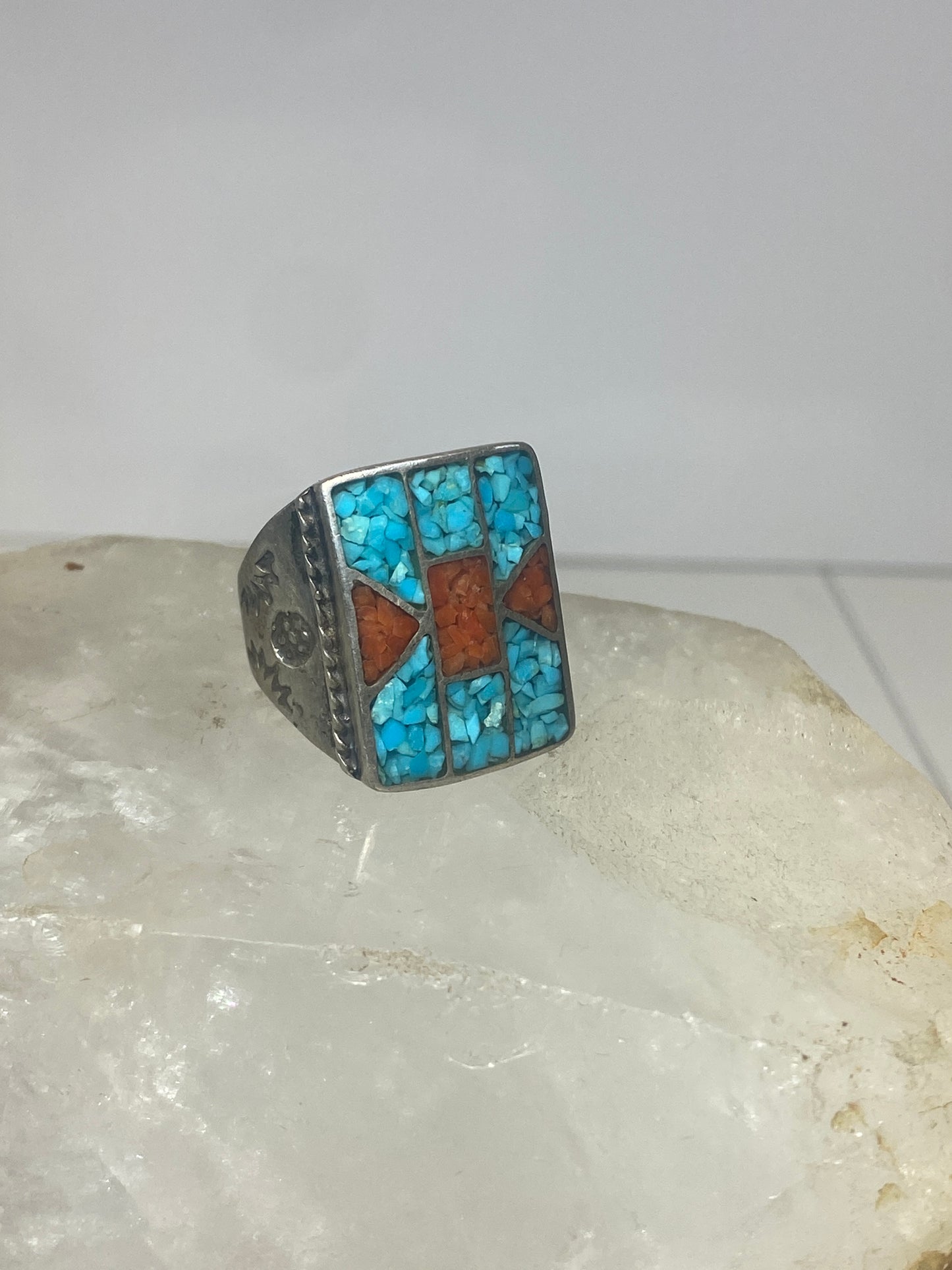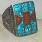 Navajo ring size 11 turquoise coral chips southwest sterling silver women men