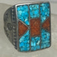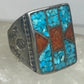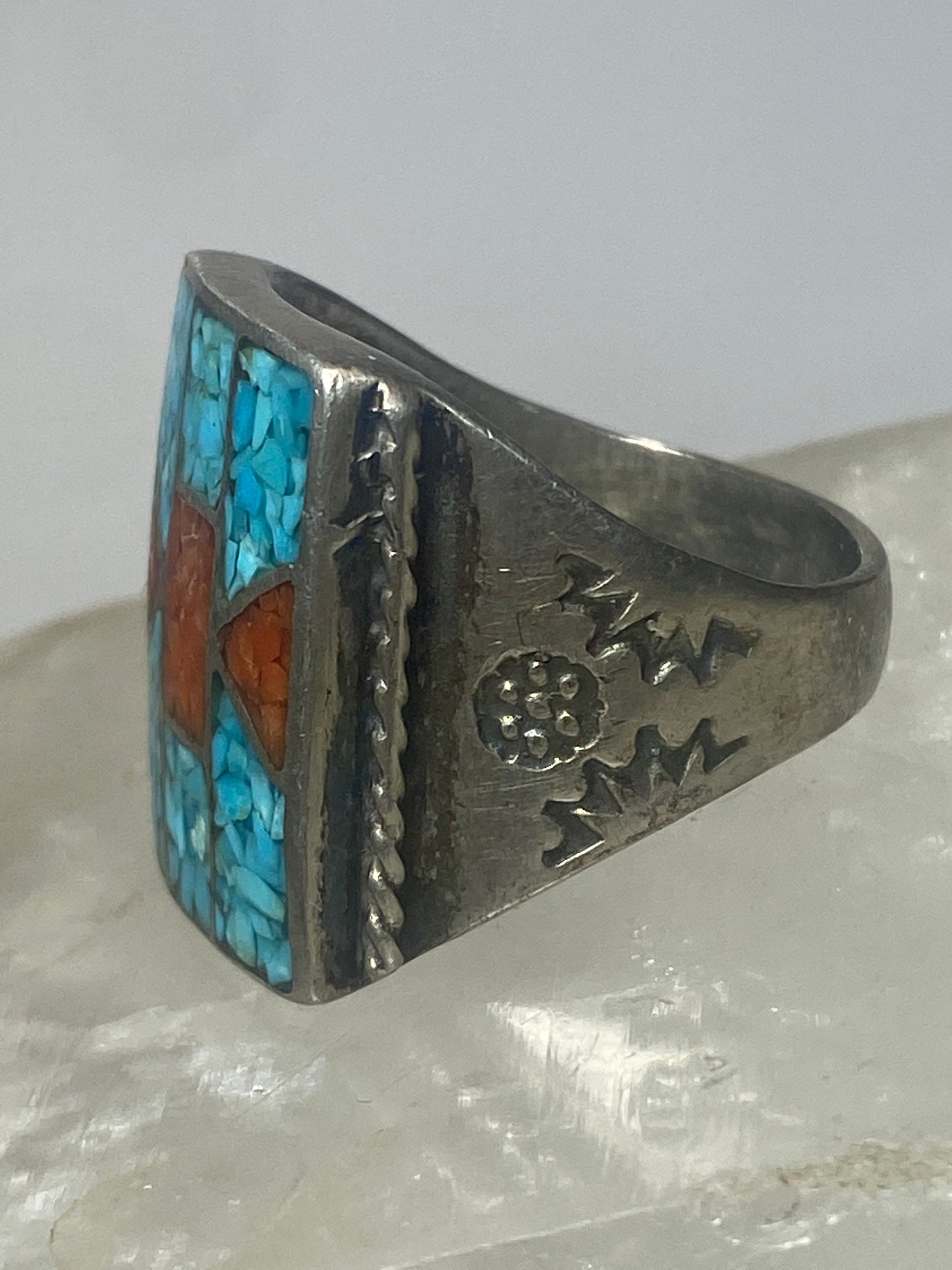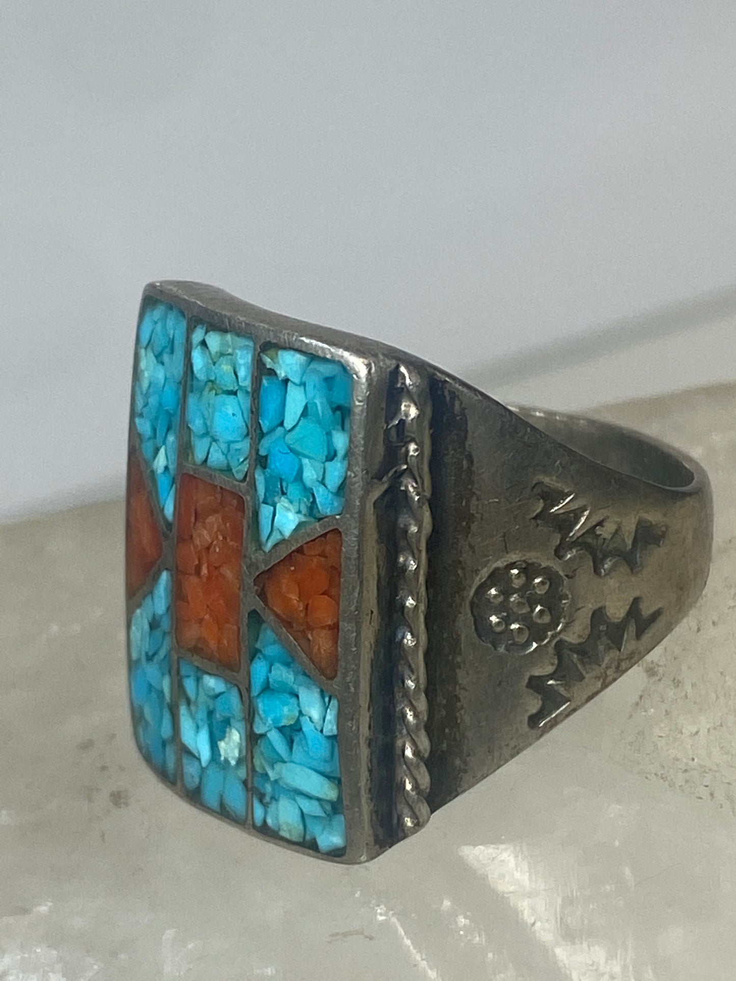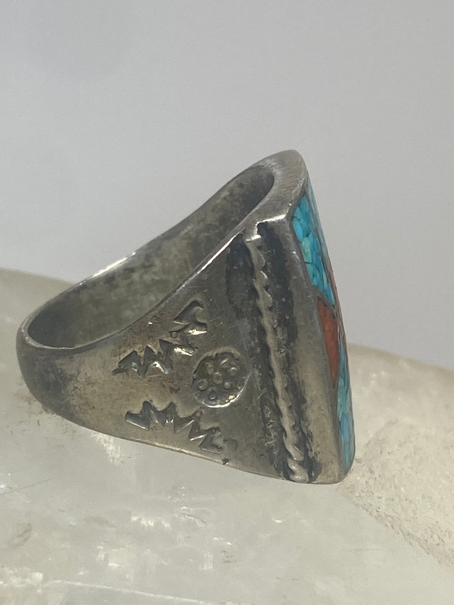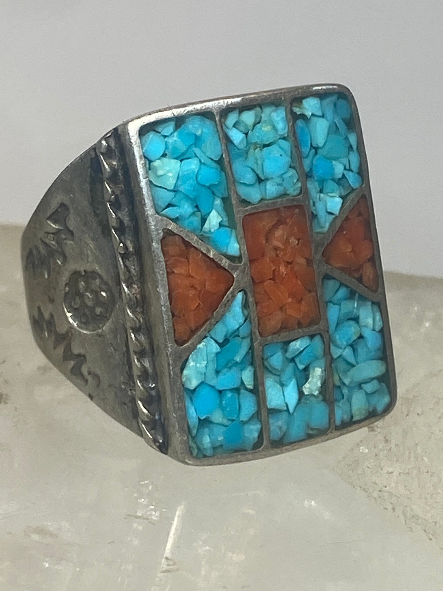 Navajo ring size 11 turquoise coral chips southwest sterling silver women men